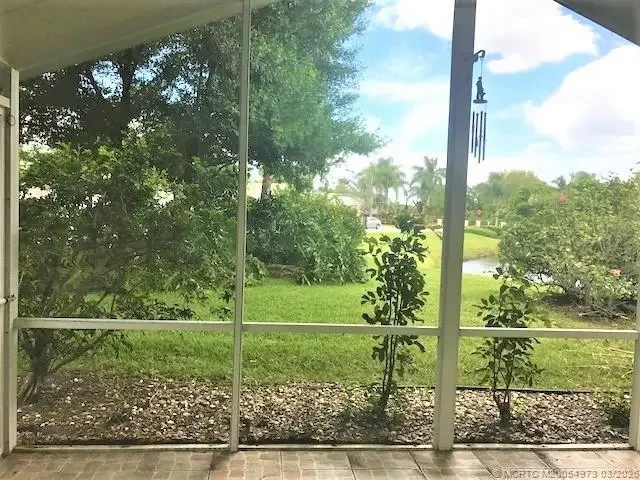 Located inside the highly desirable community of Palm Pointe off of High Meadows. Home is a corner lot, with a view of the man-made lake in the back. Laminate wood floors throughout with tile in kitchen and bath. Kitchen has granite counters with stainless steel appliances. Washer and dryer included. New a/c installed in 07-2024 and new metal roof 10-2026. Convenient to both I-95 and Florida's turnpike. Beach is only 20 minutes away. A great place to call home!