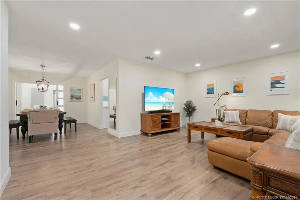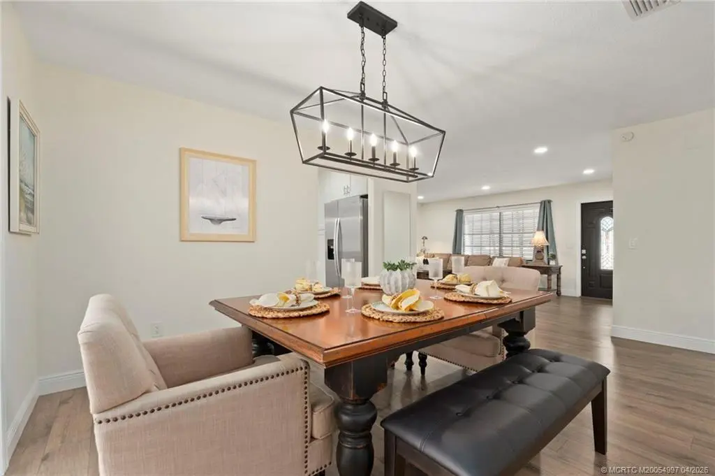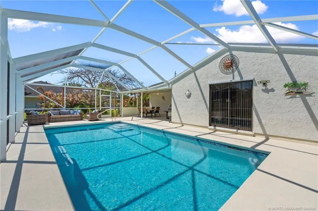 Discover this beautifully updated pool home in the desirable Sandpiper Bay area, offering 3 bedrooms plus a versatile flex space. Situated on a generously sized fully fenced lot just under ½ acre, this property blends modern upgrades w/ an inviting outdoor oasis. Step inside to find updated flooring, a refreshed kitchen featuring shaker-style cabinetry, quartz countertops, & thoughtfully updated bathrooms. The heated saltwater pool, newly added in 2022, creates a private retreat right in your backyard, ideal for year-round enjoyment. Major updates include a roof replacement in 2020, giving added peace of mind, along with Bahama & metal hurricane shutters. Security system & smart ligting controlled from an app. Located close to beautiful beaches, the mall, & the turnpike, this home offers convenience & lifestyle in one. Offered furnished or unfurnished, making it move-in ready for your needs. Don’t miss this exceptional opportunity in one of the area’s most sought-after communities!