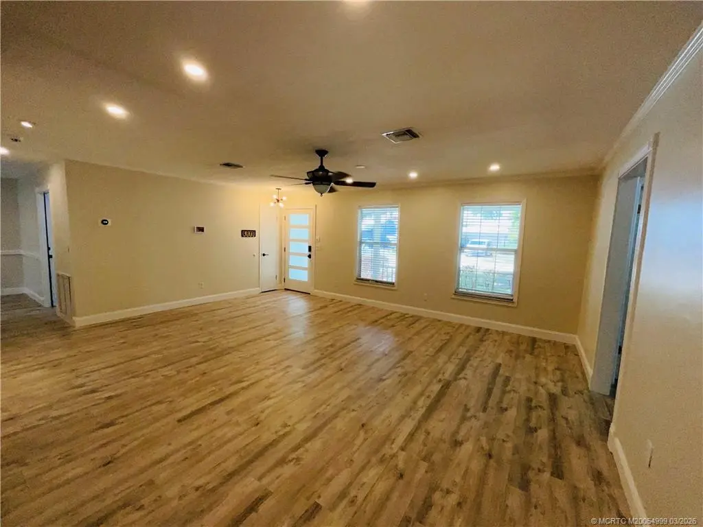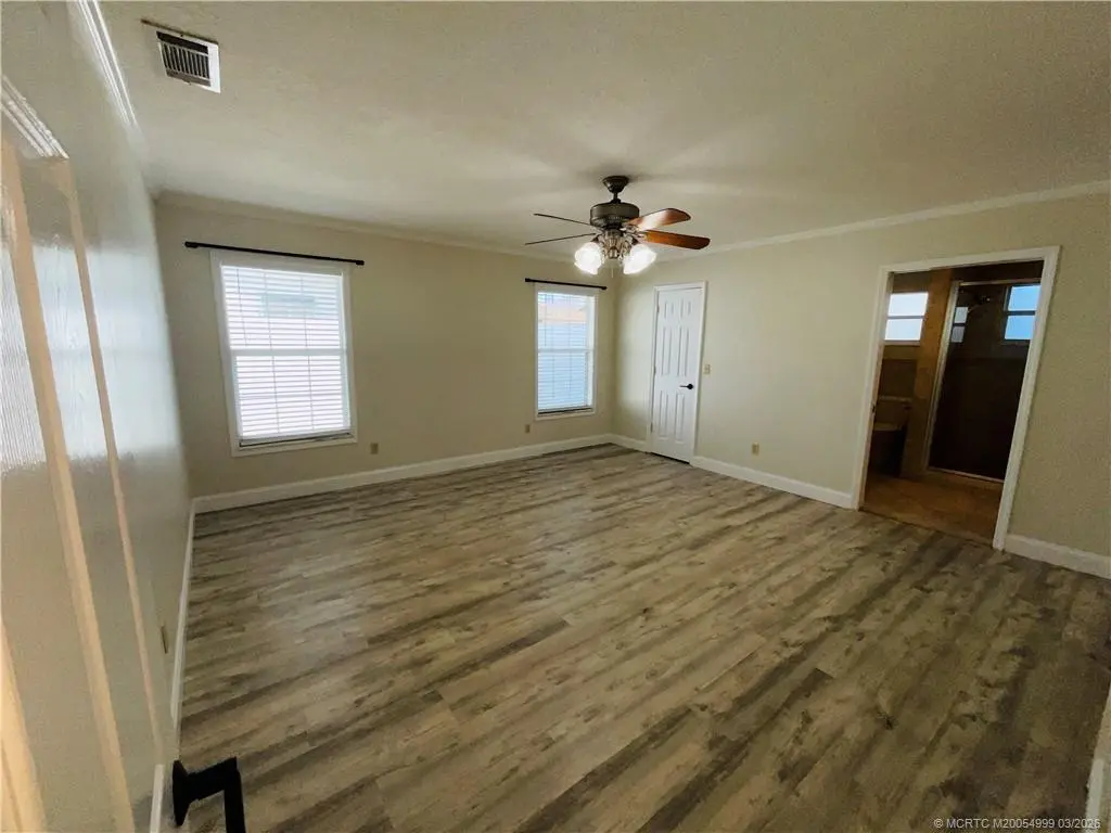 3/2/2 Home in Jensen Park Estates with a bonus room off of the kitchen that can be used as an office, or playroom! Vinyl plank flooring throughout. Remodeled kitchen w/ white quartz countertops, soft close cabinets & drawers, plenty of storage, farm style sink in front of a window looking out into the backyard. Large bedrooms w/ closet built-ins in each room. Both bathrooms are tiled w/ walk in showers. The property is enclosed with a PVC privacy fenced and features a large screened in patio, that is partially covered. (19'x32') There is also an exterior pergola with additional space for entertaining, with the back side being perfect for gardening. The backyard also features a firepit with seating, as well as a large shed. Separate laundry room off of the kitchen include a full-size washer & dryer, and a utility sink. The garage has an automatic door opener, room for one car and a golf cart. Plenty of room for storage with cabinets on all three walls to keep you organized.
