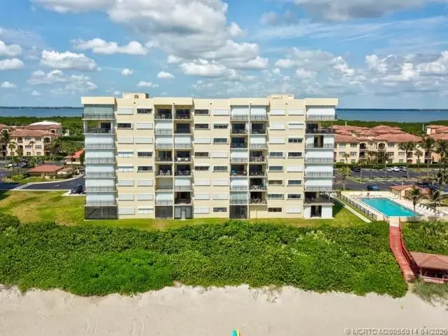 BEACHFRONT! Walk out to the beach and pool or walk your large dog without needing the elevator! Beautifully updated and furnished 2BR, 2 bath in desirable Sand Dollar Shores. Great rental income with only 1 month min requirement. Use as a getaway, income producer or both! Great price for Beach Front living!