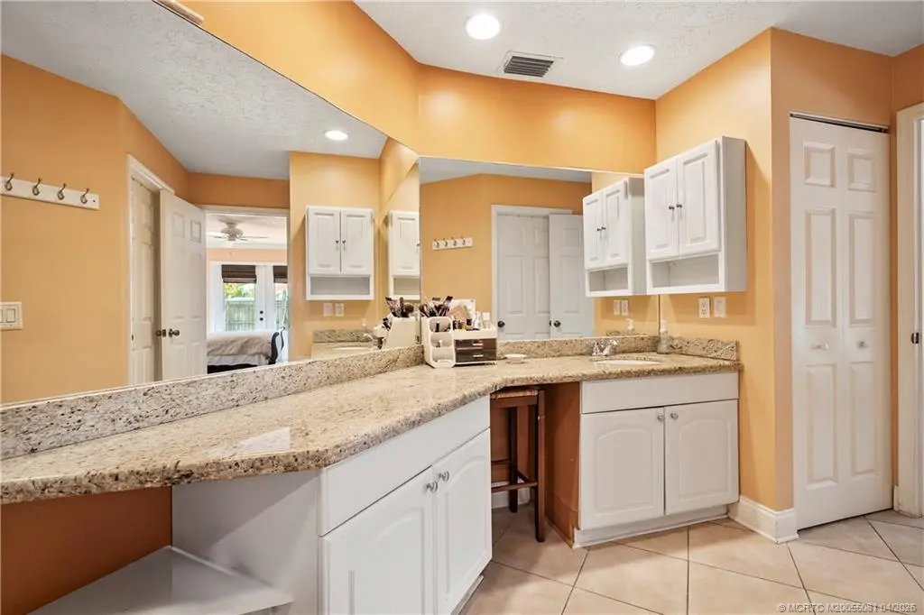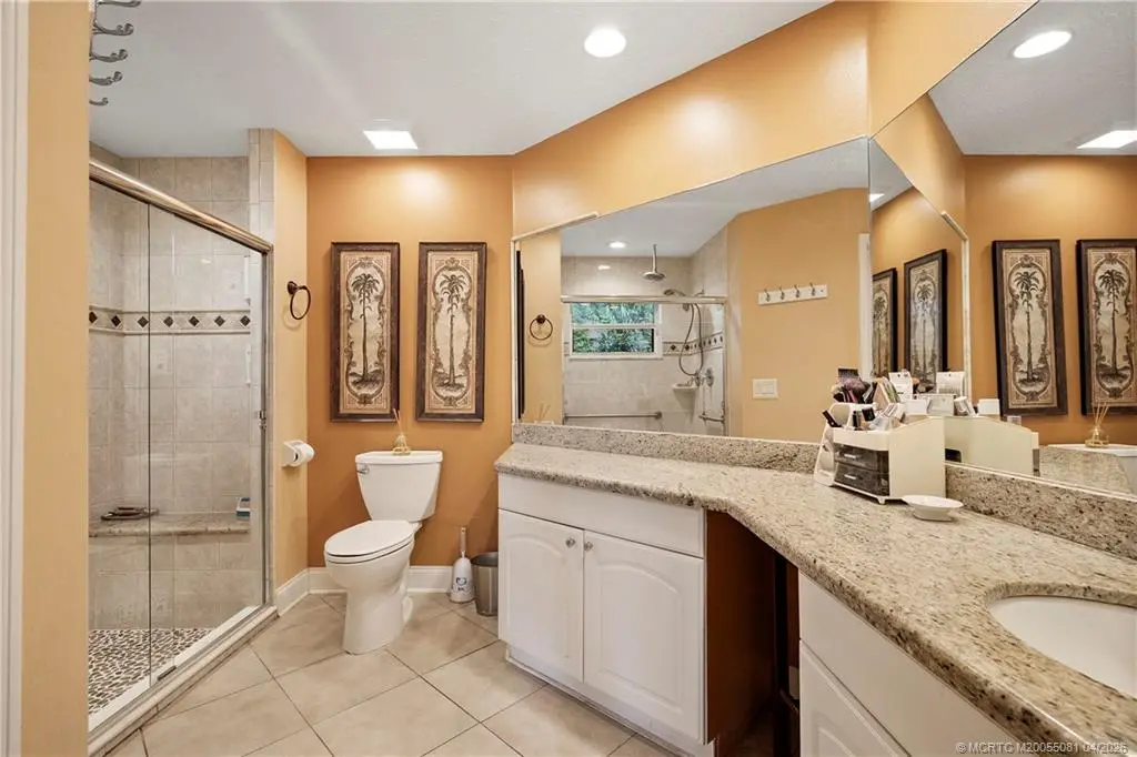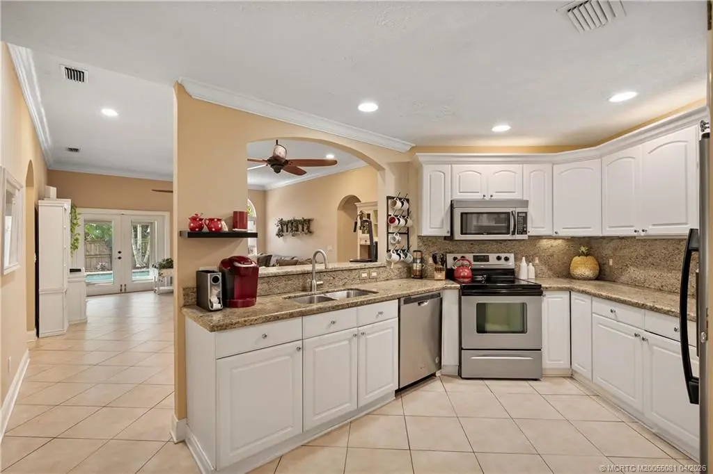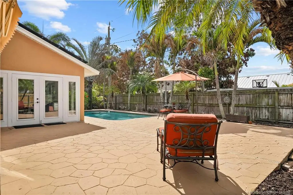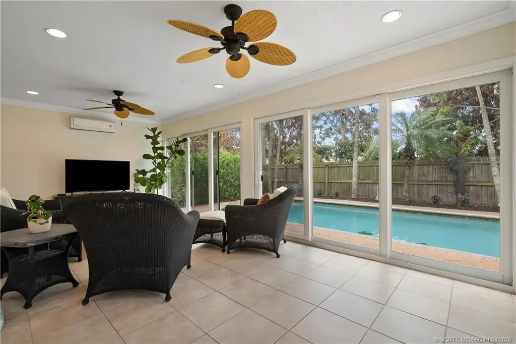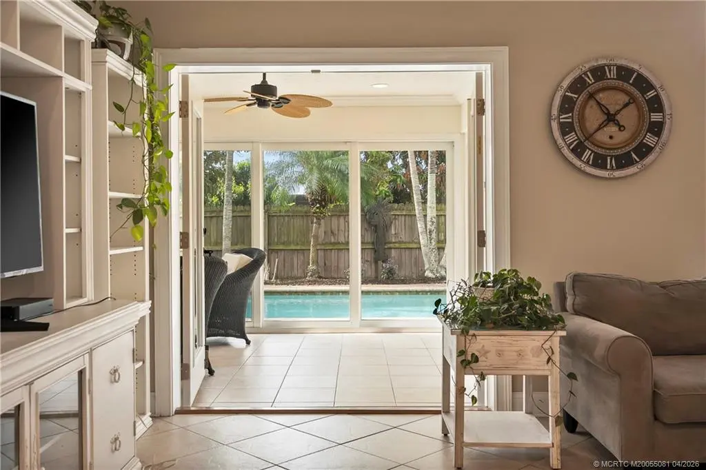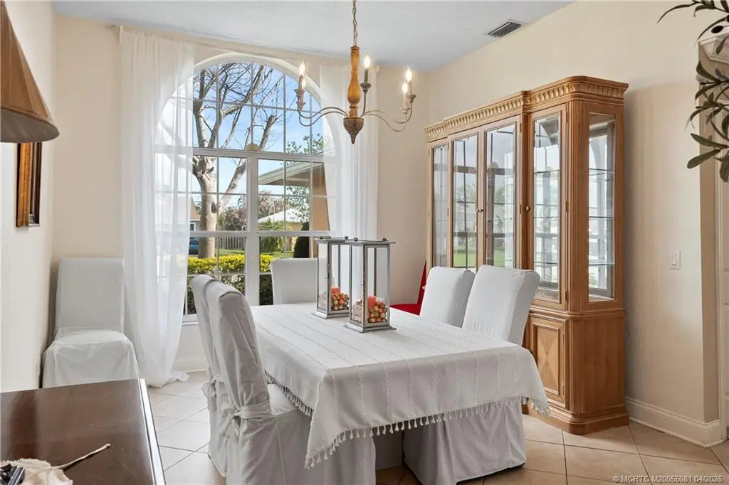 Beautiful, SOLID CBS 3BR/2BA pool home in a highly desirable area near Gatlin/Savona, just minutes from all that Tradition has to offer! This well-maintained home features a screened front porch and glass entry door. The upgraded kitchen is the heart of the home, complete with granite countertops, stainless steel appliances, & an open flow to formal living and dining areas, plus an oversized family room perfect for entertaining. Tile flooring runs throughout, complemented by vaulted ceilings that enhance the home’s spacious feel. Enjoy year-round relaxation in the glass-enclosed, air-conditioned sunroom overlooking a tropically landscaped pool & expansive patio deck. Additional highlights include a heated chlorine pool, patio awning for shade, impact sliders, solar panels with an average electric bill of $45/month, sprinkler system, 5-ton A/C, epoxy garage floors, and a beautifully updated master shower with double rain heads, pebble tile, & a glass enclosure. A true tropical retreat!