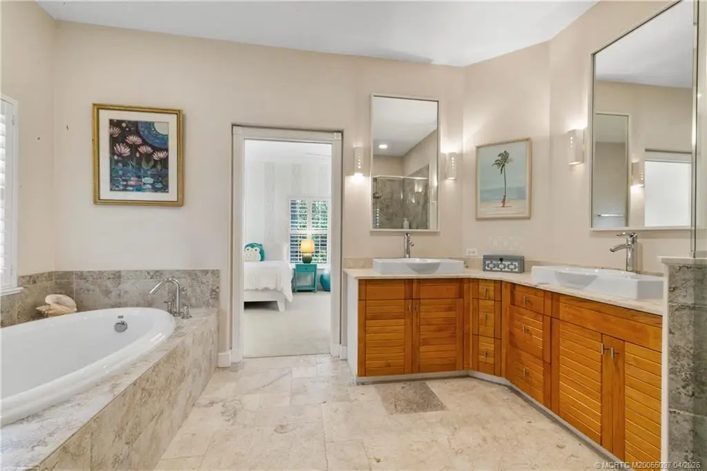 This is the one that makes every comparison fade. Completely reimagined with stunning, high-end finishes, this exceptional Orchid Bay residence offers refined design and effortless luxury. The main home, a study in perfection on its own, is complimented by a spacious guest house featuring its own entrance and a full kitchen, ideal for extended stays, multigenerational living, or guests seeking comfort and privacy. No detail forgotten, no expense spared. New standing seam metal roof (2025). All AC's, water heaters, pool pump/heater less than 5 years old. Located in the desirable Orchid Bay enclave of Palm City, this property delivers sophistication, flexibility, and turnkey ease in one remarkable offering. Third-party estimates on syndicated real estate sites are not based on the property's actual characteristics. Buyers should obtain a personalized insurance quote from a licensed Florida insurance broker. See MLS attachments.