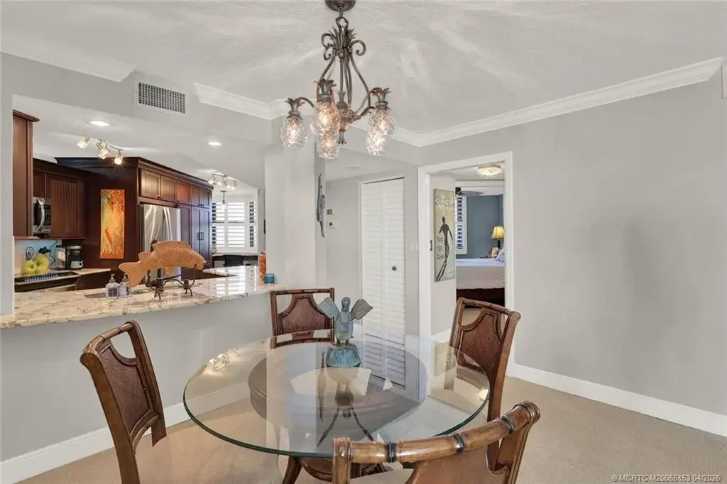 ISLANDIA I ON HUTCHINSON ISLAND – 6th floor with Ocean and Intracoastal/Indian River Lagoon views. Features include: impact sliders/windows, replaced AC system (2024), tankless water heater, textured ceiling, crown moldings, beadboard cabinets, plantation shutters, custom shelving in closets, breakfast nook/office area, guest bedroom has been converted to guest suite and complete accordion shutters. Community amenities include: guard at gate, social room with kitchen, billiards, fitness room, sauna, pool, pickleball/tennis, golf practice area, bike storage, BBQ grills, dune walk with secure beach access, car wash and boat trailer/RV parking. Roof replaced in 2020, concrete restoration completed and MIRS and SIRS have both been completed. All sizes, taxes, descriptions and HOA are approximate; there may be inaccuracies, independent verification is suggested.