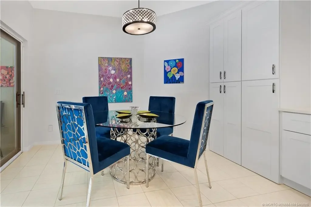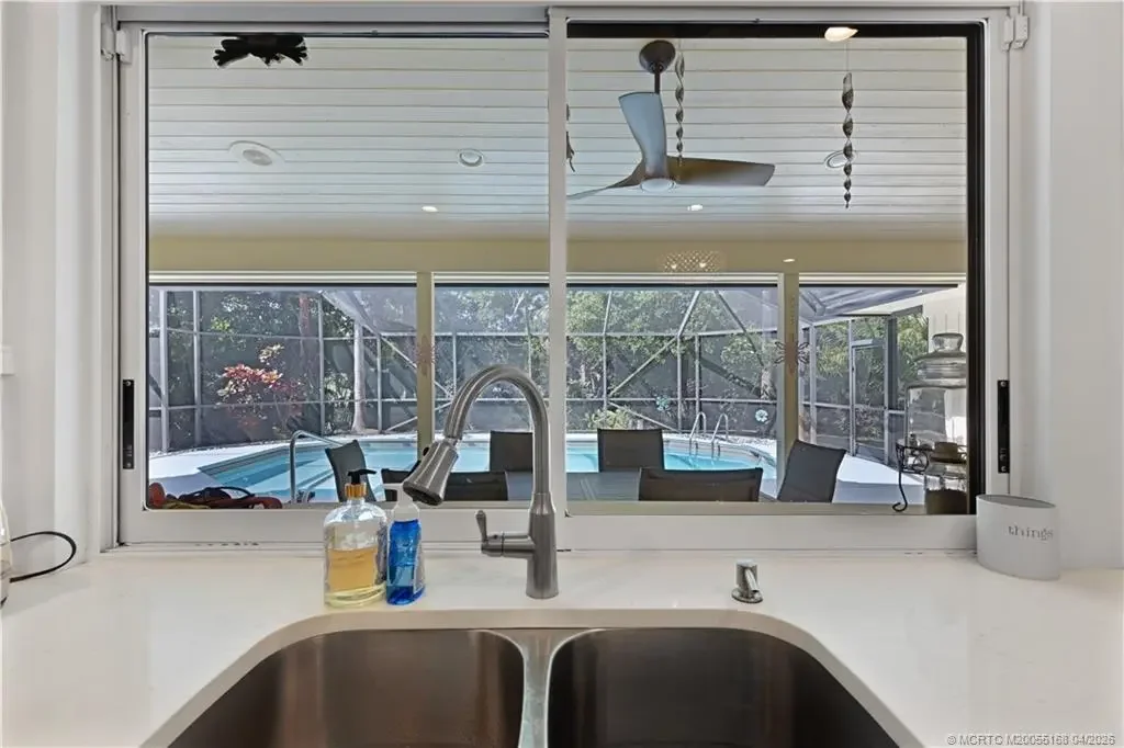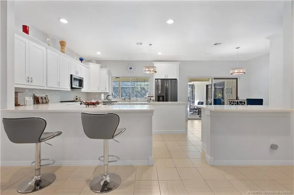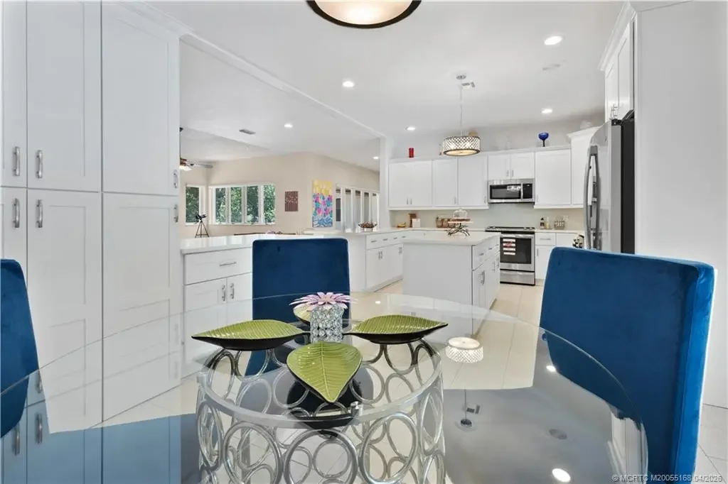 Welcome to 6221 SW Thistle Terr, a stunning custom home on a quiet cul-de-sac in the prestigious Pipers Landing Yacht & Country Club. Just steps from the golf course & clubhouse, this home offers a perfect blend of luxury & comfort. The impressive living room features soaring cathedral ceilings & a cozy fireplace, while the fully renovated kitchen boasts quartz countertops, stainless steel appliances, a wet bar, & a wine cooler. The split floor plan includes a spacious master suite, two guest bedrooms with en-suite baths, & a versatile fourth bedroom ideal for an office. The dining room can also serve as a den or media room. Step outside to a large screened lanai with a heated pool and cabana bath, all on a private 0.8-acre lot with green views. Additional highlights include elegant window treatments, an oversized laundry room with a work sink, a two-car garage, and a dedicated golf cart garage. Experience luxury living in a serene setting—this home is the ultimate Florida retreat!