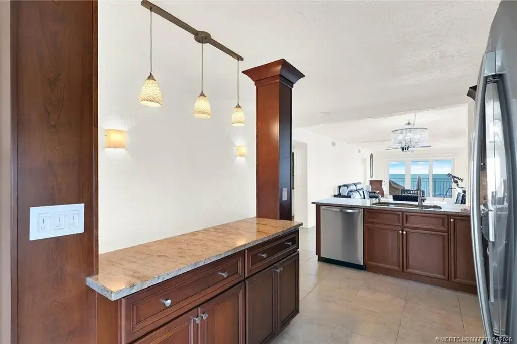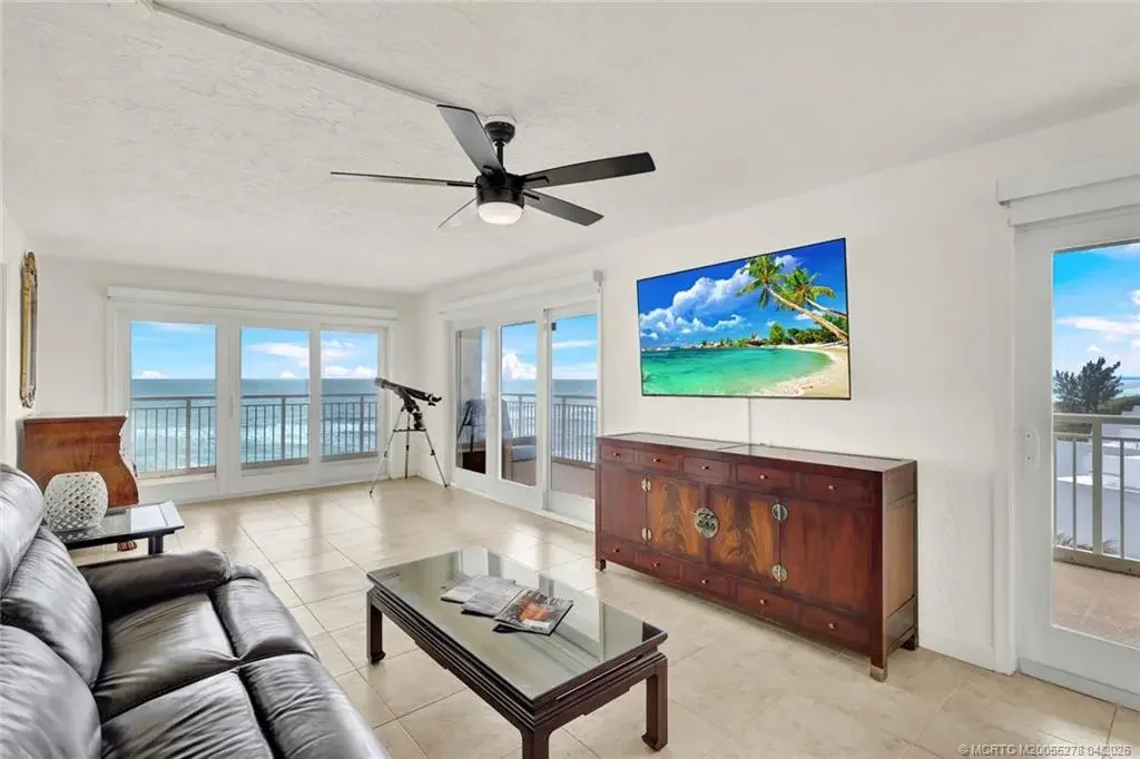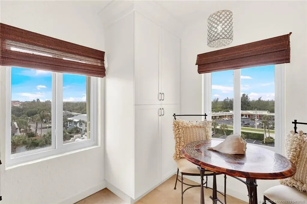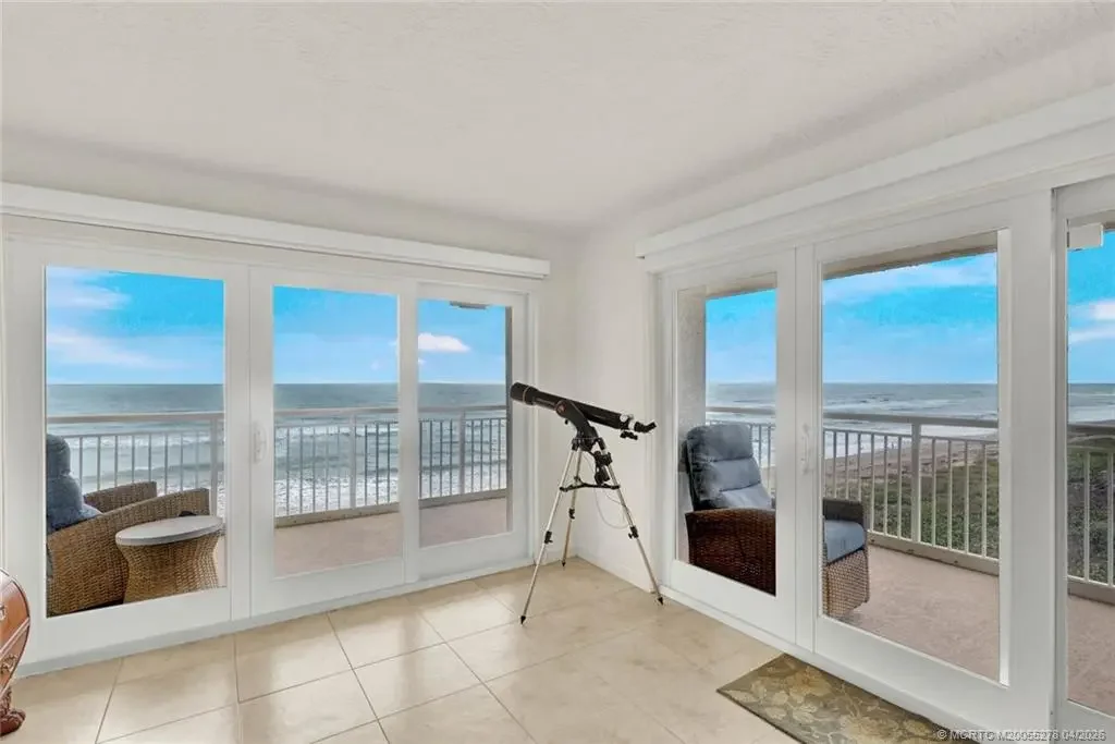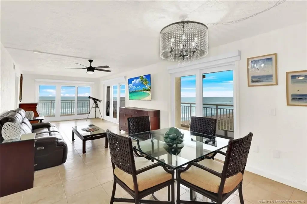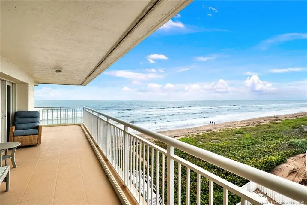ENJOY THE MILLION DOLLAR VIEWS OF THE ATLANTIC OCEAN AND INDIAN RIVER LAGOON FROM THIS SOUTHERN CORNER APT W/ OVER 400 SQ. FT. OF WRAP AROUND BALCONY. THERE IS A LOT OF ATTENTION TO DETAIL THROUGH OUT. THE KICHEN IS OPEN W/ SPACIOUS COUNTER TOPS, ETRA CABINETS & STUNNING STAINLESS STEEL APPLIANCES. CUSTOM LIGHTING FIXTURES. GUEST BEDROOM FEATURES WALL OF BUILT -IN DRAWERS AND CLOSET MODERN GUEST BATH. LARGE WALK IN LAUNDRY W/ NEW WASHER AND DRYER. THE MAIN SUITE HAS TWO CLOSETS, UPDATED & MODERN BATHROOM W/ LARGE WALK IN SHOWER, PUS A WALL OF WINDOWS TO SEE THE OCEAN. THIS IS A COZY COMPLEX JUST ONE BUILDING WITHIN WALKING DISTANCE TO SOME OF THE FAMOUS RESTAURANT ON THE ISLAND. SOLD FURNISHED, PET FRIENDLY. VACANT AND EASY TO SHOW.