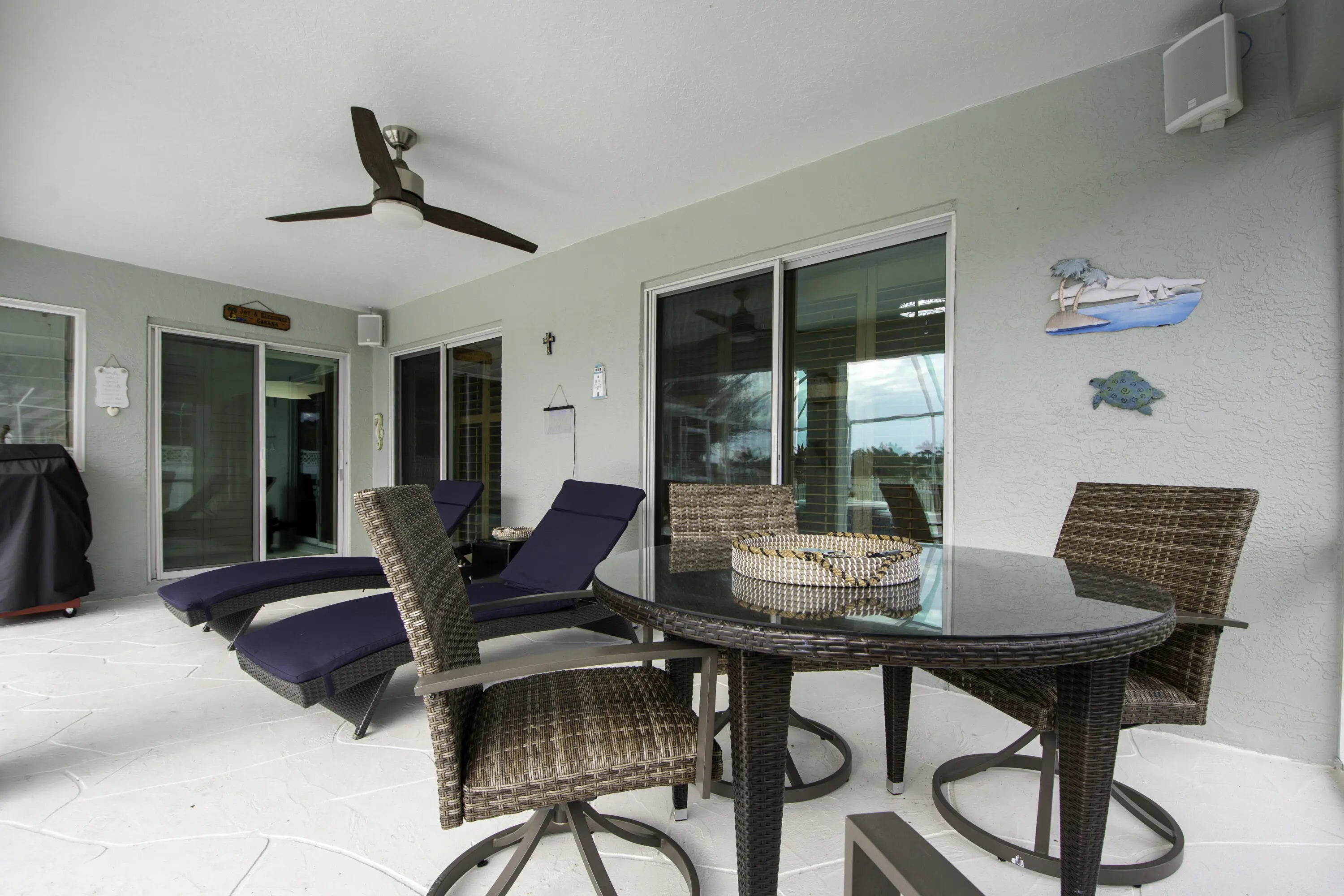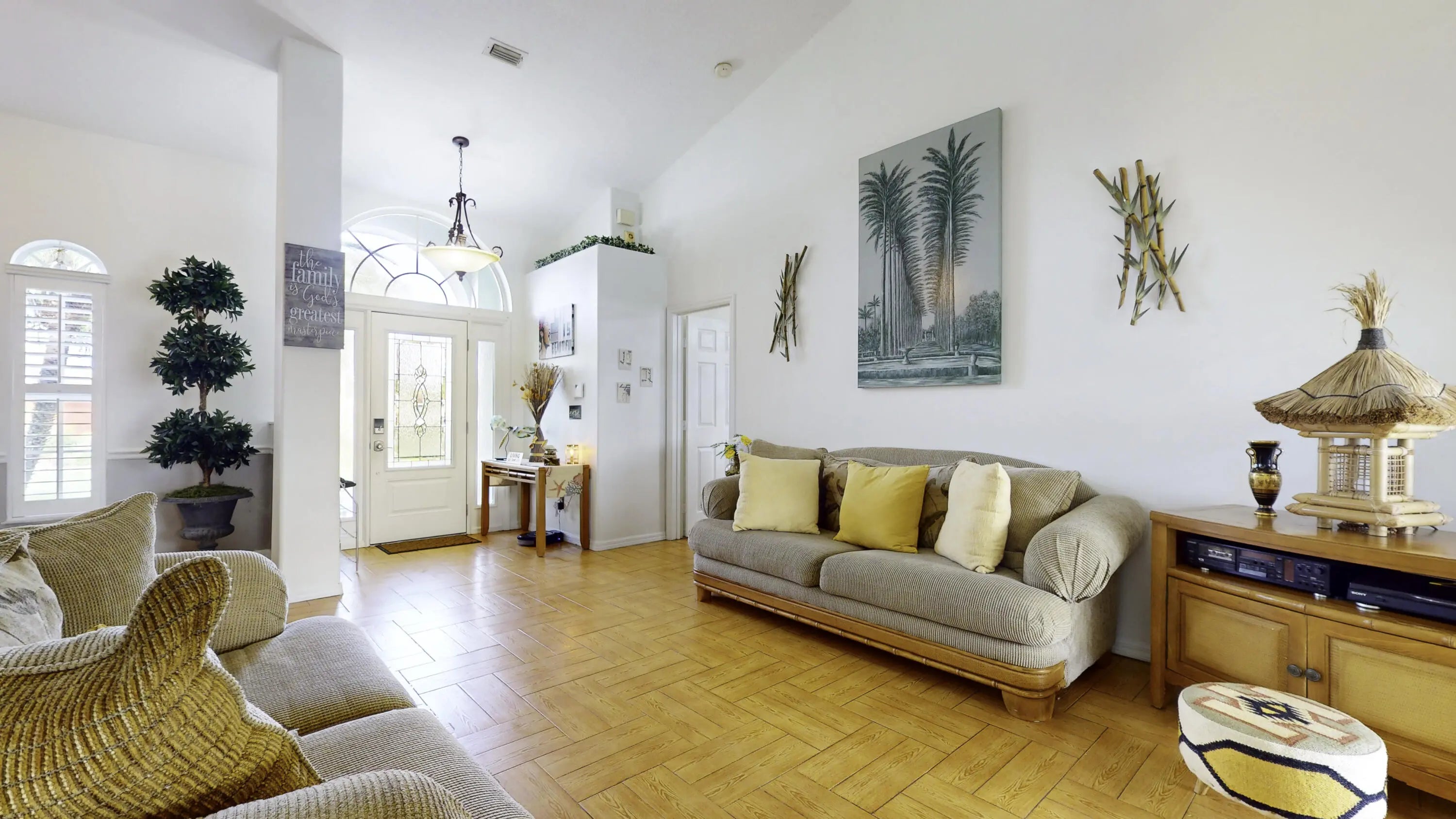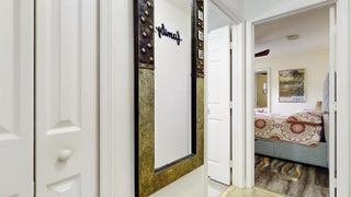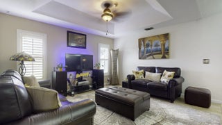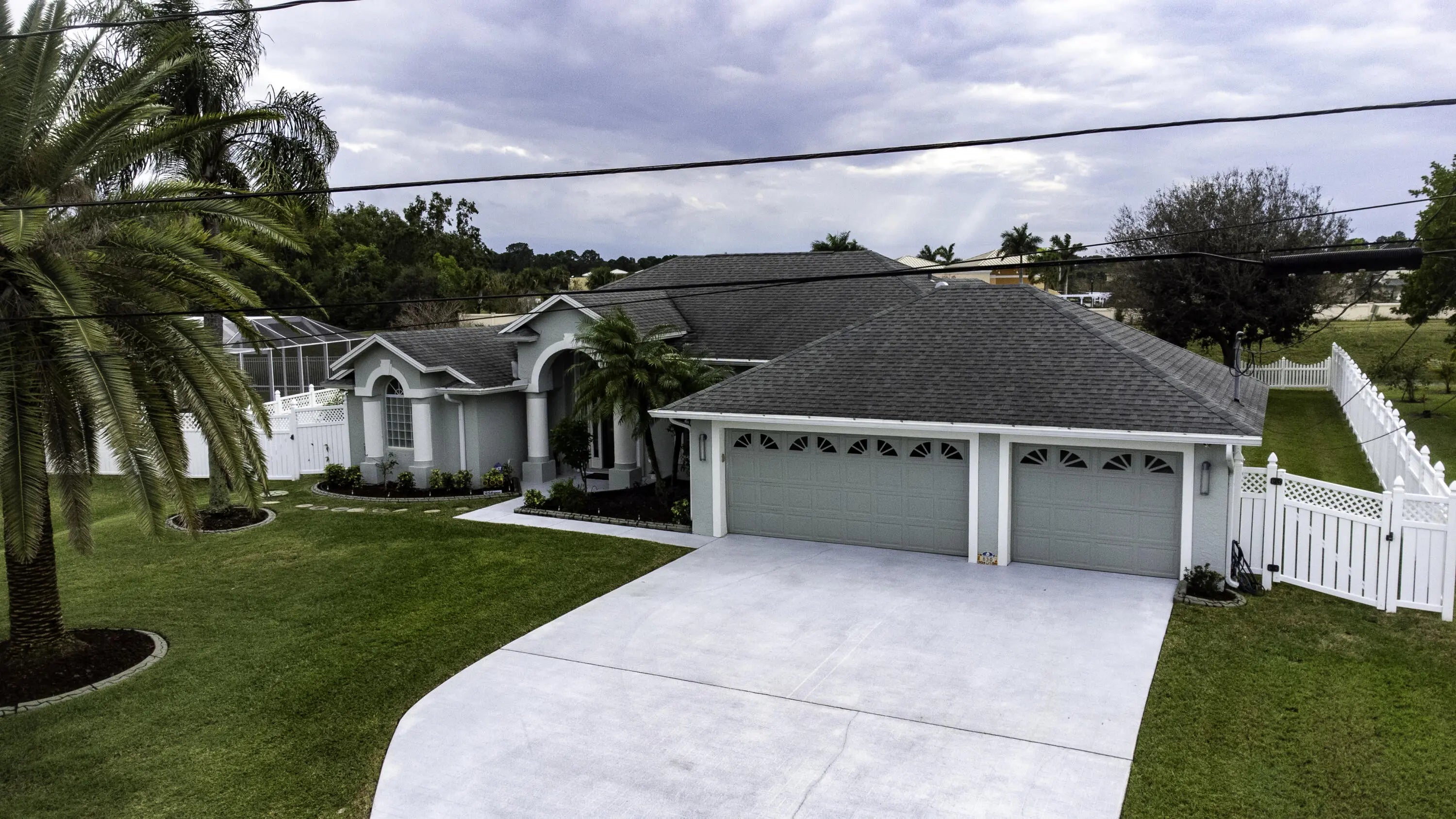 Beautiful energy-efficient Tropical Builder Home! This home offers many features and updates, making it the perfect blend of comfort, style, and convenience. Owner replaced entry door 2020. 2019 roof with the added bonus of solar panels, ensuring you save electricity monthly. A/C 2021. Water Heater 2021, Electric car charging station in garage, New pool pump & heater, pool was resurfaced in 2022. extended driveway providing ample parking space for guests. Wood plantation shutters inside the home. Accordion shutters for porch and front entry door, and hurricane panels for exterior windows. Tray ceiling in Family and master, new exterior paint. The kitchen is beautifully done w/ granite counters. Newer SS appliances. Guest bath renovated. Big Porch area overlooking the jacuzzi screened pool with view of water canal on the back. New tile around pool. Vinyl Fenced yard, Gutters. Sprinkler for lawn irrigation. Water treatment Softener-Owned. Beautiful Landscaping. A Short drive away from I95, Turnpike, Multiple grocery stores (Sam's Club, Aldi's, Publix), Walmart Supercenter, and Tradition where you will find Multiple Restaurants and so much more for you and your family. **A Must See**