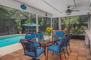 Welcome home to this tranquil 3/2 CBS pool home with fenced yard nestled amongst bamboo and tropical foliage for the ultimate privacy when entertaining or just spending quiet time with the family. Home is located on an oversized corner lot in a lovely highly desirable quiet neighborhood with no through traffic or HOA to pay! Screened in pool has a great lounging area right off of the spanish tiled lanai with an extended deck complete with a porch swing to relax on! Home includes newer: 2022 roof, laminate flooring in living, bedrooms and baths, updated lighting in most rooms, and newer stainless steel appliances in kitchen that overlooks the pool! Driveway is oversized for your outdoor toys with an installed 30 amp hookup. This sale will require lender approval. maintained home. Centrally located close to shopping, restaurants, schools and beaches.