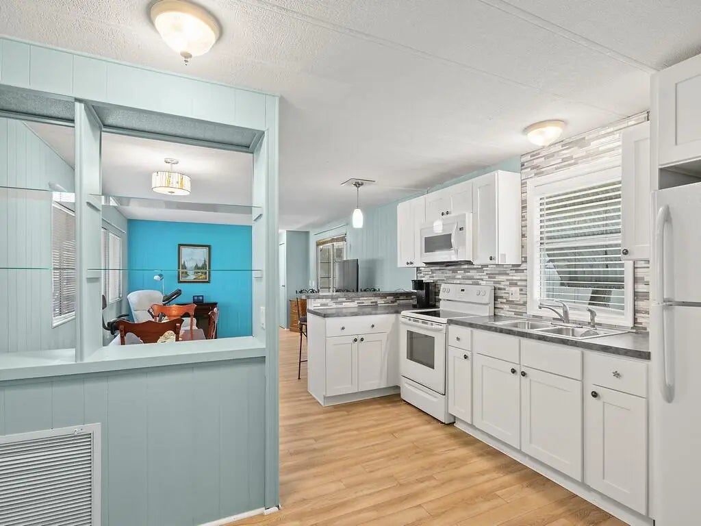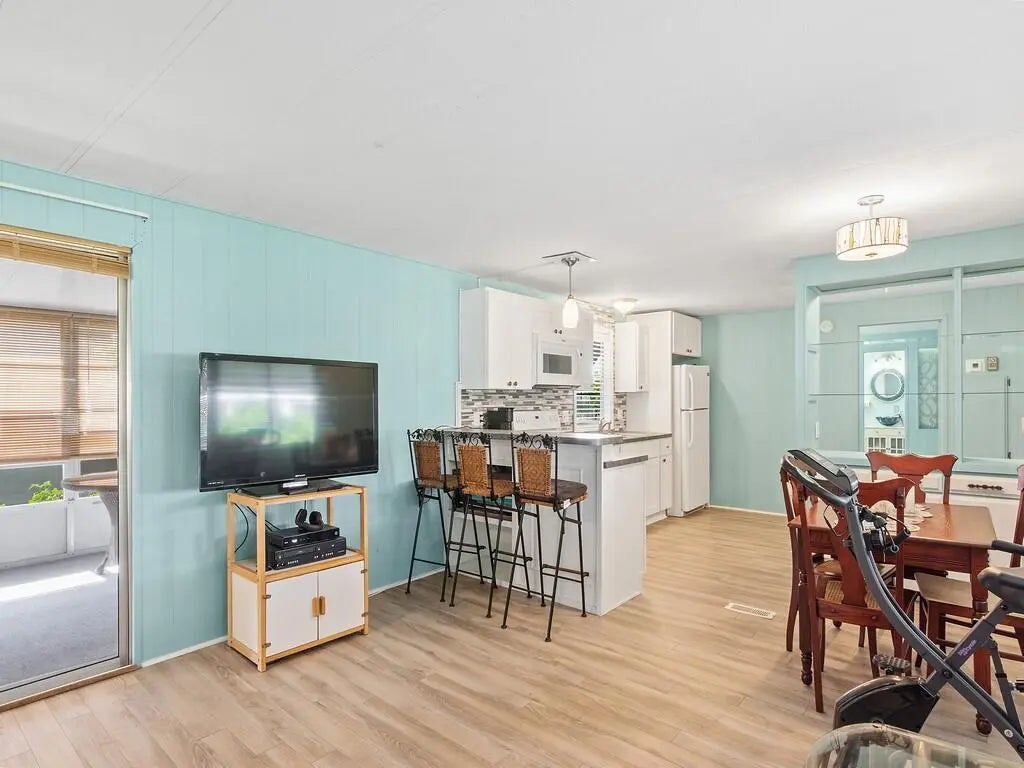 This 2/2 mobile home located in the 55+ community of Pinelake Village in Jensen Beach has a cute beachy vibe that makes for a great getaway or a perfect retirement home. The kitchen and bathrooms have been totally remodeled and it has a new A/C unit and new washer and dryer, new flooring throughout, and a large screened in patio. The roof has a lifetime warranty, vapor barriers to keep your crawl space dry are intact and it also has double tie-downs. Lot rent is only $805 per month and includes cable, trash removal, recycling and all the amenities of the clubhouse. Conveniently located close to downtown Jensen Beach for shopping, dining, and the beaches.