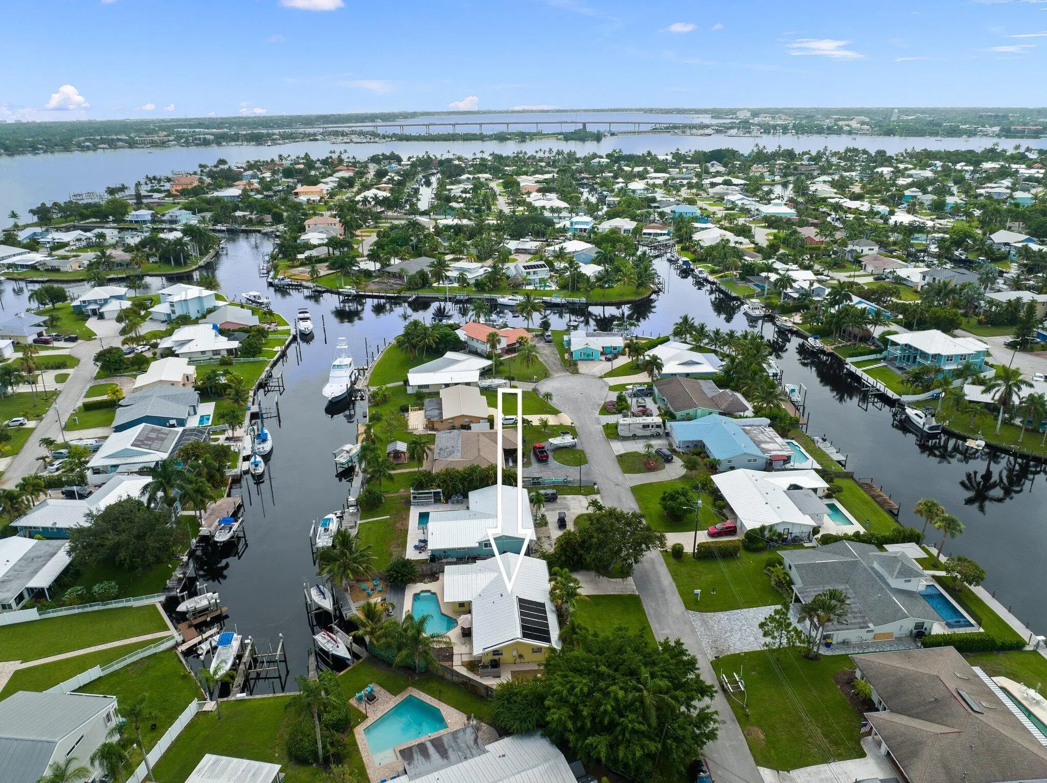 **SELLER FINANCING AVAILABLE WITH NEGOTIABLE TERMS!!** Situated in the prestigious waterfront community of Lighthouse Point/Seagate Harbor, this 3 bed, 2 bath fully furnished home combines exclusive living with convenient Ocean access. Step inside to an inviting open floor plan designed for both relaxation and entertaining. The spacious living areas flow effortlessly into the gourmet kitchen equipped with white quartz countertops, walk-in pantry, shaker cabinets and GAS stove. Escape to the outdoors where a built-in fire-pit, private dock and 25 foot boat lift await, accompanied by lush landscaping and a solar-heated pool. This home is equipped with a durable metal roof, partial impact windows and tinted glass throughout, enhancing both energy efficiency and privacy. Palm City offers A-rated schools and is conveniently located near I-95 and the turnpike, making this home perfect for commuters and boating enthusiasts alike!