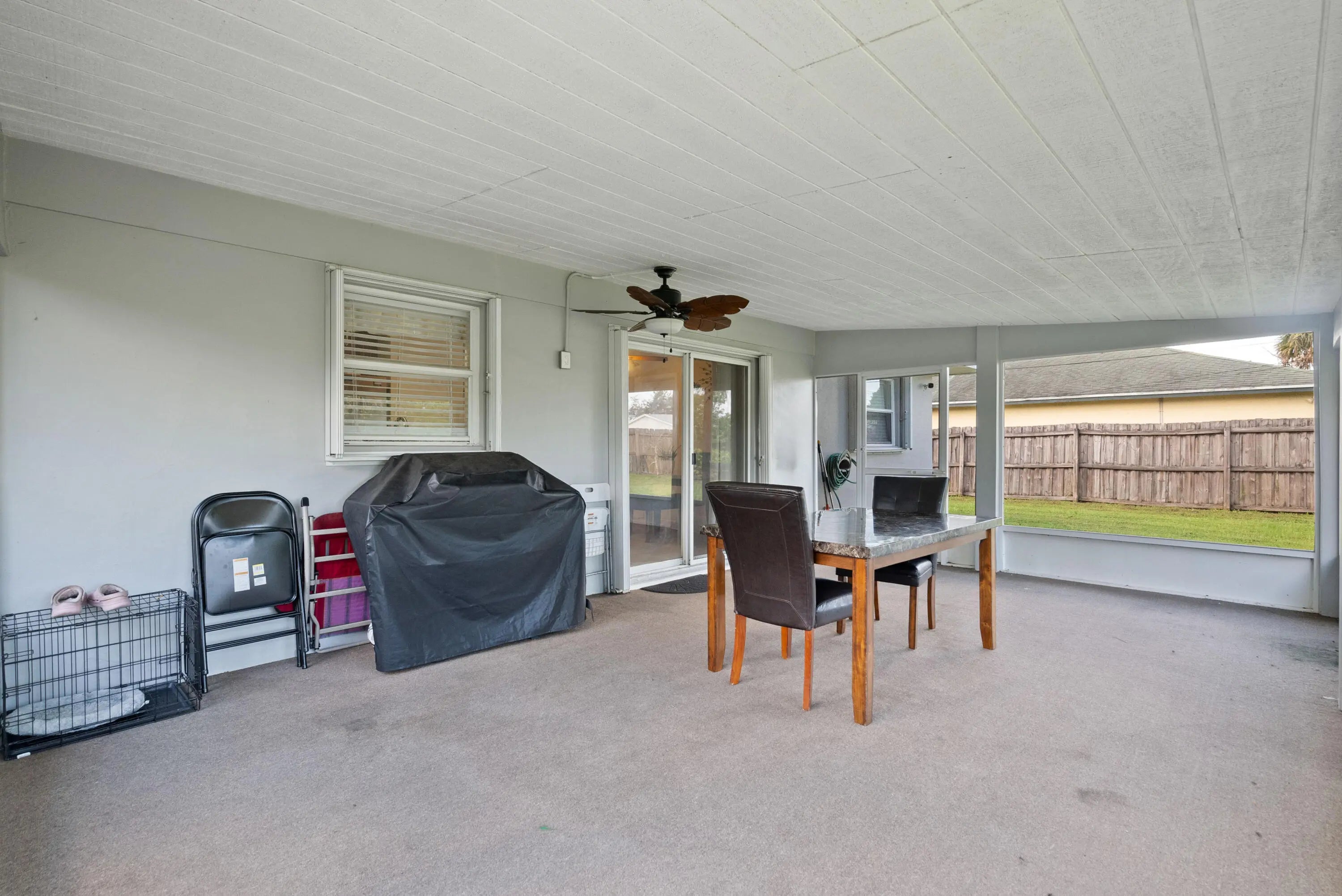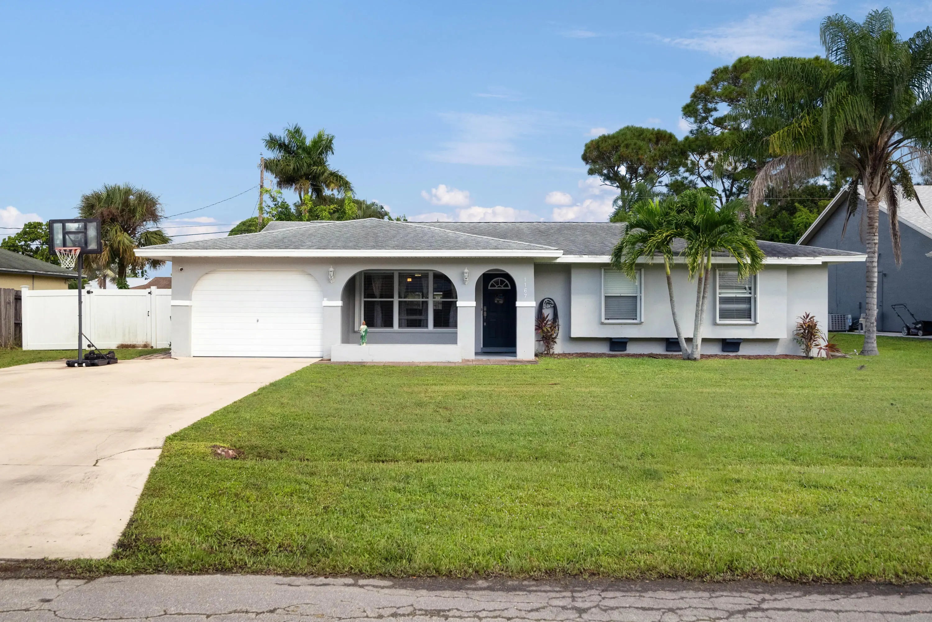 Very Quaint CBS home w/ privacy fenced-in backyard and a bonus large, screened lanai. This home is 3 Bedrooms, 2 Bathrooms w/ wide parking for extra vehicles, RV, or Boat. Granite kitchen w/stainless steel appliances. Newly painted inside and pressure washed outside. Walk-in shower. Window Seat. Newer hot water heater & A/C, less than 7 years. No HOA so toys and pets are permitted. Very comfortable living space, plus add the enclosed Florida room for a more spacious feel. Great CBS home w/an awesome yard. The Perfect family home for first time buyers, downsizers, relocation, or investors. This home is east-central PSL and conveniently located to the beach, highways, schools, shopping, 3 boat ramps, kiddie parks, dining, golf, theater, botanical gardens, community events. Don't miss out!
