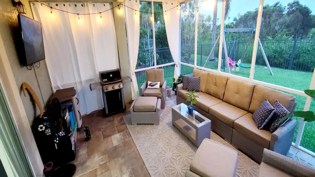 This beautiful 4-bedroom, 2.5-bathroom home with loft, 2 car garage and extended 3 car driveway is located in the highly desirable TownPark community of Tradition. The popular Berkeley 5 model, built by Minto, boasts an open floor plan with new luxury vinyl plank flooring throughout the first floor and a beautiful, newly renovated gourmet kitchen. Kitchen features quartz countertops, double oven, custom all wood cabinetry, SS appliances. The extended covered and screened patio features Italian pavers and TV hookup, for entertaining and enjoying the Florida lifestyle. Wood floors upstairs and newly installed carpet in bedrooms. Spacious master bedroom with large walk-in closet. Relax and unwind while watching your favorite show when soaking in the updated master bathroom.