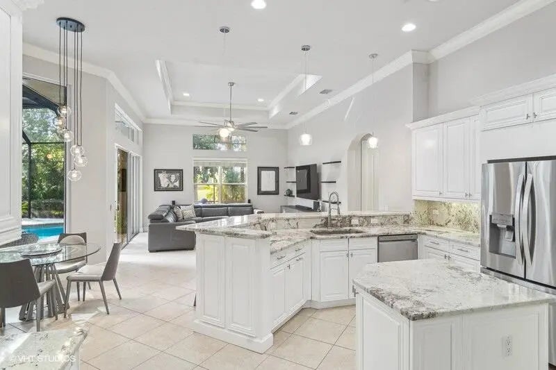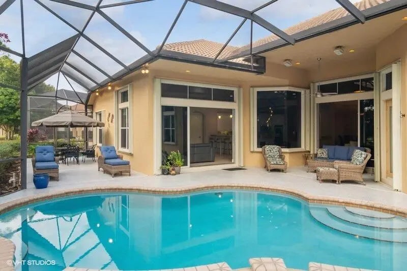 Welcome to your dream home in the exclusive PGA Village! This immaculate 4-bedroom, 4-bathroom home is designed for both comfort and style, featuring a built-in refreshing pool and spa overlooking the lush 7th hole of the PGA Wannamaker Golf Course. In addition to the 4 bedrooms, you have a den/office and a flex room. Formal living room and dining rooms give the extra space needed for entertainment, or for more casual dining you have a breakfast nook and snack bar seating in the open modern kitchen, that over looks a relaxing family room. Don't forget the wet bar for your morning coffee or nightly cocktails. An expansive covered and screened lanai, complete with a built-in BBQ offers the ultimate setting for outdoor dining and relaxation. Other features include a 3-car garage, a 500 gallon propane & a whole house generator for ultimate peace of mind. This home is designed for those who value luxury, comfort, and premier Florida living. Whether you're looking to entertain or simply enjoy peaceful golf course views, this home has it all! A perfect balance of modern amenities and classic elegance.