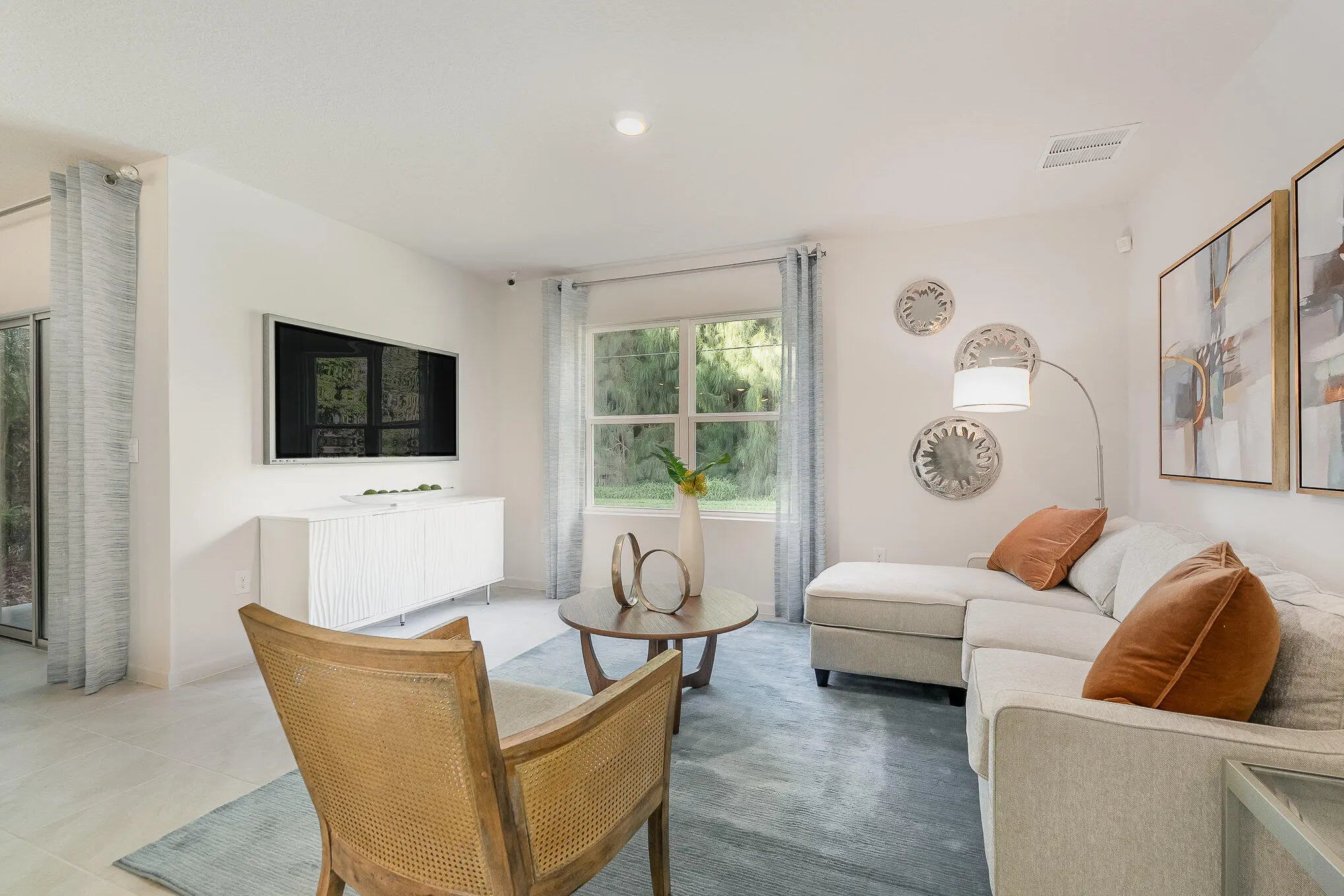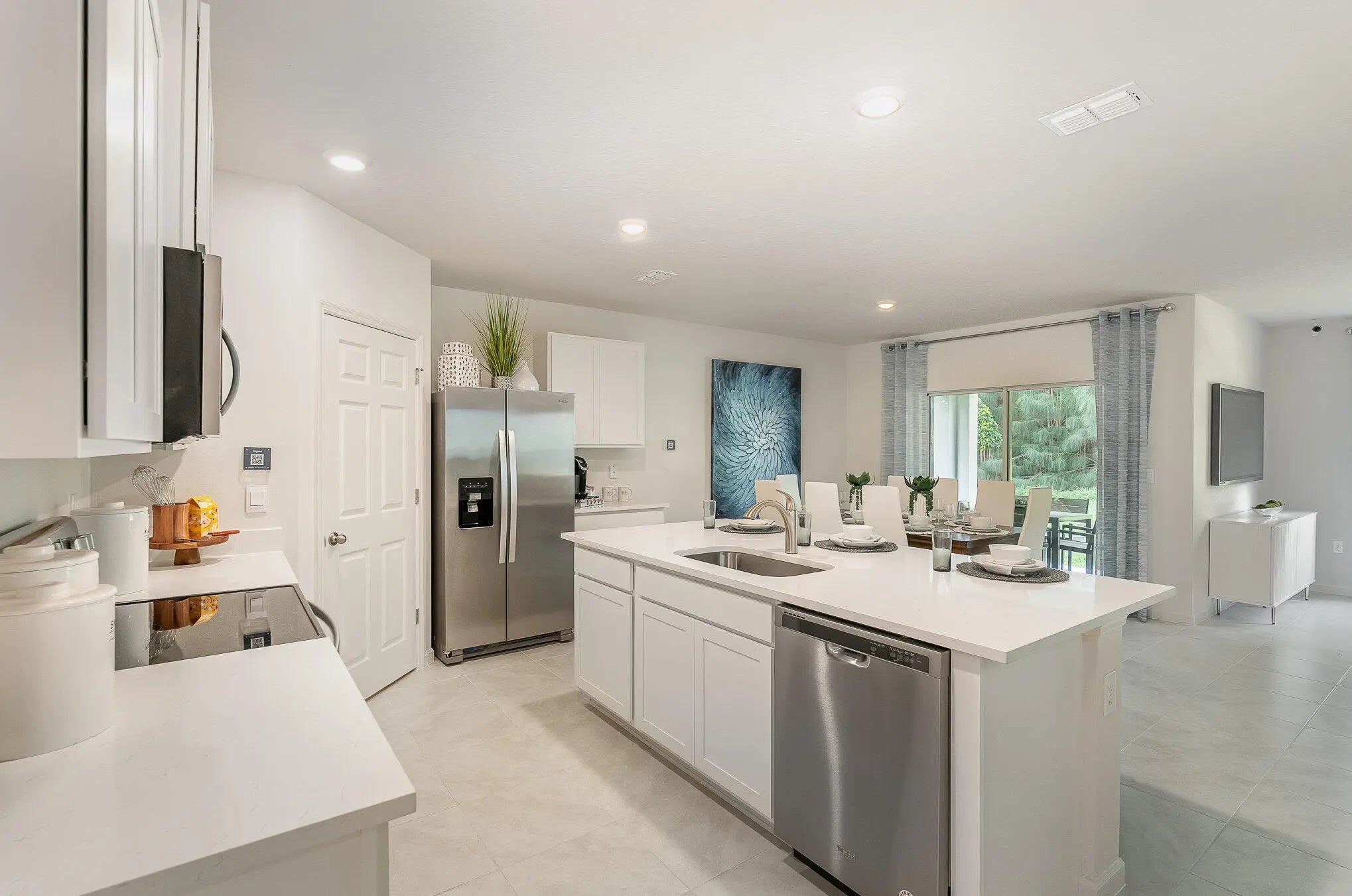 Introducing the Cali floorplan in Port St. Lucie, Florida, offering style and comfort in a boat and RV-friendly area with no HOA restrictions. This 4-bedroom, 2-bathroom home spans 1,828 square feet, featuring quartz countertops and tile floors. The open-concept layout connects the living room, dining area, and kitchen, ideal for entertaining. The kitchen boasts an oversized undermount sink, stainless-steel appliances, and a large island. The primary suite includes an ensuite bathroom with dual sinks, a shower, and a walk-in closet. Smart home technology is included.