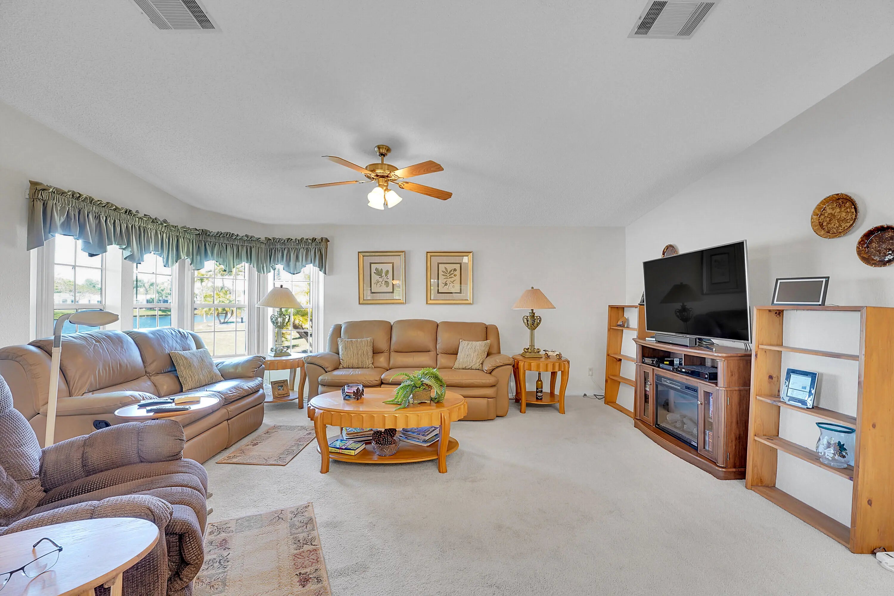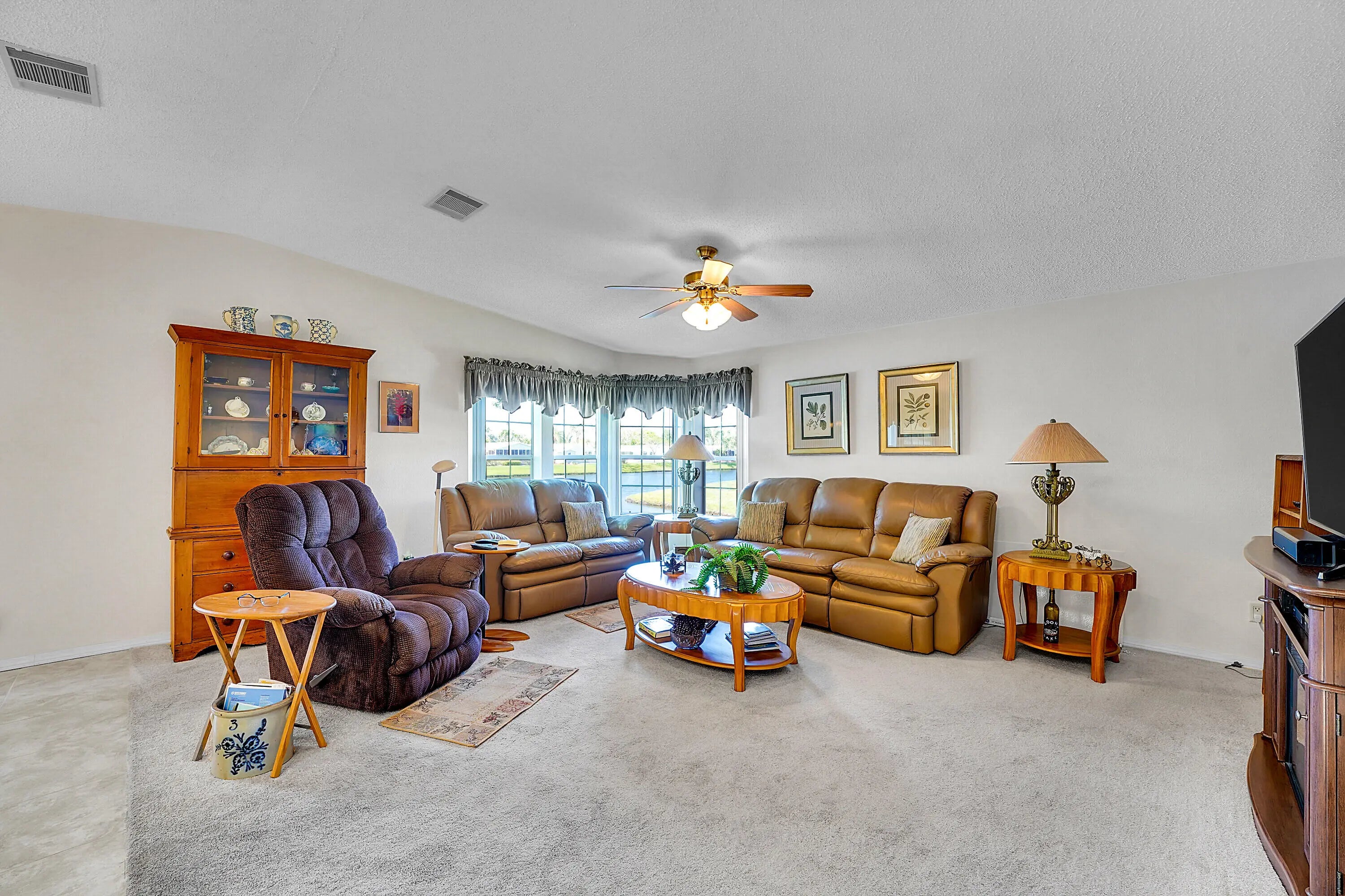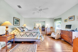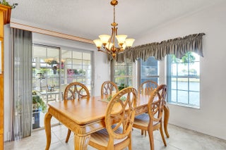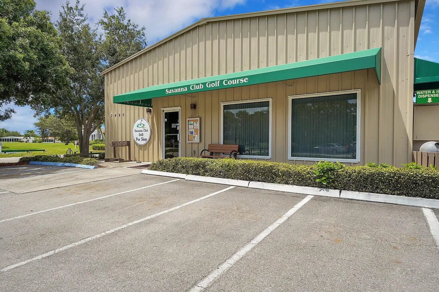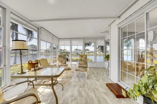 Waterfront! This former model home has 2 bedrooms, den, a custom kitchen with crown molding, island, granite counters and an interior laundry room with slop sink. The sunroom, overlooking the water view, has been updated with new flooring. You will enjoy the blend of comfort & leisure. And, in this 55+vibrant community, residents enjoy a wealth of amenities, including cafe, theatre, golf, tennis, pickle ball, swimming and clubs that cater to diverse interests. There's truly something for everyone in Savanna Club with its 3 clubhouses, pools, fitness centers and so many activities. Located on a cul-de-sac, wider driveway, hurricane panels, new roof 2018, HVAC 2024. Land Lease.
