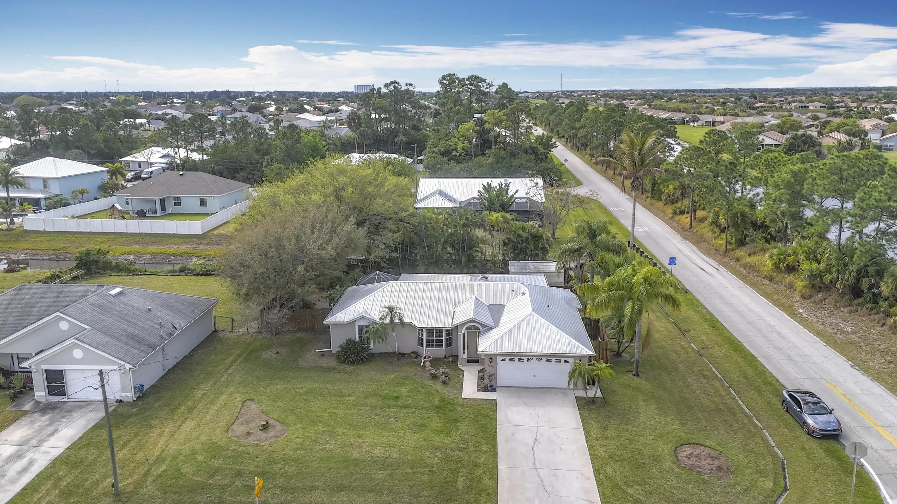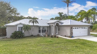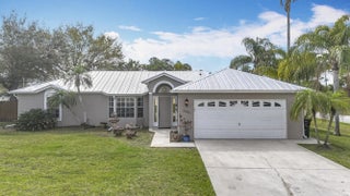 This beautifully updated home in a prime Port St. Lucie location Just 15 miles to Jensen Beach! offers charm, style, and durability. Featuring tile, engineered hardwood, and laminate flooring, it boasts elegant upgrades like 6-inch baseboards, crown molding throughout, and plantation shutters. The kitchen and bathrooms shine with granite countertops, while a spacious, fully fenced backyard includes a large 12' x 16' storage shed for added convenience. An exceptional highlight of this home is the expansive 13' x 36' air-conditioned and heated bonus room adjacent to the kitchen, perfect for a family room, home office, or entertainment space. Situated on a desirable corner lot, this home also comes with a long-lasting metal roof and custom hurricane shutters, providing both security and peace of mind. Don't miss this move-in-ready gemschedule your showing today!