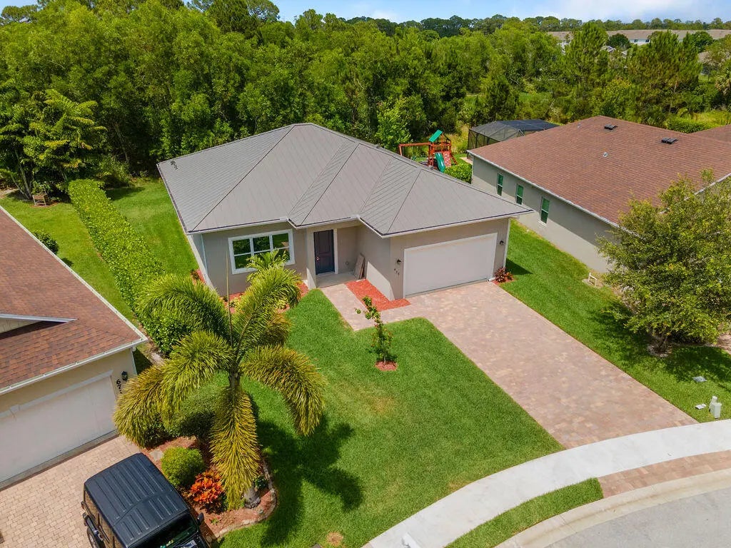 Modern Coastal Elegance Awaits! Experience luxury and comfort in this custom-built 3BR / 2.5BA home featuring 1,780 sq. ft. of thoughtfully designed living space. The open-concept layout boasts 11' ceilings, 8' doors, and sleek ceramic tile flooring throughout. A standing seam color-matched metal roof pairs with full-impact windows & doors for beauty and peace of mind. The chef's kitchen impresses with stainless steel appliances, 36'' custom cabinetry, and quartz countertops. Step outside to lush tropical landscaping with irrigation front and back. Enjoy resort-style amenities—private boat ramp, scenic lake, clubhouse, pool & spa, fitness center, nature trails, and RV/boat storage. Live your best Florida lifestyle!