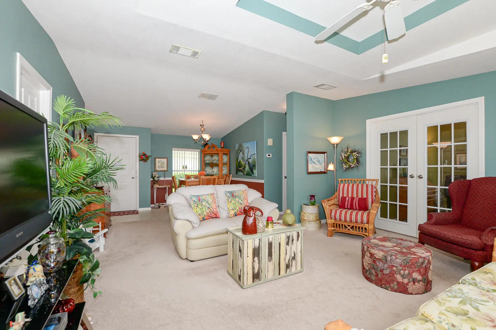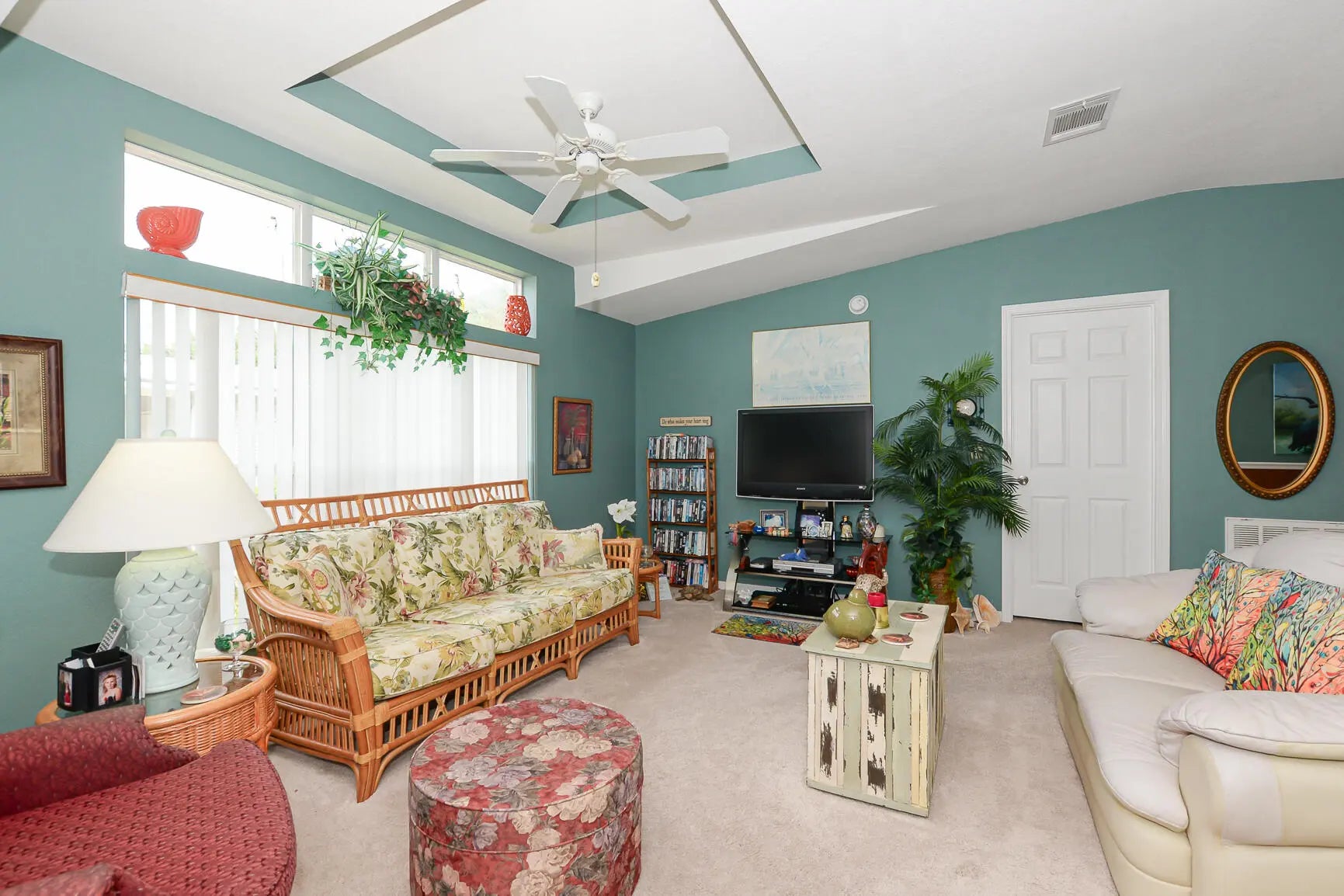 Jacobsen built 2 bedroom, 2 bath + den/office or third bedroom that backs to a wooded preserve in the desirable Savanna Club 55+ community. This cheerful, well loved home with vibrant colors won't disappoint and is sold furnished. Savanna Club offers golf, a cafe, 3 pools, 2 clubhouses, a rec. center, theater & so much more! Land Lease Property
