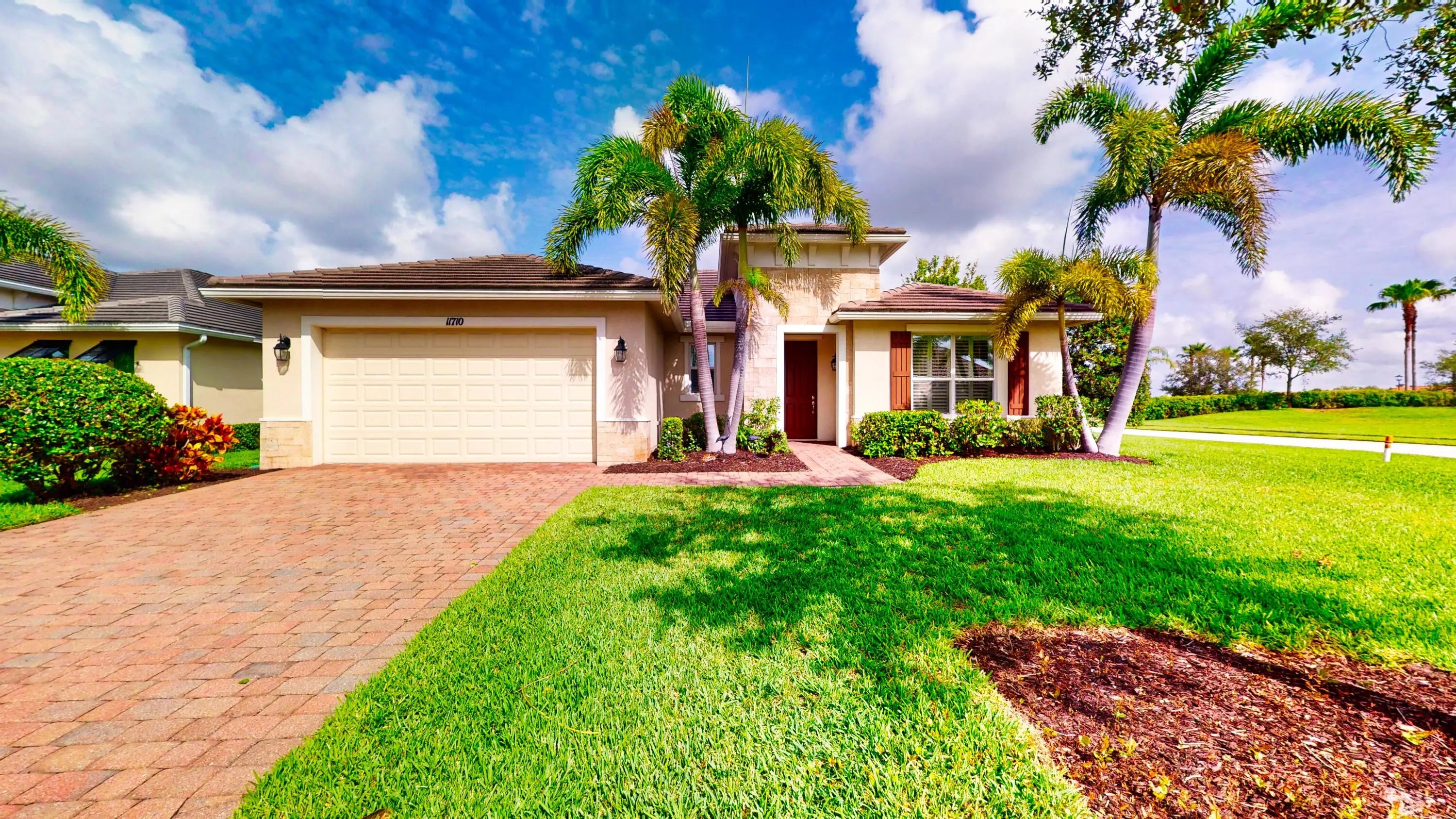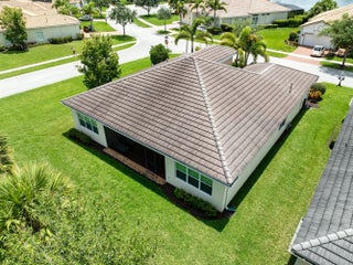 Located on a beautifully landscaped corner lot, this spacious 2-bedroom, 2.5-bath home with a versatile den offers over 2,100 square feet of elegant living in a thoughtfully designed layout. The home welcomes you with a large, open family room featuring soaring ceilings—perfect for entertaining or relaxing in style. The gourmet kitchen is equipped with upgraded 42-inch cabinets, granite countertops, a gas range, and ample storage, seamlessly connecting to the dining and living areas. The expansive master suite is a private retreat with a custom walk-in closet and a well-appointed en-suite bathroom featuring his and hers sinks and a large walk in shower. The split floor plan ensures privacy, with a generous second bedroom offering its own en-suite bath, ideal for guests. The den, located just off the main living area, provides flexible space for an office, reading room, or hobby area. A convenient half bath off the living room adds additional comfort for visitors. The large laundry room offers extra storage and functionality. Step outside to the screened and covered lanai, surrounded by lush privacy landscaping, perfect for enjoying quiet mornings or peaceful evenings. This home perfectly combines comfort, style, and functionality in a prime corner-lot setting.