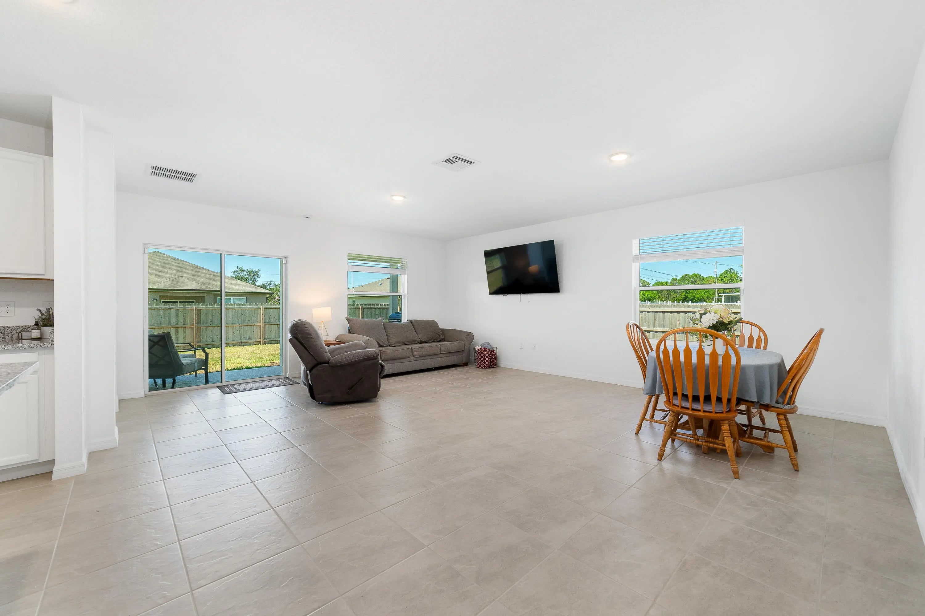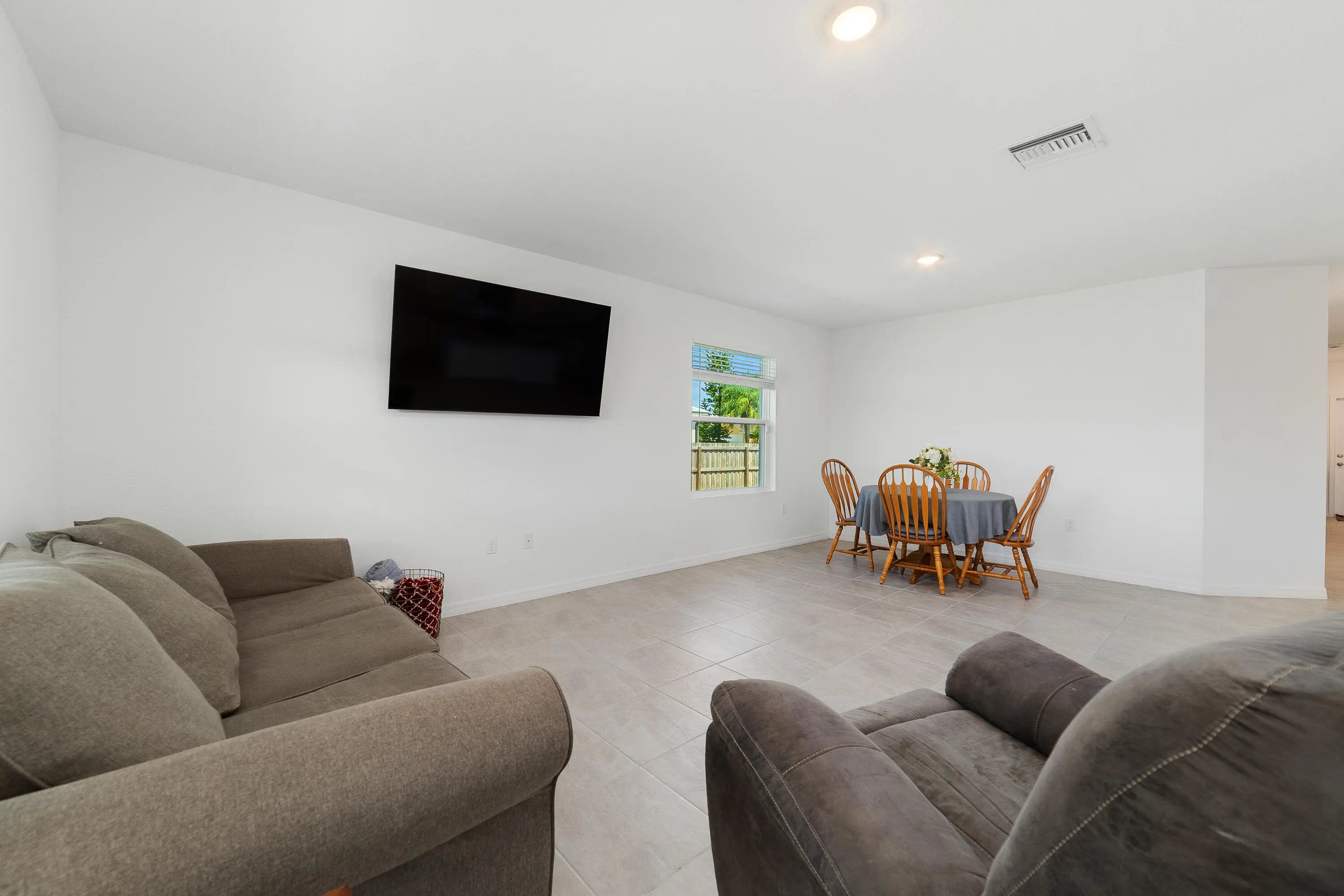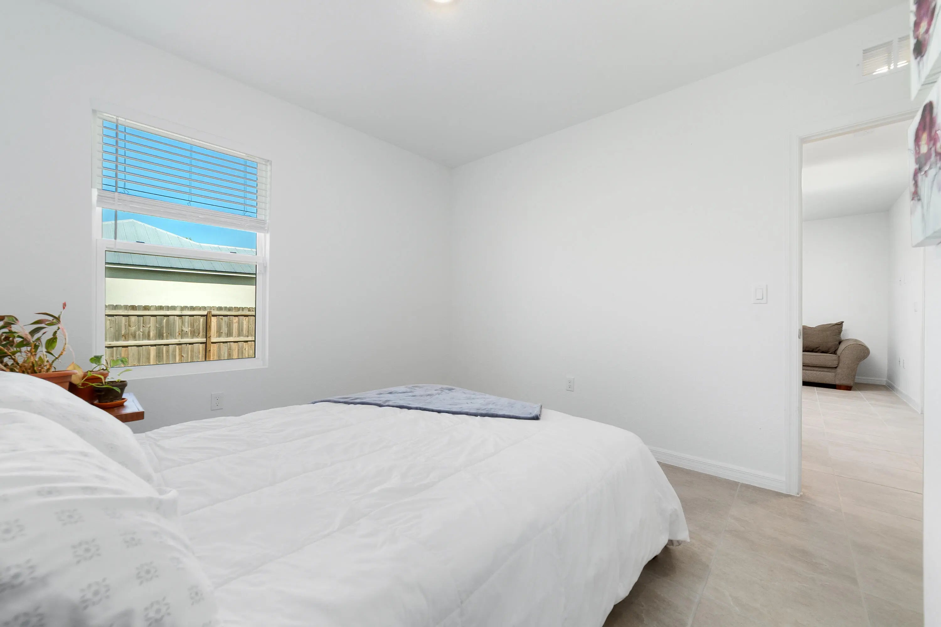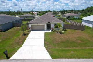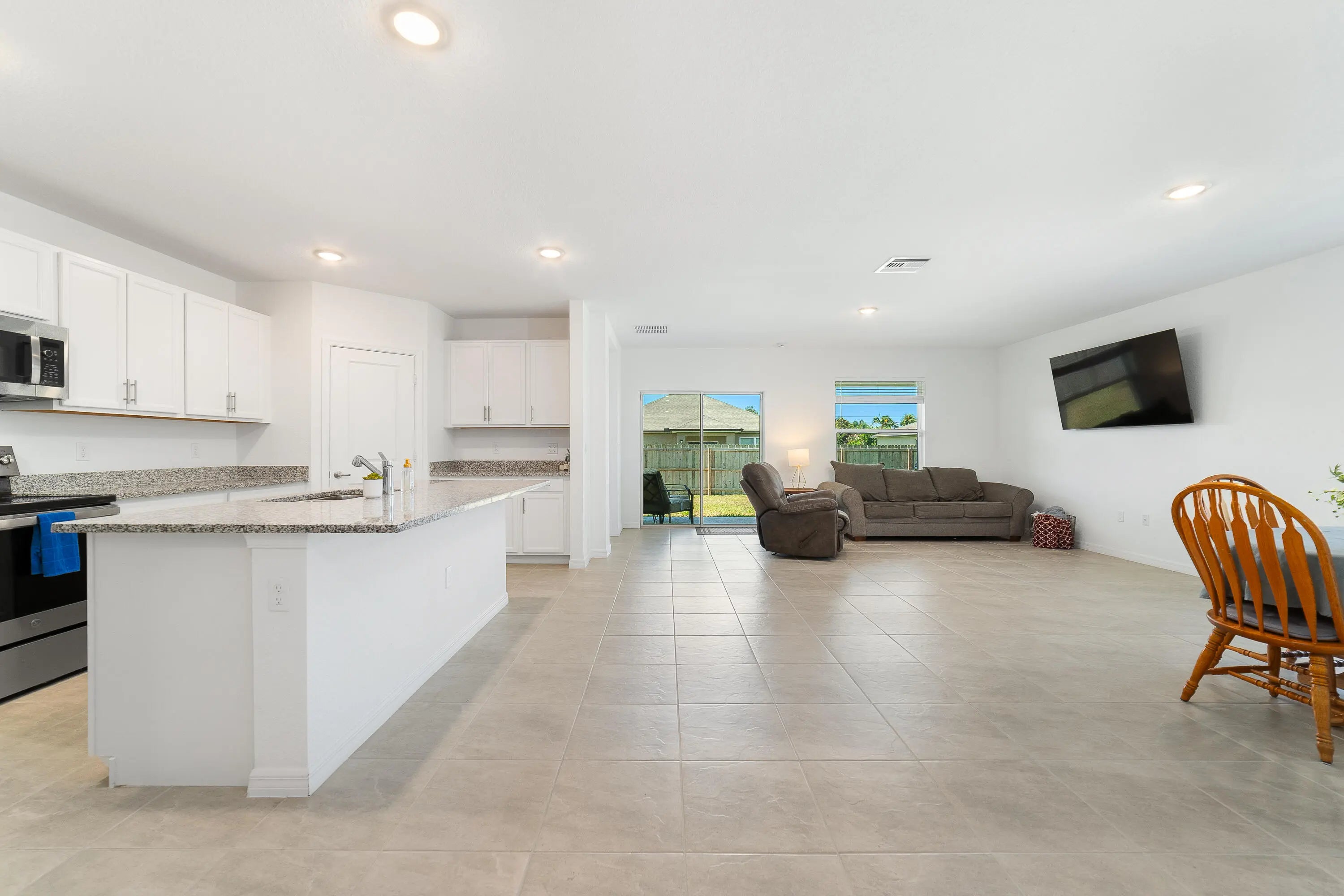 Welcome home to this immaculate 4 bedroom 3 bath opportunity located in the highly sought after NO HOA area of central Port St. Lucie. As soon as you enter, you immediately notice the abundant natural light and welcoming finishes of this 2023 build. This unique property boasts an entire, private guest wing that is accessible from inside, but which also has its own separate entrance. This feature provides its own bedroom, full bath and living space which includes granite countertop space, cabinetry and a sink. This suite offers great flexibility as a guest suite, additional bedroom or an office area. Tile flooring throughout provides great continuity and easy maintenance. The large kitchen features stainless steel appliances, modern white cabinetry and large center island with bar space that opens out to the family room, perfect for entertaining. The large primary suite boasts a large walk in closet, garden views and large en suite bath with dual vanities. Out back, you have a large lanai, newer privacy fence and tons of room for entertaining, play or a future pool. Two car garage, large laundry room and panel shutters for storm protection round out the highlights. Located in the heart of Port St. Lucie, this opportunity provides a fantastic location not far from gorgeous beaches, shopping and quick access to highways. Please make sure to check out the 3D virtual walk through and schedule an appointment today!