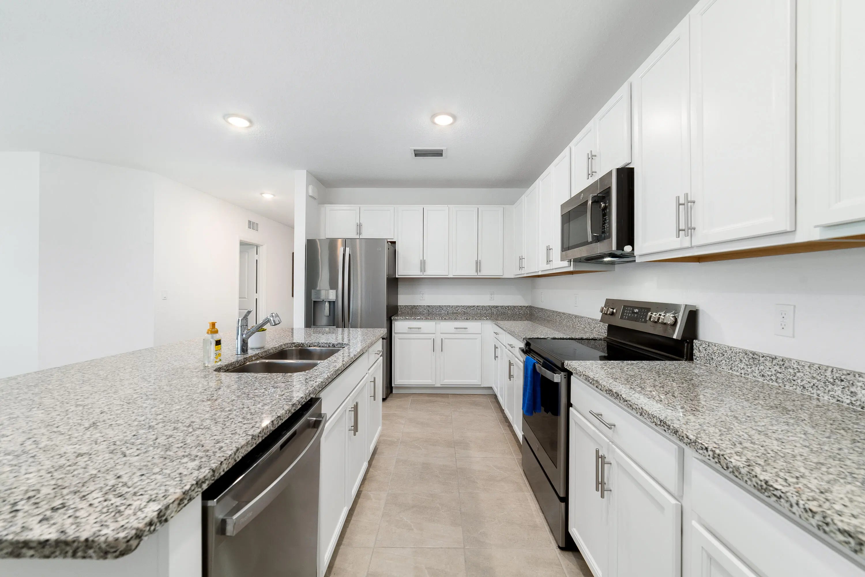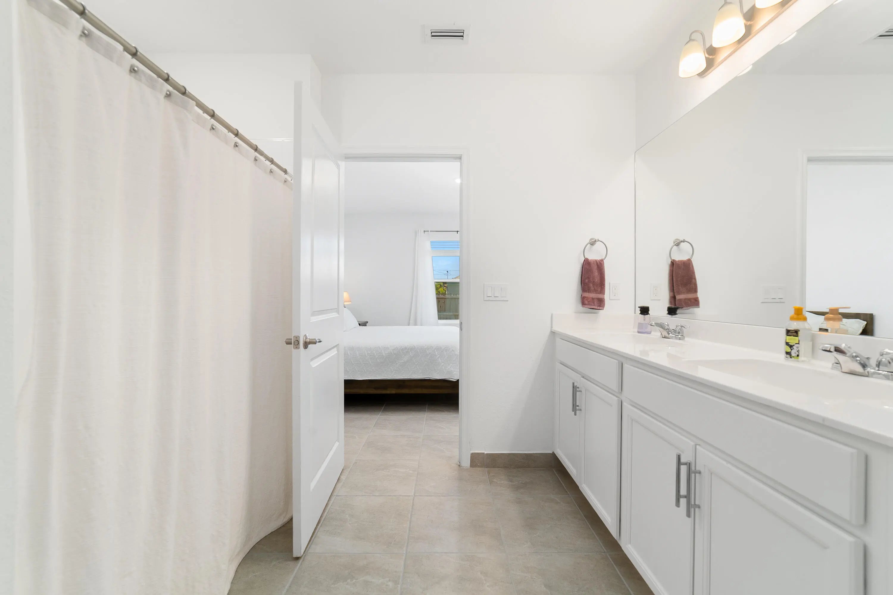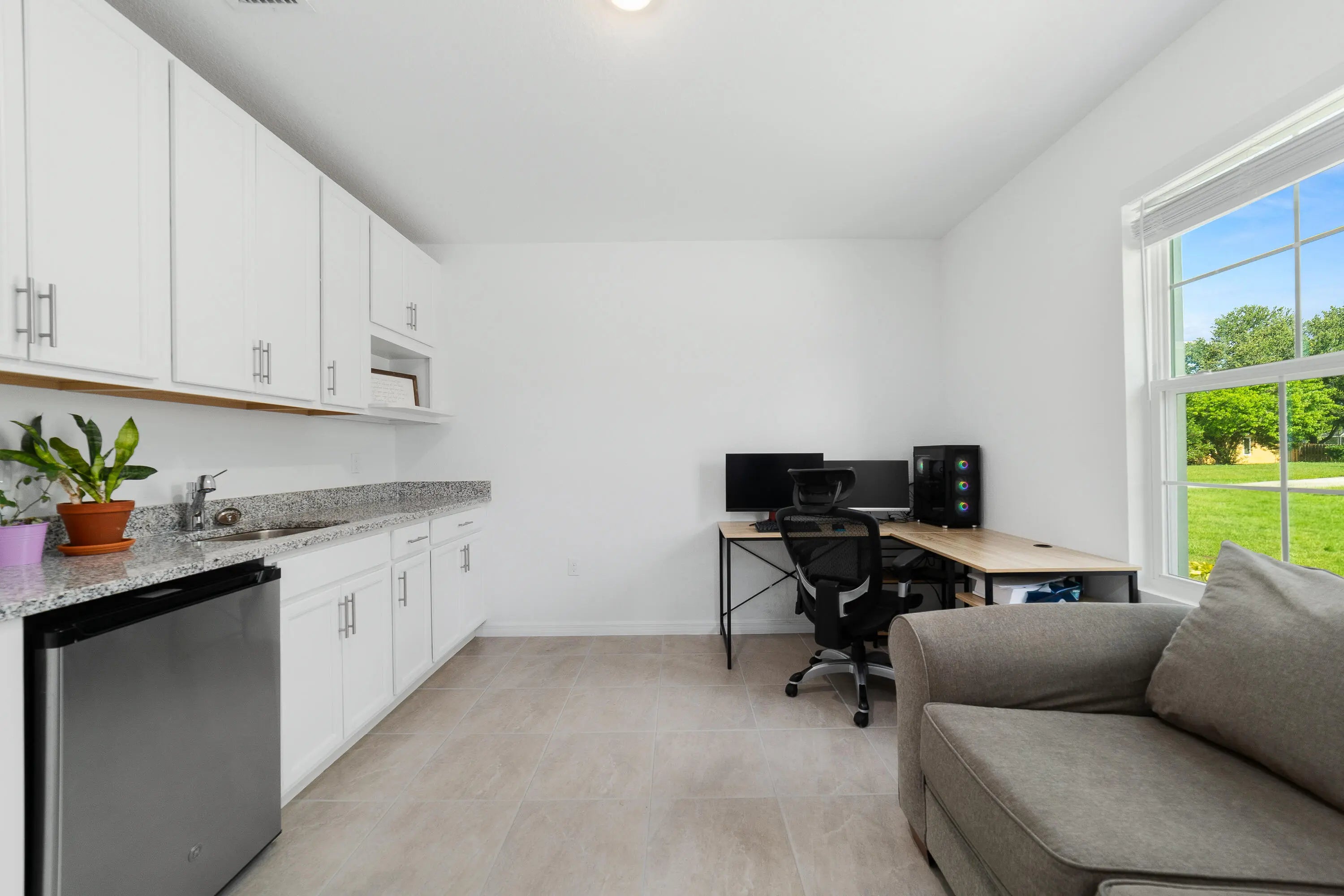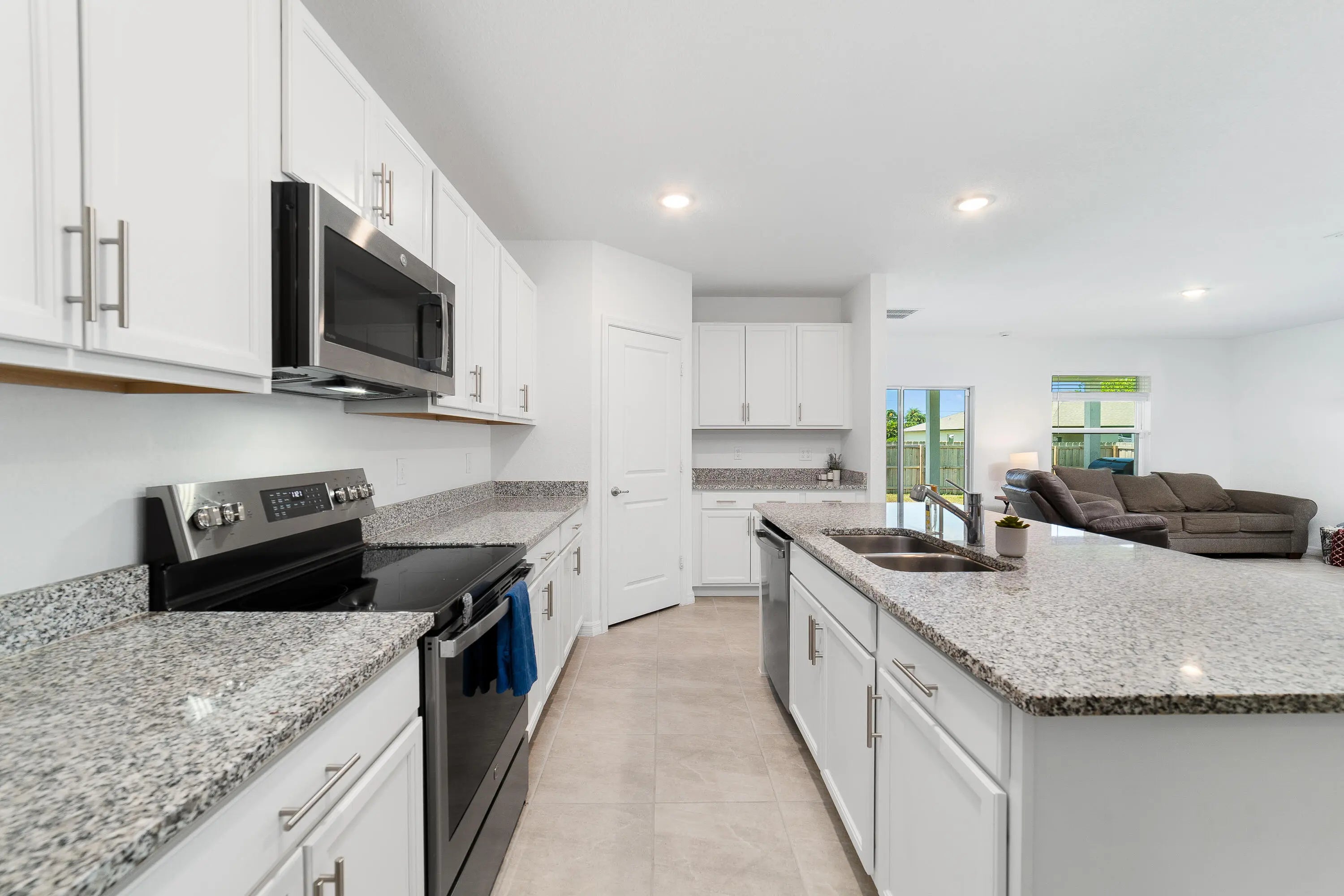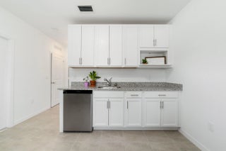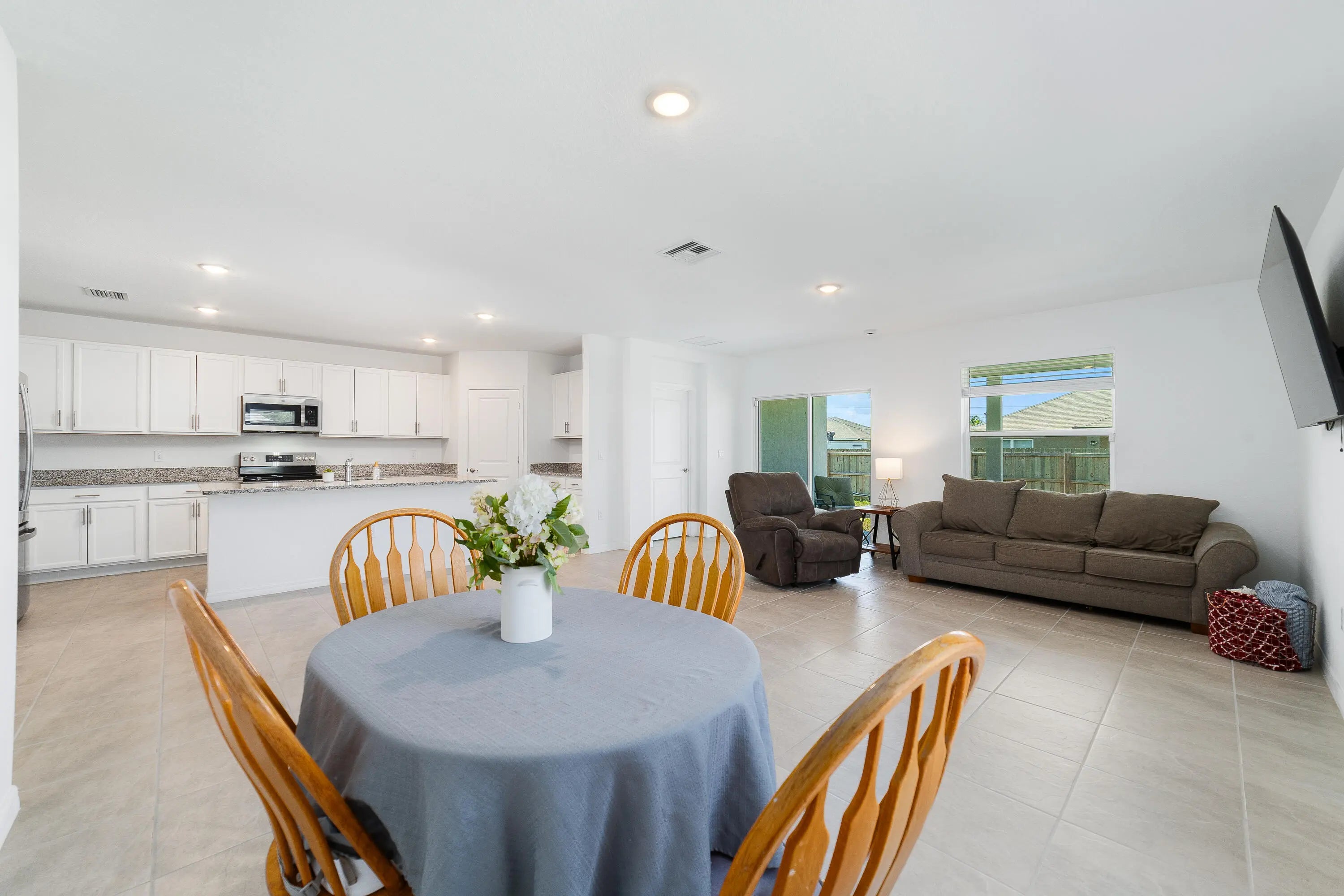 Welcome home to this immaculate 4 bedroom 3 bath opportunity located in the highly sought after NO HOA area of central Port St. Lucie. As soon as you enter, you immediately notice the abundant natural light and welcoming finishes of this 2023 build. This unique property boasts an entire, private guest wing that is accessible from inside, but which also has its own separate entrance. This feature provides its own bedroom, full bath and living space which includes granite countertop space, cabinetry and a sink. This suite offers great flexibility as a guest suite, additional bedroom or an office area. Tile flooring throughout provides great continuity and easy maintenance. The large kitchen features stainless steel appliances, modern white cabinetry and large center island with bar space that opens out to the family room, perfect for entertaining. The large primary suite boasts a large walk in closet, garden views and large en suite bath with dual vanities. Out back, you have a large lanai, newer privacy fence and tons of room for entertaining, play or a future pool. Two car garage, large laundry room and panel shutters for storm protection round out the highlights. Located in the heart of Port St. Lucie, this opportunity provides a fantastic location not far from gorgeous beaches, shopping and quick access to highways. Please make sure to check out the 3D virtual walk through and schedule an appointment today!