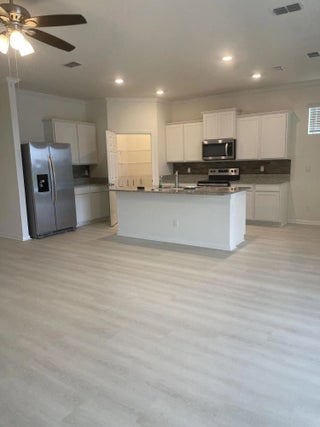 Move in SPECIAL!!!! REACH OUT TO FIND OUT MORE INFO!!!! Stunning 4BR/2.5BA DR Horton home with lakefront views in gated ''The Estates'' at The Preserves, just 2 miles from downtown Tradition. Renovated May 2025: new flooring, interior paint, granite vanities, crown molding, and added half bath. Over 2,000 sq ft + 400 sq ft garage and 220 sq ft screened lanai with Ox Floors coating. Open layout, quartz counters, walk-in pantry, high ceilings, new washer/dryer. Master suite with dual closets and large ensuite. HOA includes lawn care, pool, dog park, and trails. Security system & phone line included. Pets allowed w/approval. Available now!