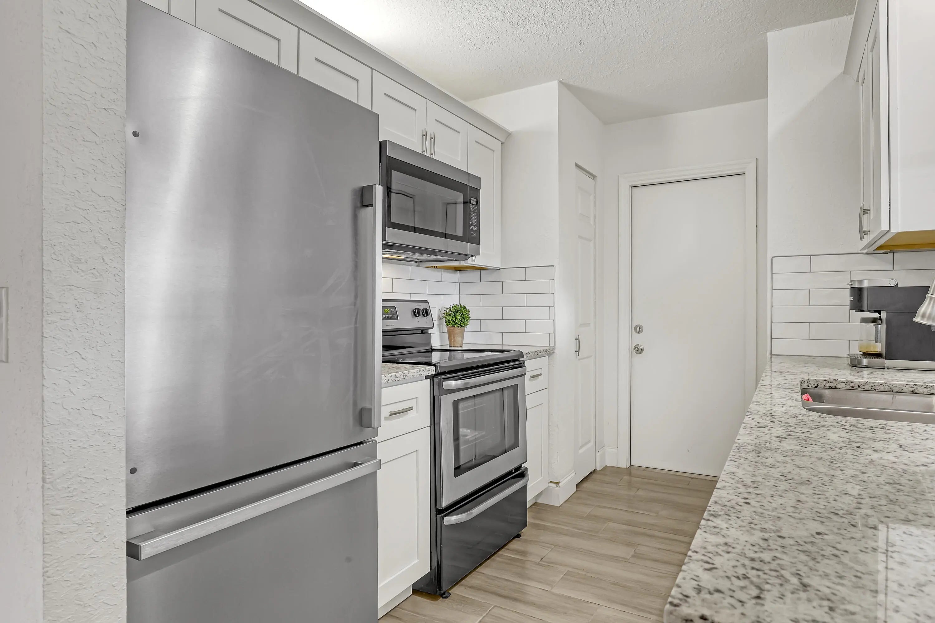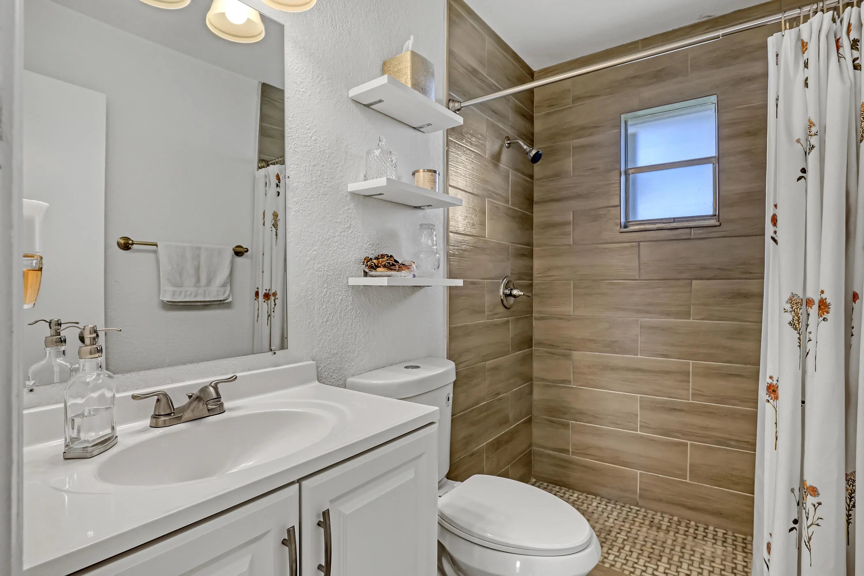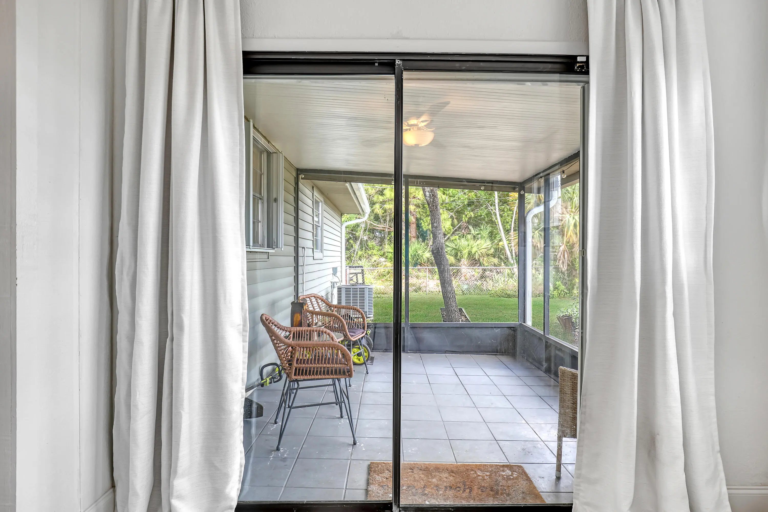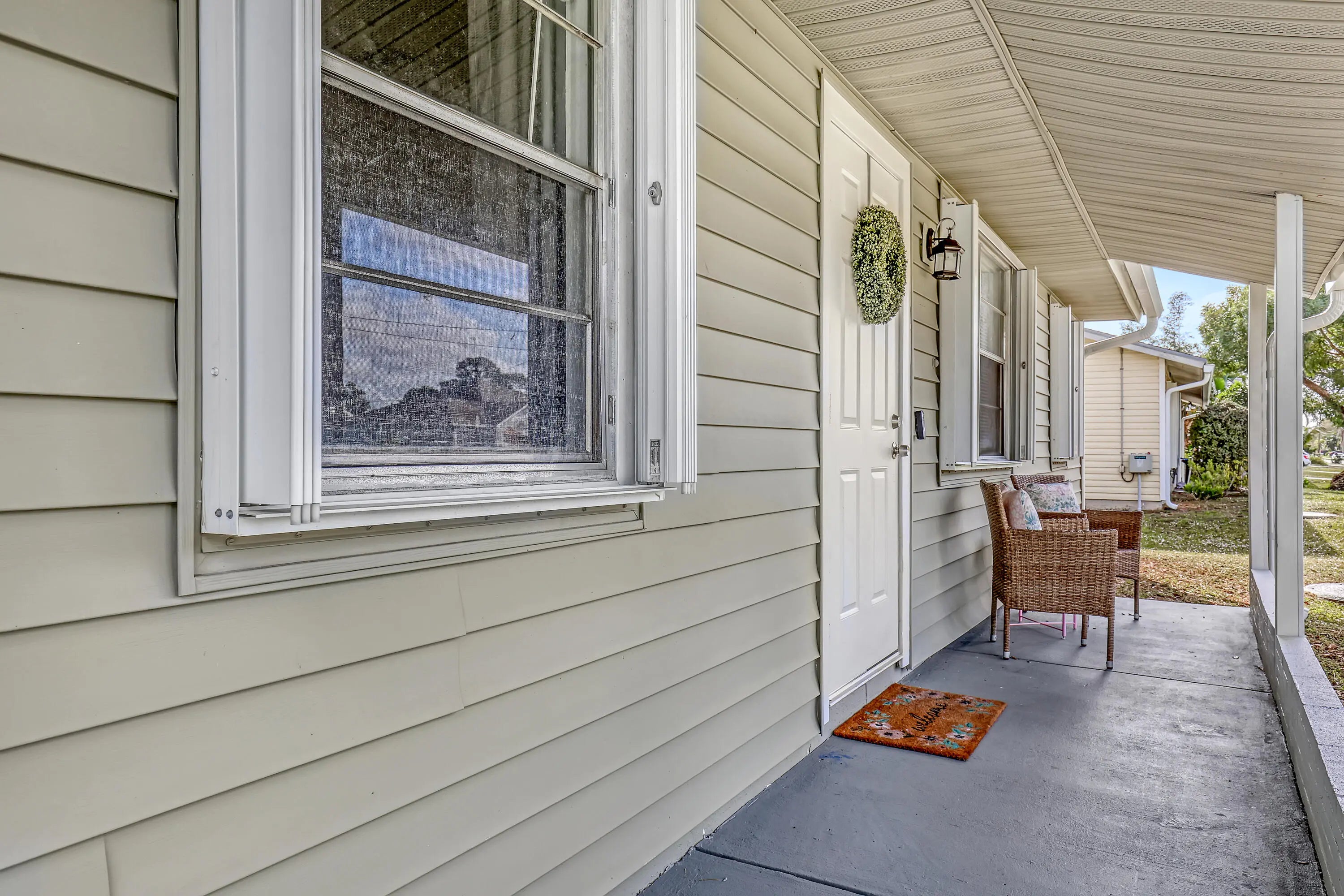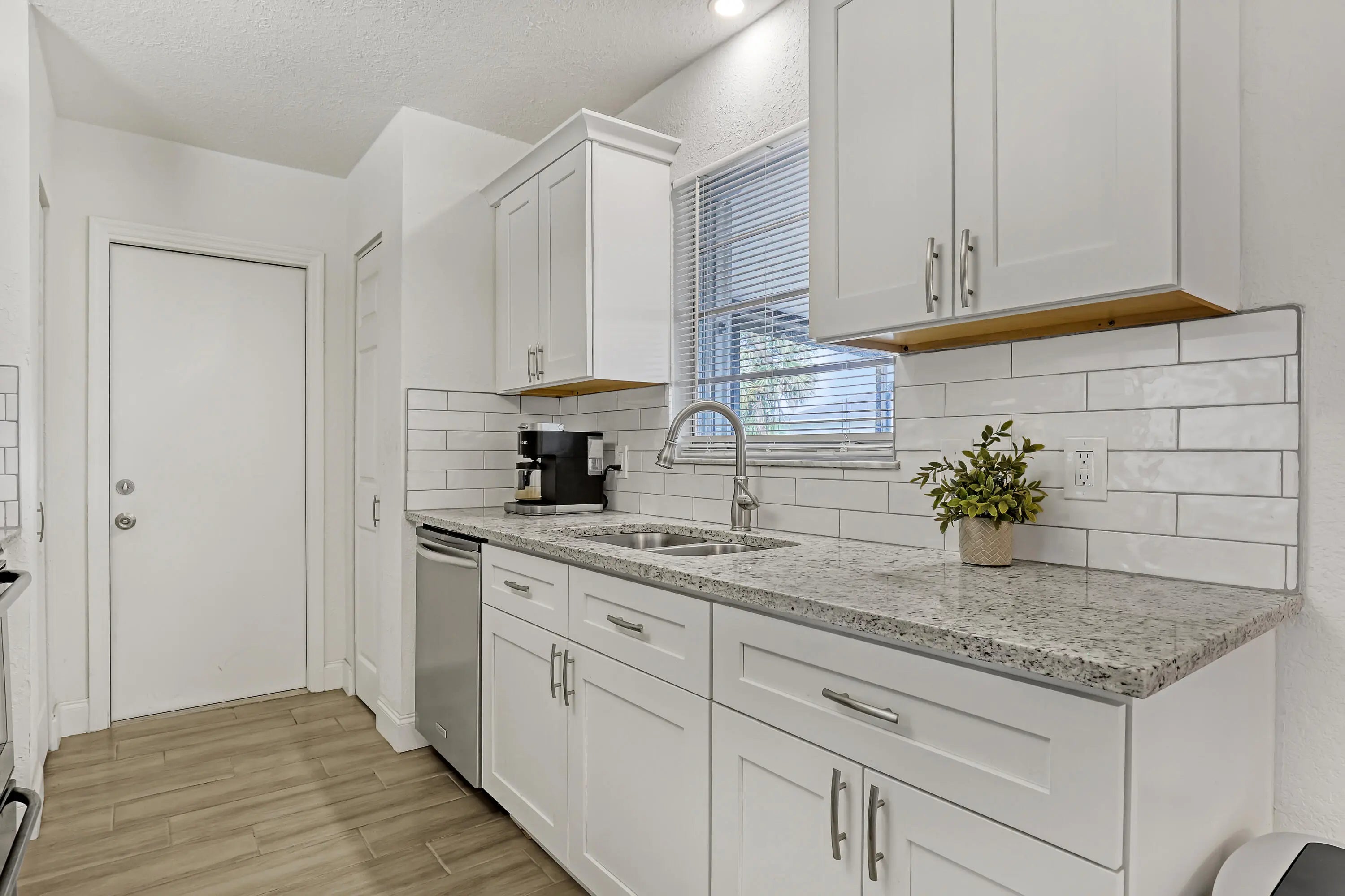 2 BD 2 BA Plus Florida Room & 2 Car Garage. New Roof (2024). Updates completed in 2023 include: A/C; Garage Door; Kitchen (granite countertops, cabinets, & SS appliances); Bathrooms (Complete); New Flooring throughout. Easy to Close Accordion Shutters. All sizes are approximate. **Draperies Are Not Included**
