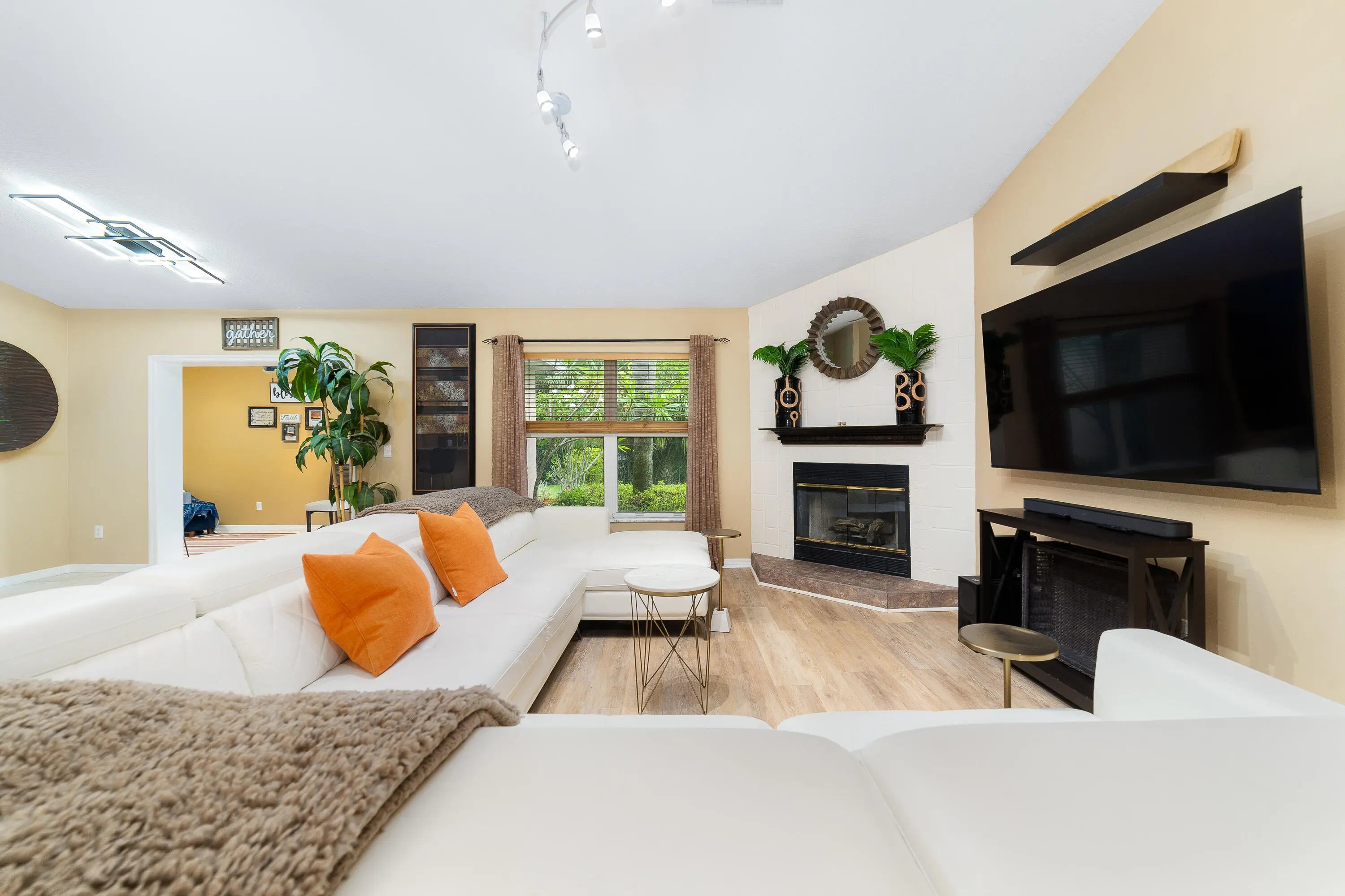 Welcome to this charming CBS home offering 3 bedrooms, 2 baths, a versatile bonus room, and a cozy den complete with a cozy fireplace—perfect for relaxing evenings. The kitchen features stainless steel appliances and convenient pull-out cabinet drawers. Enjoy peace of mind with recent updates: a new roof (2019), newer A/C (2018), and water heater (2017). Washer and dryer included. The fully fenced backyard is ideal for pets, playtime, or quiet outdoor moments. Tucked in a friendly, quiet neighborhood near Becker Rd, I-95, and shopping. A wonderful place to call home in the heart of Port St. Lucie. Turnkey/Fully furnished with full price offer. Bundled service pricing available for buyers. Connect with the listing agent for details.