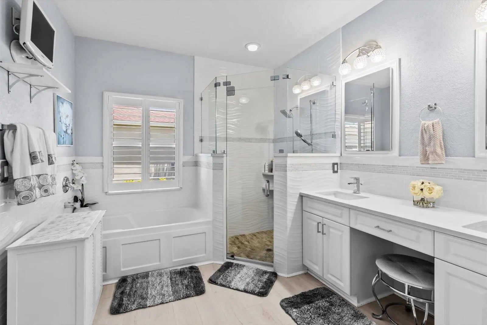 Cathedral Ceiling(s), High Ceilings, Vaulted Ceiling(s), Walk-In Closet(s), Bedroom Layout - Split, Roman Tub