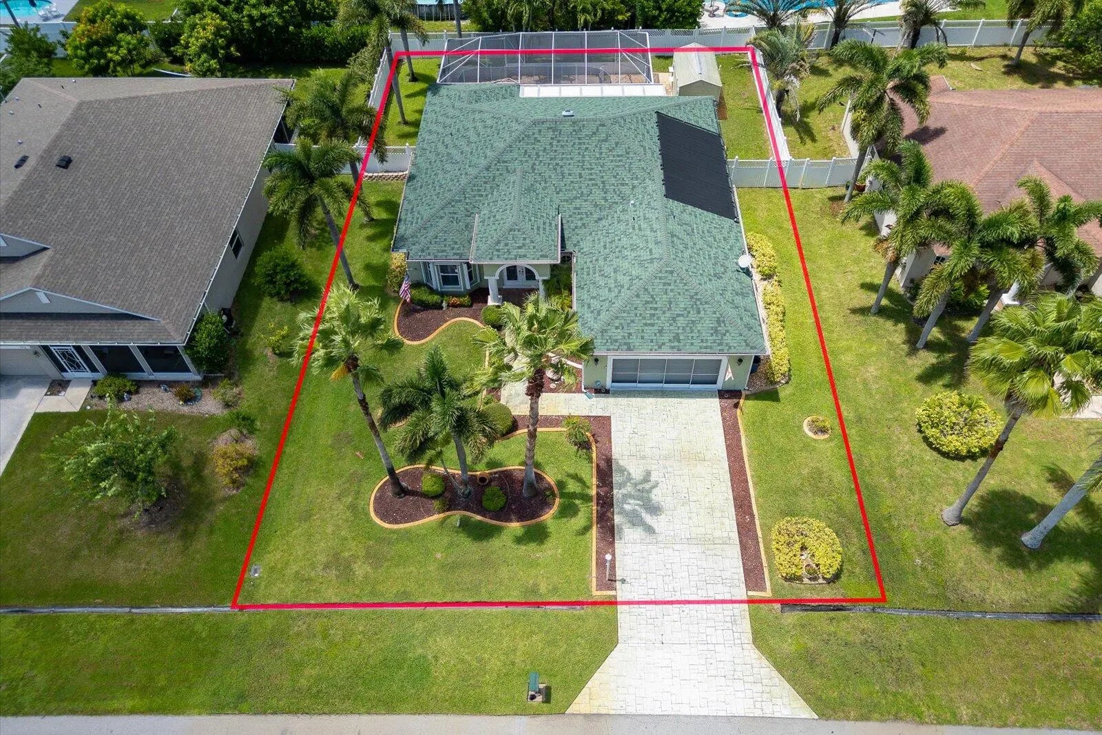 Welcome to this beautifully upgraded 3BR/2BA, 2,043 sq ft home with 2-car garage. Enjoy peace of mind with a new roof (2023), new A/C (2025), remodeled kitchen & baths with an oversized sink, newer deluxe waterproof vinyl flooring throughout, accordion storm shutters, and elegant plantation shutters inside. Step outside to your own tropical backyard oasis with a private pool (2025), pool cage, new pump & filter, new solar panels (2025), updated sprinklers (2023), exterior spotlights, and a storage shed. Home comes generator ready, along with camera & alarm systems, water softener (2023), instant hot water, and a mini A/C in the garage. An oversized attic provides extra storage. Centrally located near all the great Tradition restaurants & close to the Turnpike & I-95