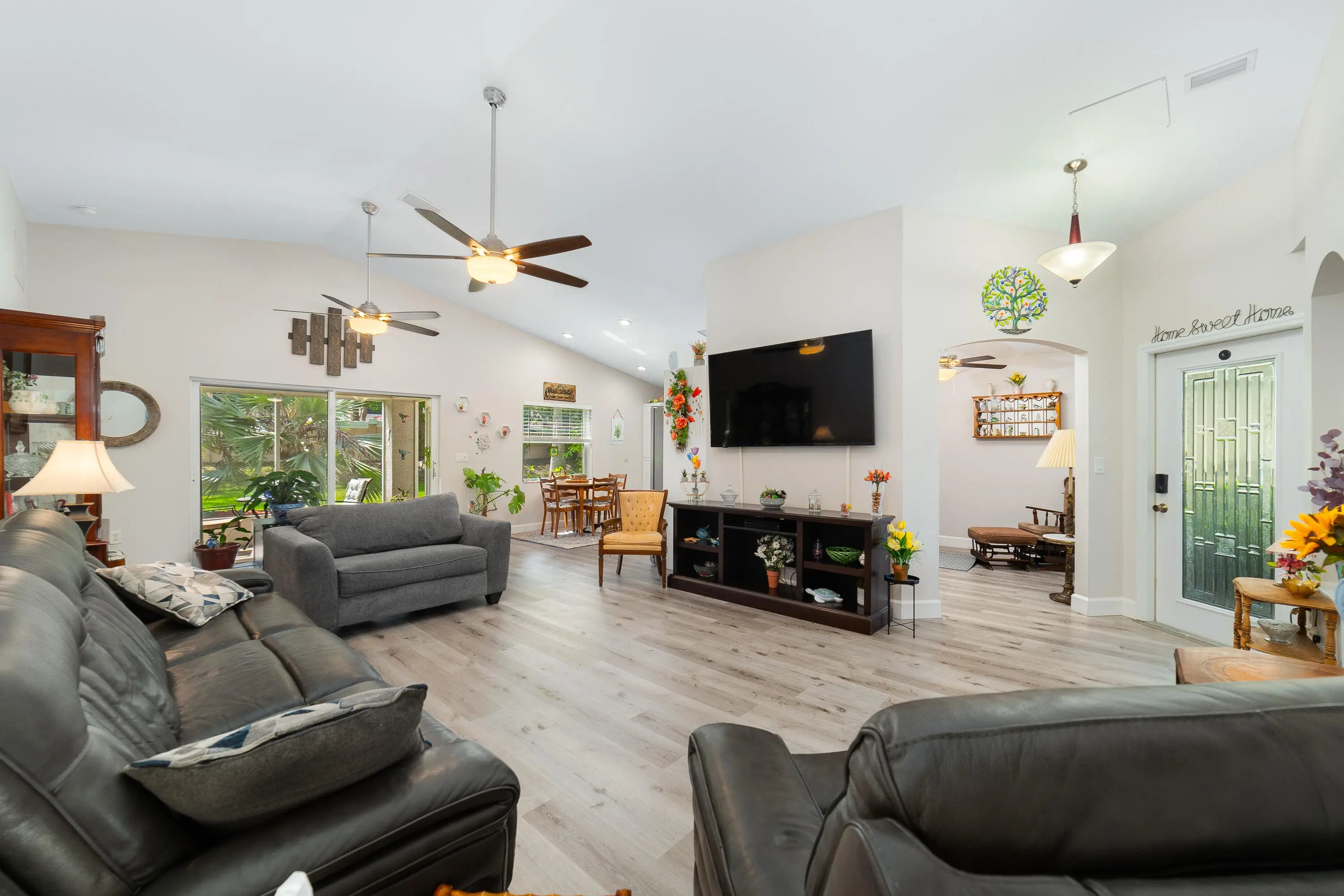 Welcome to this charming 3-bedroom, 2-bathroom, 2-car garage home located in a highly desirable gated community. This residence offers a warm and inviting atmosphere with a thoughtfully designed layout perfect for both everyday living and entertaining. Inside, you'll find tile flooring throughout the main areas, providing both durability and easy maintenance, while the bedrooms feature comfortable flooring for a cozy retreat. The spacious living areas flow seamlessly into the private back patio, ideal for relaxing or enjoying outdoor dining in a peaceful setting. Recent upgrades add exceptional value, including a brand-new roof in 2024 and a new AC system in 2023, giving you peace of mind and energy efficiency for years to come. The property is nicely landscaped with excellent curb appeal, offering a welcoming first impression the moment you arrive. The gated community is open to all ages and provides an added sense of security and comfort, making it a wonderful place to call home. With its prime location, recent updates, and inviting design, this home is a fantastic opportunity for anyone seeking comfort and convenience in a vibrant community.