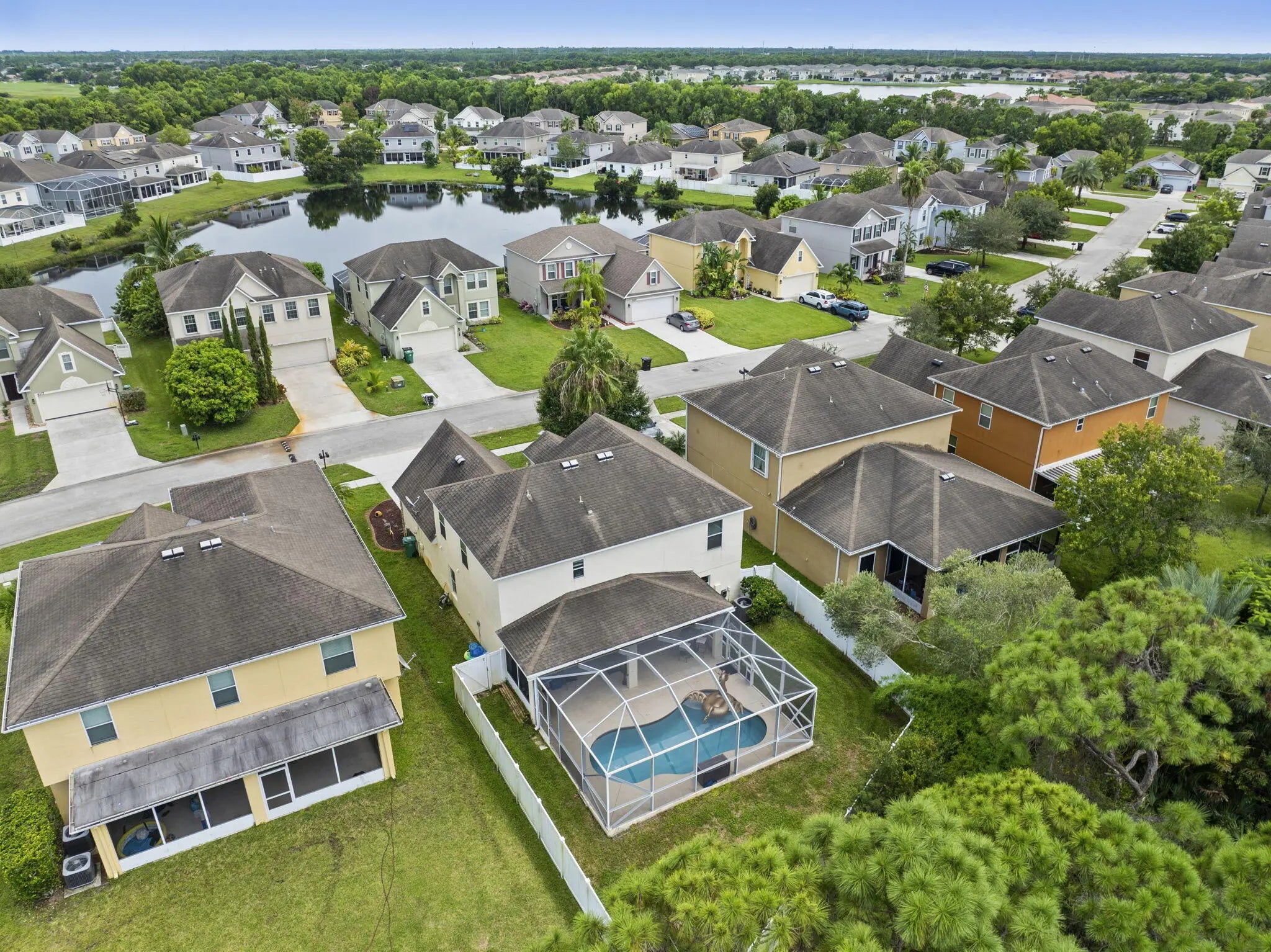 Welcome to a beautifully updated two-story home on a quiet cul-de-sac in the heart of St. Lucie West. Located in a family-friendly community with an affordable HOA, this home offers a warm neighborhood feel and great value. Featuring 3 bedrooms plus a den and 2.5 baths, the layout includes two living areas, a separate dining space, and a versatile den ideal for an office or playroom. The kitchen boasts granite countertops, stainless steel appliances, and ample cabinetry. Upstairs, the primary suite offers two walk-in closets, including a custom California-style closet, and a spa-like bath. Enjoy outdoor living with a screened saltwater pool, new heater and pump (2024), fully fenced yard, plus major updates including a new A/C, water heater, fresh paint, and dining.