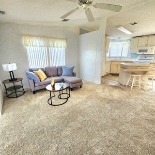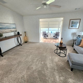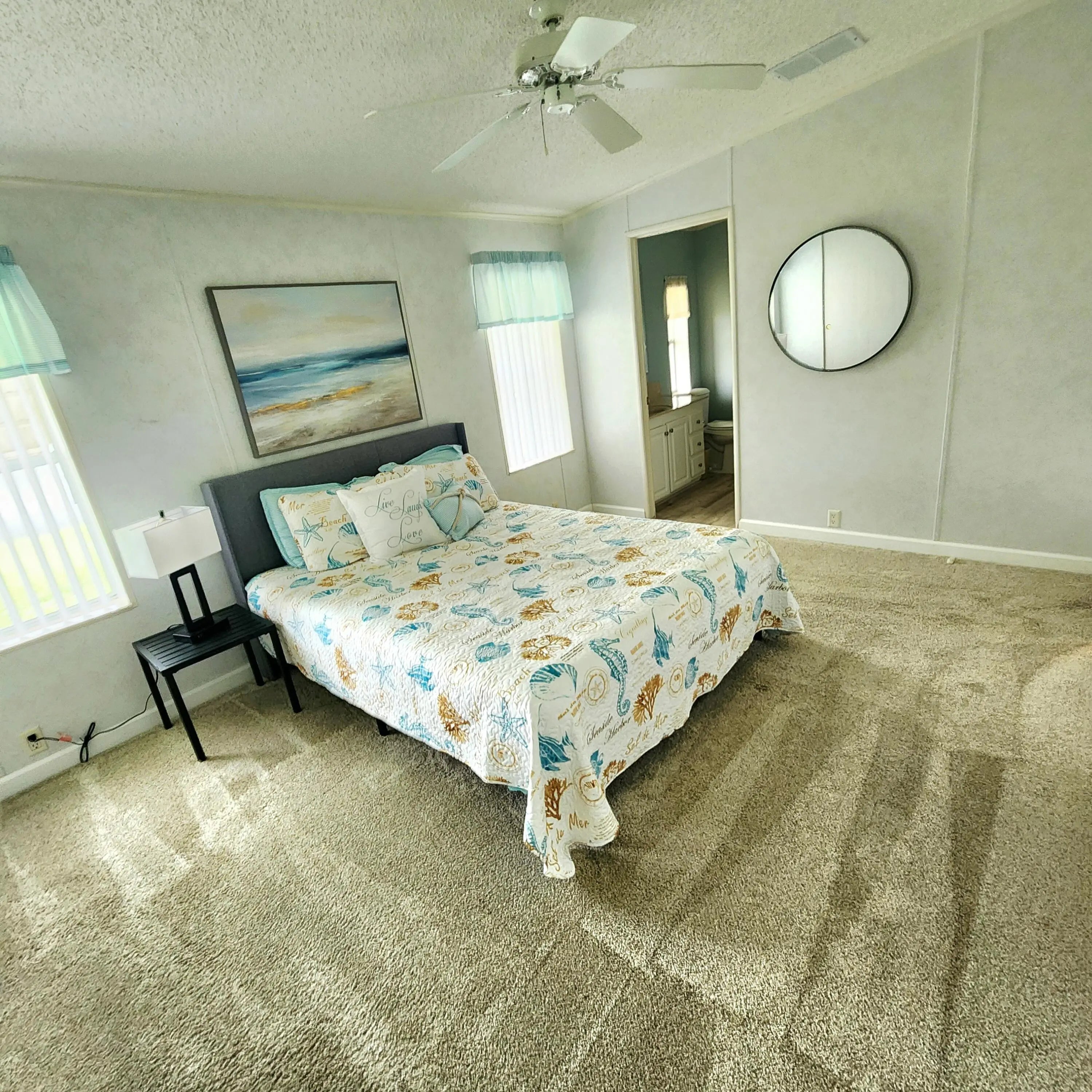 Natural beauty surrounds this 2bed/2bath home, nestled in the back of a CulDeSac on a large corner lot w/ panoramic lake views.Watch ducks & wildlife glide across water & colorful evening sunsets in large window/screened in Florida Rm. Expansive lot offers privacy & space, great for pets, gardening, grilling, entertaining, or soaking in peaceful surroundings. Recent updates include a 2020 roof, 2023 AC & 2022 carpet/flooring, WaterHtr 2020. PRIME LOCATION; near beach, grocery stores, post office, banks, hospitals, pharmacy & more! Lot rent of 1080.98 includes private golf course (no fees to play) heated pool, fitness, pickleball, tennis, shuffleboard, bocce, gym, library, card games, MahJong, Bible study, wood workshop, parades, dinners, dances, trips & more! Lawn cutting & trash included