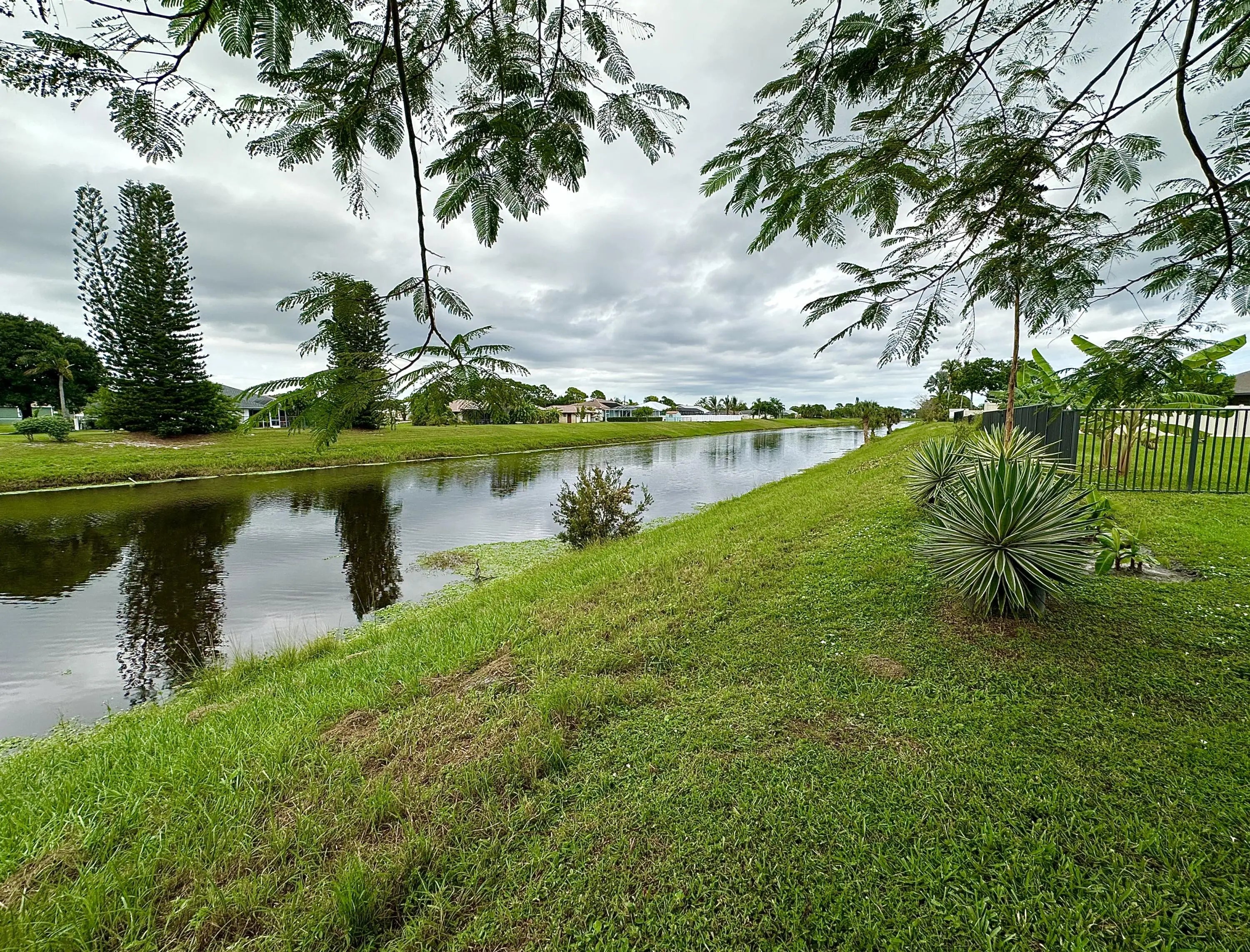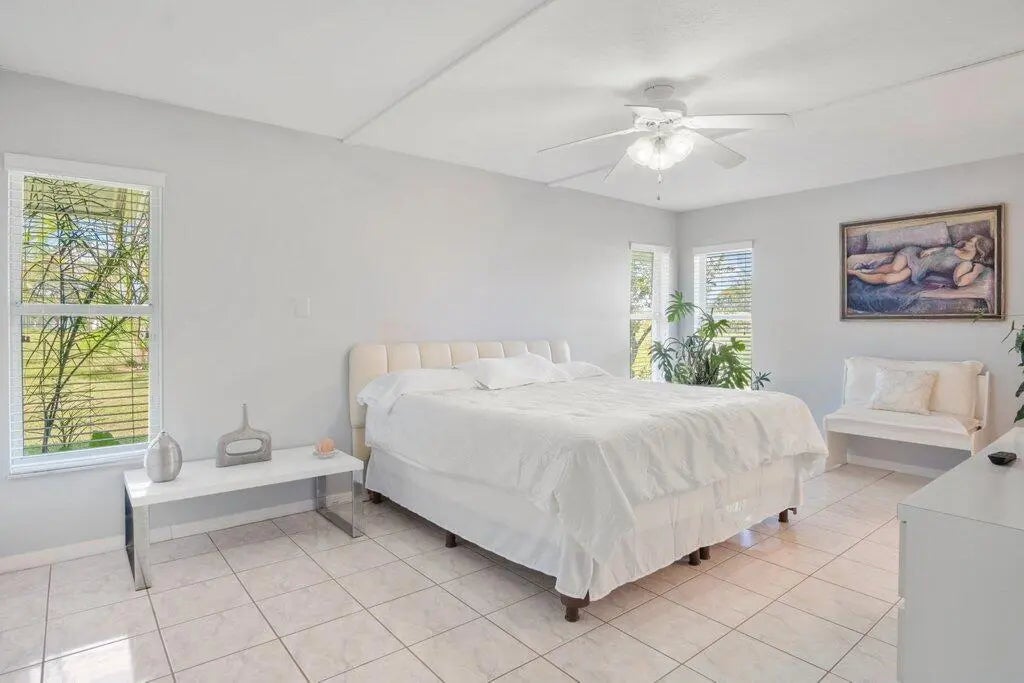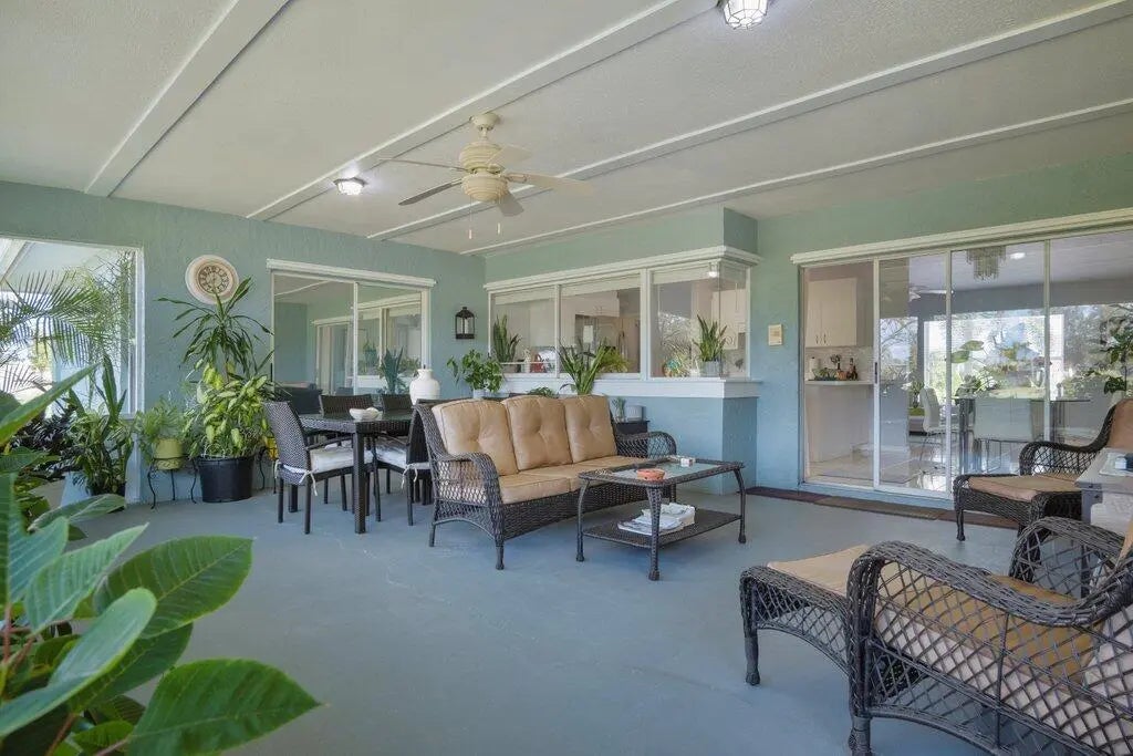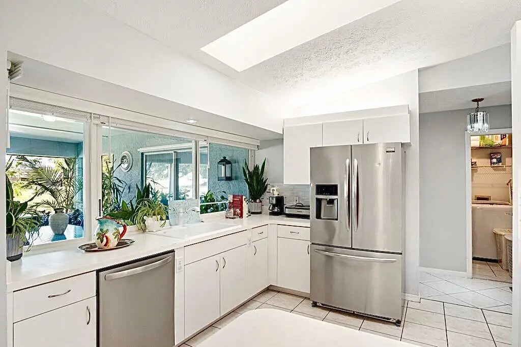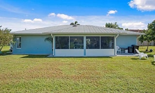 This beautiful home is in move-in condition. There are so many unique features. The home sits on one of the deepest lots in this neighborhood on a wide fresh water canal with a city green belt that provides excellent drainage. If you have a number of vehicles, maybe a motor home, boat on a trailer, or RV, there is so much extra parking and room for a extra turnaround pad. Entire home including the Florida Room has a Metal Roof. Covered and Screened front entry porch, Kitchen features all stainless appliances including a bottom freezer. The is also a skylight and tile backsplash. New 2025 Garage Door Opener, the mature professional landscaping is exceptional. Take the 45 plus HD Photo Tour and call for an appointment today... All new guest bathroom in 2020, with custom tile, a Spa Jet Tub and much more-see photos. Garage has one entire wall all with storage shelves...