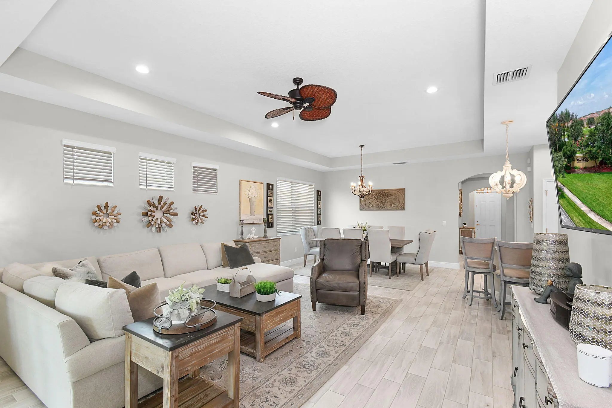 Elegantly stunning - professionally decorated! This pristine 3/2/2 PLUS DEN is a master class in how to appoint a villa to turn heads! Just move on in and enjoy! Upgraded kitchen, baths, flooring, lanai, and landscaping. Ideal for downsizing without regretting it. The den boasts an ideal space for reading, working, or just some ''me'' time. Upgraded flooring throughout - no carpeting! Impact windows and doors and you're situated at the end of the street with only one homeowner driving past you. Exquisitely upgraded landscaping welcomes you from the moment you arrive! Come enjoy the peaceful quiet of LakePark located in beautiful Tradition! Must see to fully appreciate this beautiful gem!