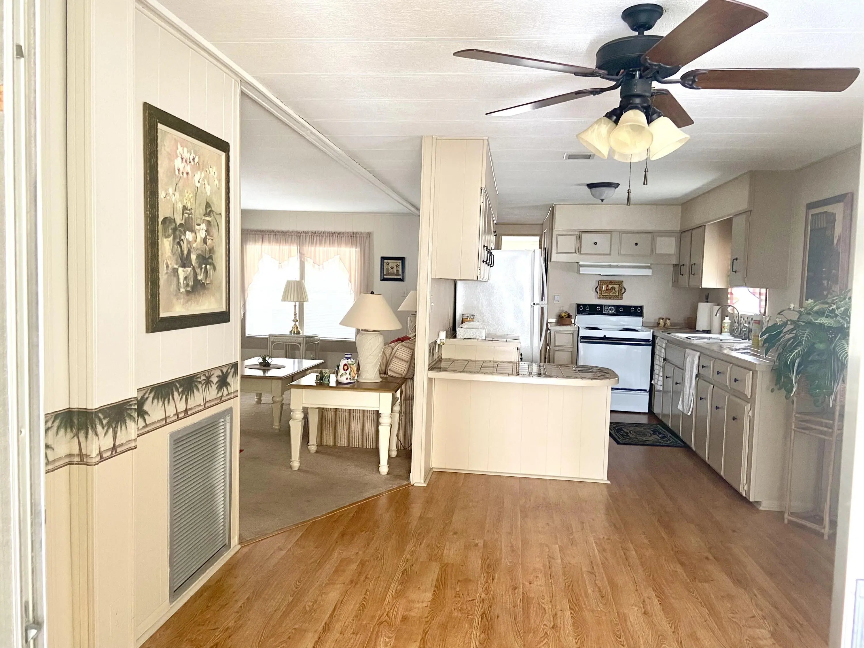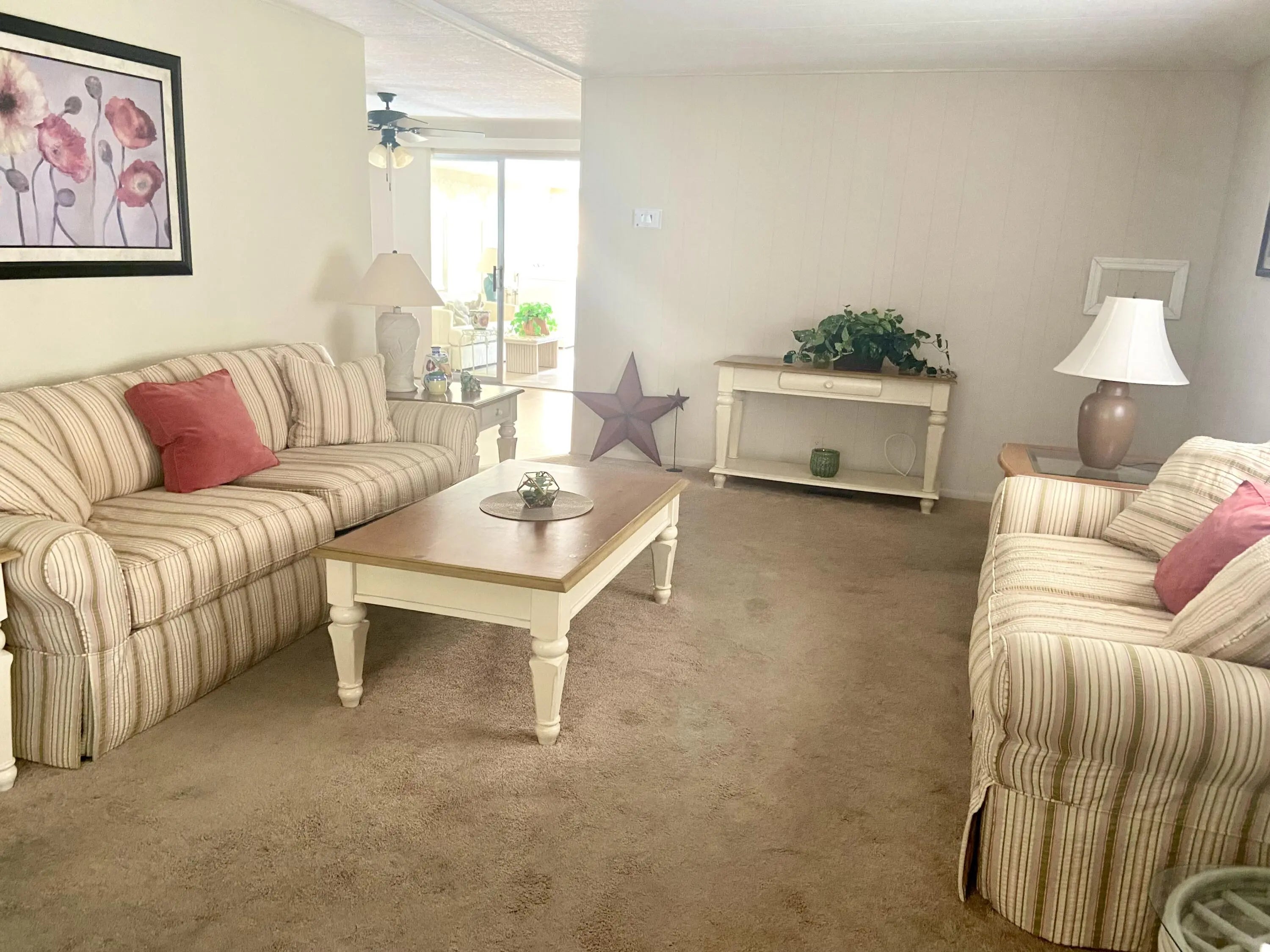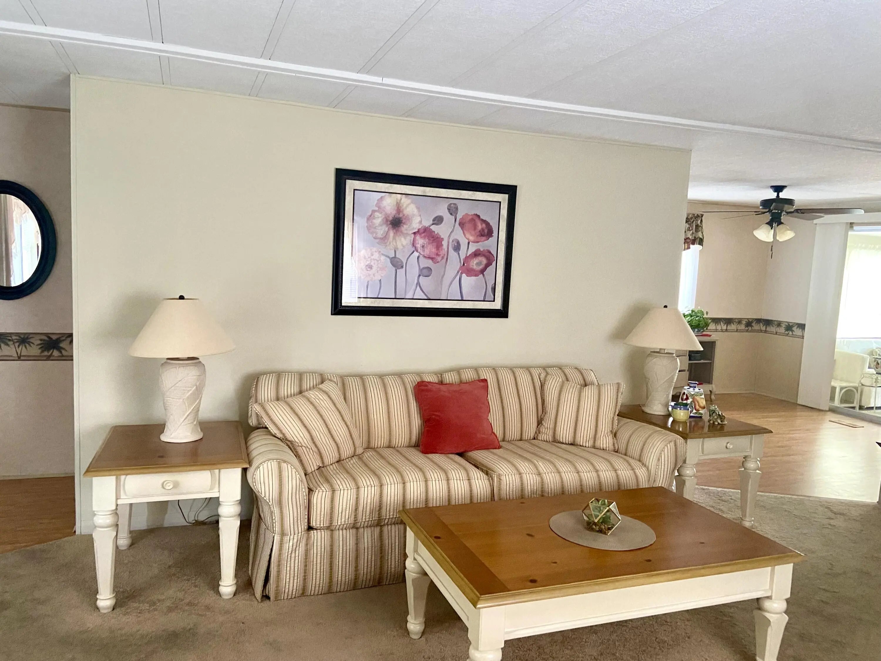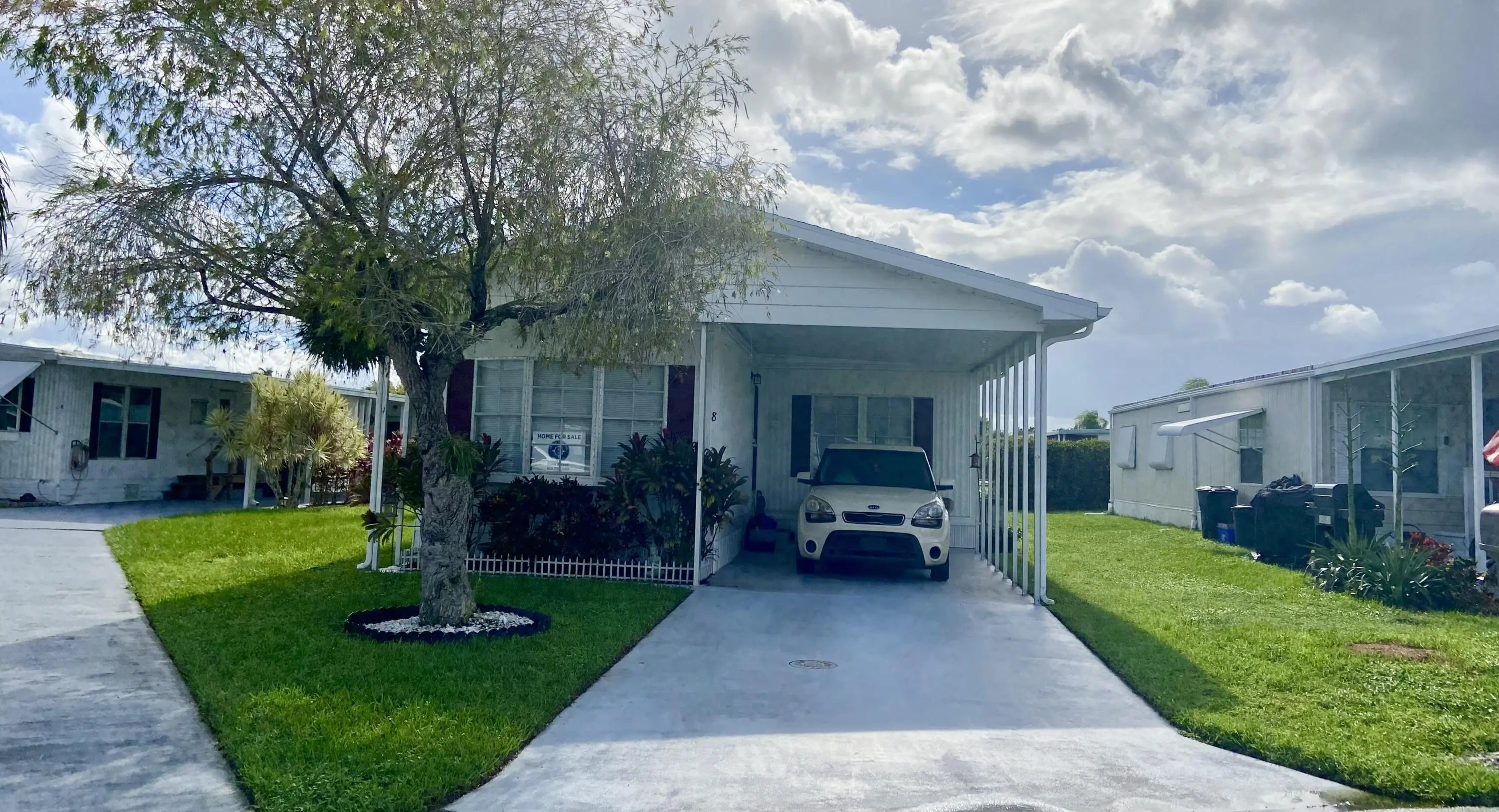Welcome to 8 Florencia Lane in Port Saint Lucie Fl. This 2 bed/2 bath home is located in a great 55+ community on leased land 833.06 a month, with some great amenities, lawn care, trash and recycle, clubhouse activities galore and use of the boat launch in the community, not to mention tennis, golf, and an array of events! Offered partially furnished AS_IS AS SHOWN with a lovely master suite, a den area, and indoor laundry. This split layout offers privacy for you and guests with a separate bath/tub combination. Central air replaced 2022, shingled roof 2013, circuit breaker and ceiling fan and fixtures newer and washer replaced 2022. OWNER NEGOTIABLE! LIVING AND BOTH BEDROOMS HAVE REMOVED CARPETS AND sealed flooring. Call ME today and make this your home sweet home or vacation get away!