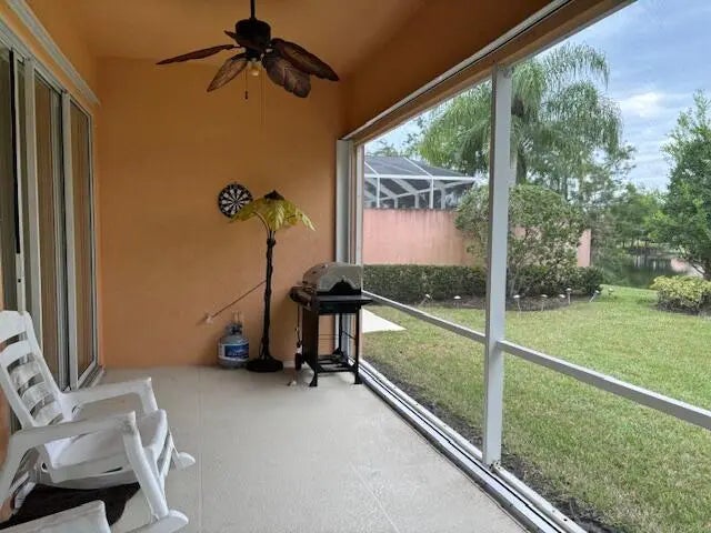 This beautiful Divosta-built Oakmont model features 3 bedrooms, 2 baths, and a 2-car garage, perfectly situated on a spacious waterfront corner lot with gorgeous lake views and added privacy with no home on the side or across the street. Inside, the foyer opens into the Florida room, kitchen, and dining area, creating an ideal layout for entertaining. With 2,000 square feet of living space and a split bedroom floor plan, the home provides both comfort and privacy, including a master suite with his-and-her separate baths. Step outside to the patio and enjoy the tropical landscaping and peaceful water views in a home that is move-in ready. The Lakes at Tradition offers resort-style living with a 24-hour manned guardhouse, a renovated clubhouse with multi-purpose rooms, catering kitchen, billiards, card tables, wi-fi, and large screen TVs, plus a 24-hour fitness center, outdoor barbecue area, two heated pools, tennis, pickleball, bocce, shuffleboard, cornhole, basketball, and a children's playground. Community volunteers also organize regular events. HOA benefits include security, cable, internet, alarm monitoring, and full lawn care, making this an almost maintenance-free lifestyle. Experience the best of Tradition living in this well-maintained Oakmont home with a prime location and outstanding amenities.