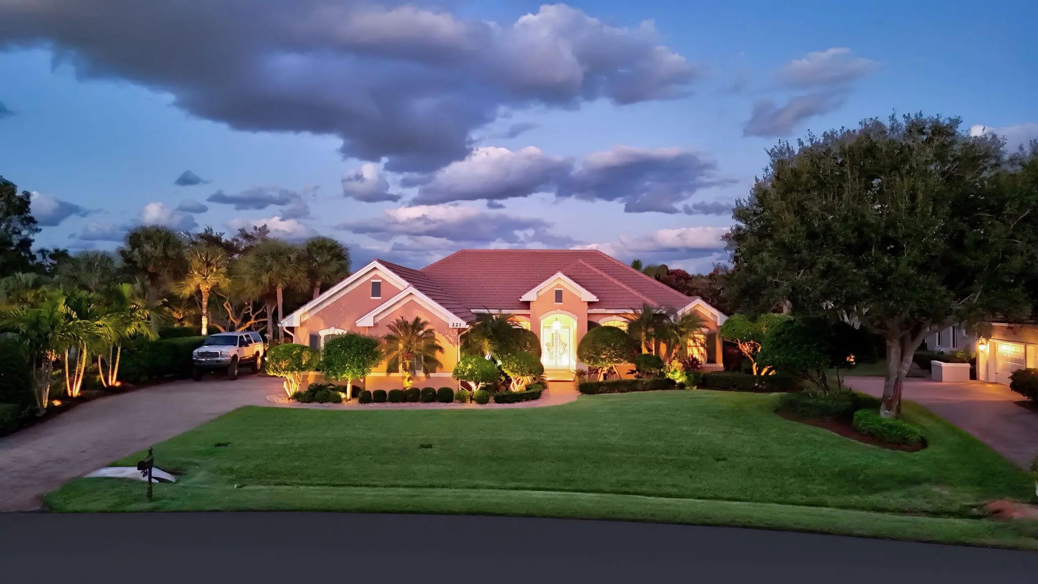 Amazing community where every home is custom-built on large, spacious lots. This 5BR, 3BA plus den Arthur Rutenberg home is surrounded by meticulously maintained landscape and is perfectly situated with beautiful preserve views, made more visible with the new pool enclosure and picture-frame screening. Newest upgrades include tile roof, stained-glass front doors, Ox-floor in garage and on pool deck, beautiful pool/spa surface, awning, outdoor bar with aged copper countertops, LVP flooring, remote shades, appliances, AC, and generator. Other features include coffered ceilings, built-in desk, granite countertops, complete hurricane protection, expanded paver driveway, and 2-car garage plus single garage bay enclosed with AC - perfect home gym or workshop. Great, quiet location.