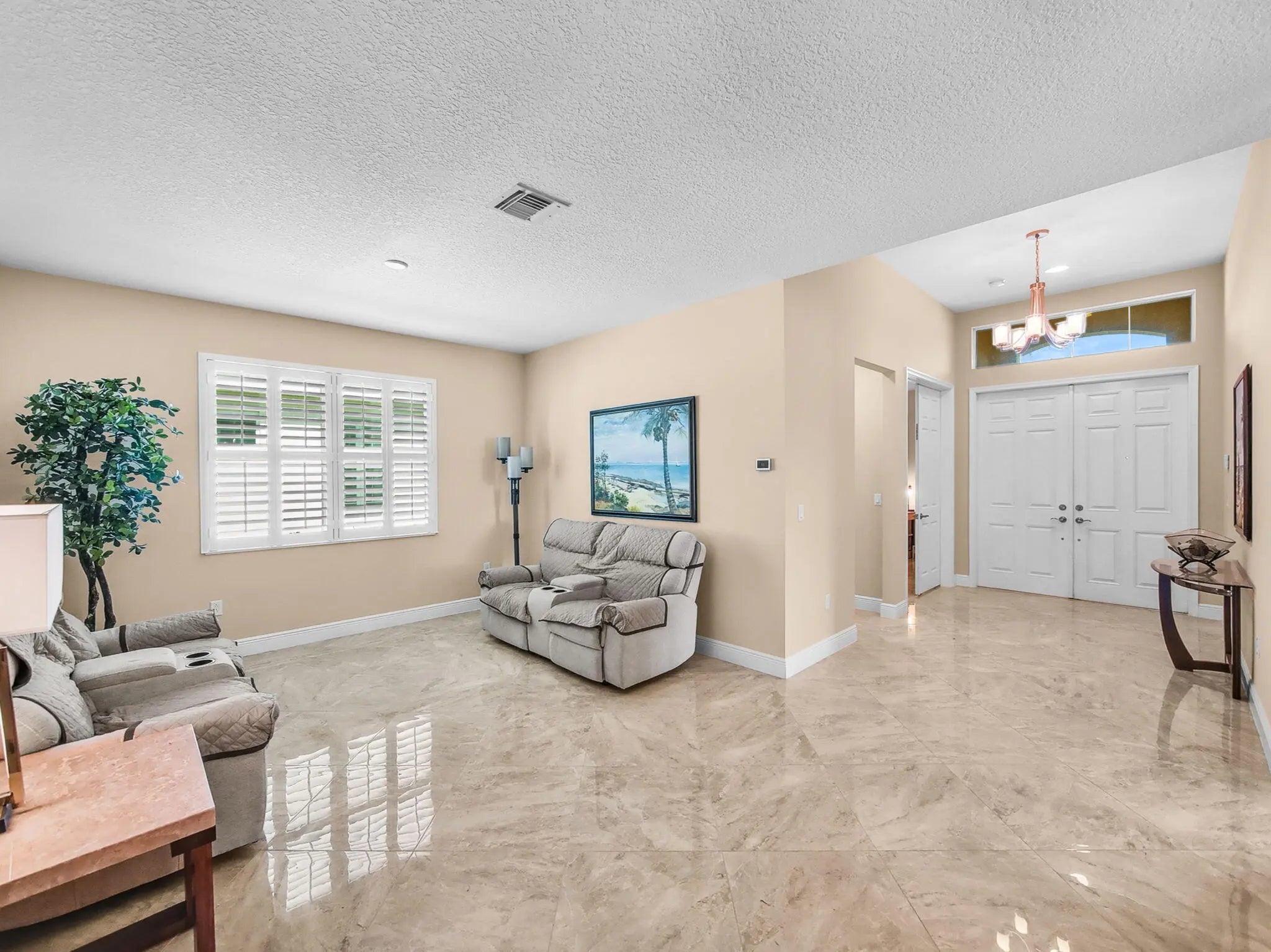 Welcome to this exquisite ''Isle'' model home, located in the highly desirable LakePark at Tradition community. Thoughtfully designed, this single-family residence features 2 spacious bedrooms, a versatile den, and 2.5 beautifully appointed bathrooms—perfectly balancing comfort and modern convenience. Step inside to discover two expansive living areas, offering the ideal blend of space for entertaining and relaxation. A formal dining room further enhances the home's elegance, creating a refined setting for family dinners and special occasions. Every detail of the interior reflects sophistication and style. From gleaming quartz countertops to premium flooring, the finishes throughout showcase the finest in modern design. This home is also equipped with complete impact windows, ensuring safety, energy efficiency, and peace of mind year-round. Plantation shutters provide a timeless touch, while allowing you to tailor light and privacy to your preference. Situated in the highly desirable LakePark at Tradition, this home offers an exceptional living experience, combining luxury, comfort, and a vibrant community. The LakePark HOA Fee Includes: cable TV, high-speed internet, alarm monitoring, landline phone lawn care, security, and resort-style amenities. Just minutes from everything Tradition has to offer including great dining, shopping, and recreation. Just minutes form The Cleveland Clinic and I95 for easy commuting!
