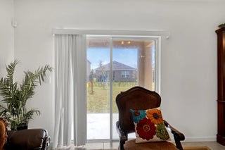 This impressive all-concrete block house showcases a two-story design that is both functional and inviting. With five spacious bedrooms and three full bathrooms, it provides ample living space for families or guests. The convenience of having one bedroom and a full bathroom on the main level is a notable feature, making it accessible for those who prefer not to navigate stairs. The open concept layout enhances the flow of the home, with a well-appointed kitchen island that serves as a central gathering point. Abundant natural light streams through large windows, creating a warm and welcoming atmosphere throughout the living areas. Step outside to the covered patio, perfect for grilling and enjoying outdoor meals.