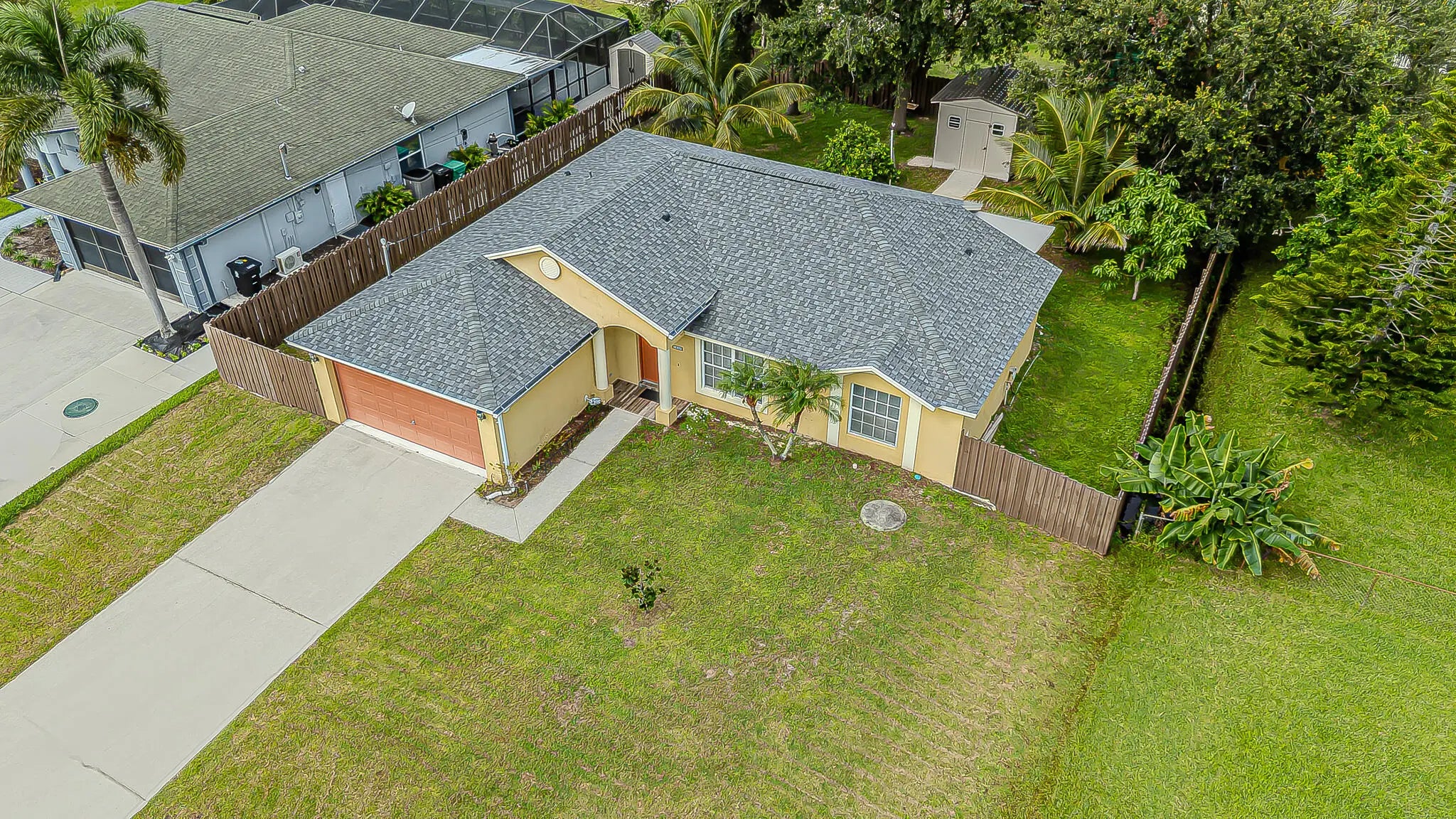 A home with no HOA—look no further! Prime location with a brand-new roof backed by a 5-year transferable warranty. This charming 3-bedroom, 2-bath home features an open plan layout and a spacious living area, plus an enclosed terrace with impact windows, perfect for outdoor entertainment with family and friends. Enjoy peaceful moments in this versatile space. The lush garden offers a variety of fruit trees and a storage shed for all your tools and equipment. A new fence adds privacy and security. Ideal starter home or relocation to beautiful Port Saint Lucie. Don't miss this incredible opportunity to own your piece of paradise!