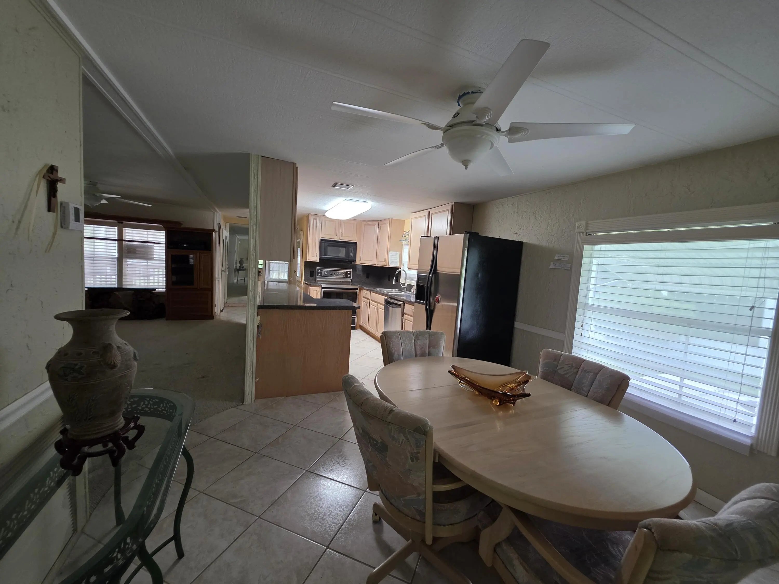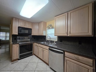 Welcome to Spanish Lakes Riverfront! This beautifully maintained 2-bedroom, 2-bath home offers around 1,300 sqft. of comfortable living space, featuring an updated kitchen with modern finishes, and plenty of storage. Relax in the fully enclosed, under-air Florida Room—perfect for a home office, cozy den, or potential third bedroom! The spacious primary suite offers natural light, with flooring ready for your personal touch. Set on a private lot backing up to a wooded forest, this home provides peace, privacy, and a serene backdrop. Located in a vibrant 55+ community with resort-style amenities and a monthly lot lease of $898.77, this home delivers comfort, flexibility, and true Florida lifestyle. Schedule your showing today!