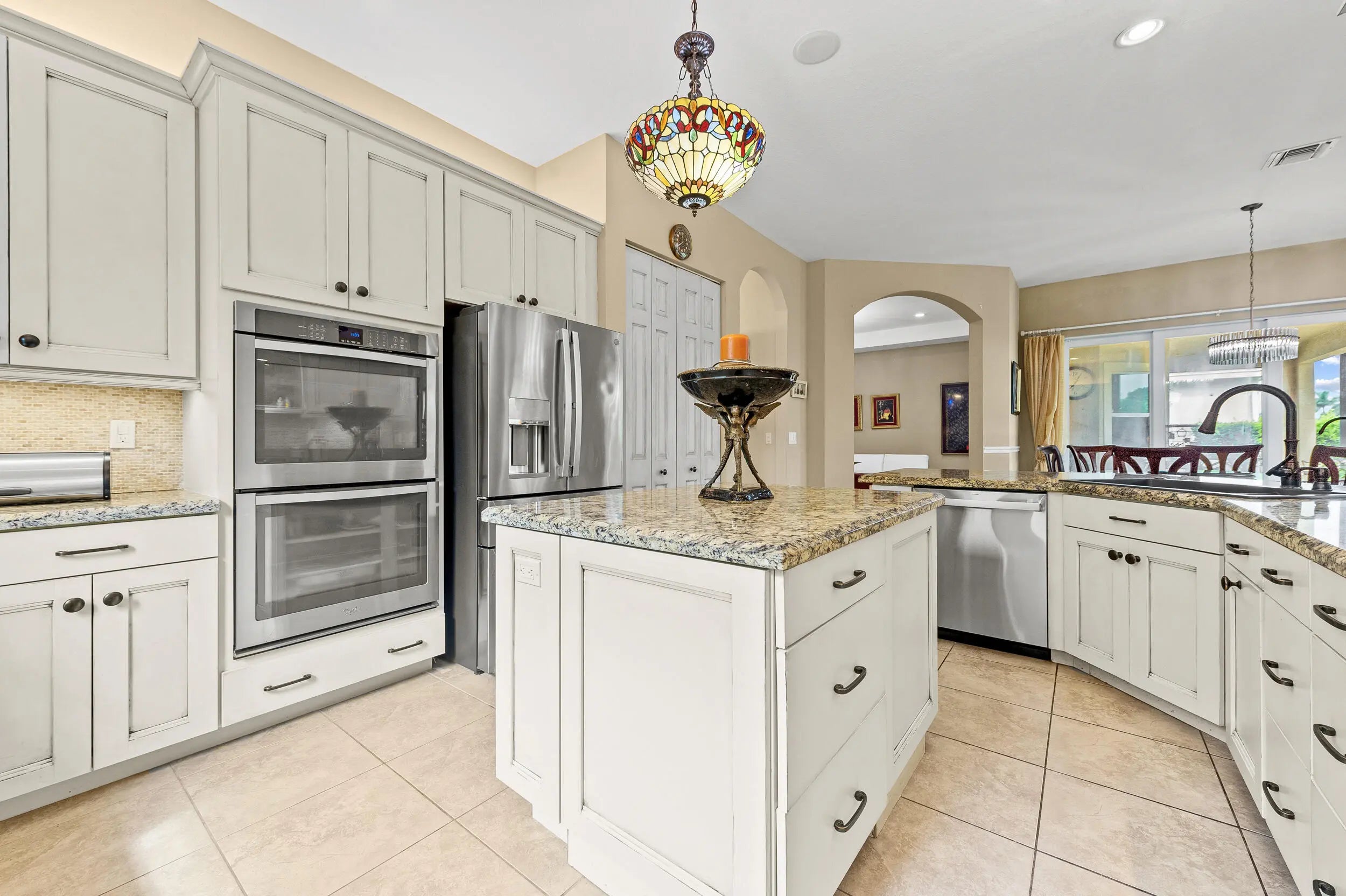 Majestically situated in The Estates section of the highly sought-after Tradition Community, this exquisite 4-bedroom, 3-bath Mediterranean-style home offers 3,888 sq ft of luxurious living space, designed to impress at every turn. All the extras that are not offered in new construction at this price You will be captivated by volume ceilings, elegant architectural details, and a flowing layout that blends comfort and sophistication. The home features a remodeled gourmet chef's dream kitchen with premium appliances, custom cabinetry, stone countertops, and an expansive island — perfect for entertaining and culinary adventures. The opulent primary suite is a serene retreat complete with a spa-inspired ensuite bath and two generous walk-in closets. Plenty of room for a custom pool.