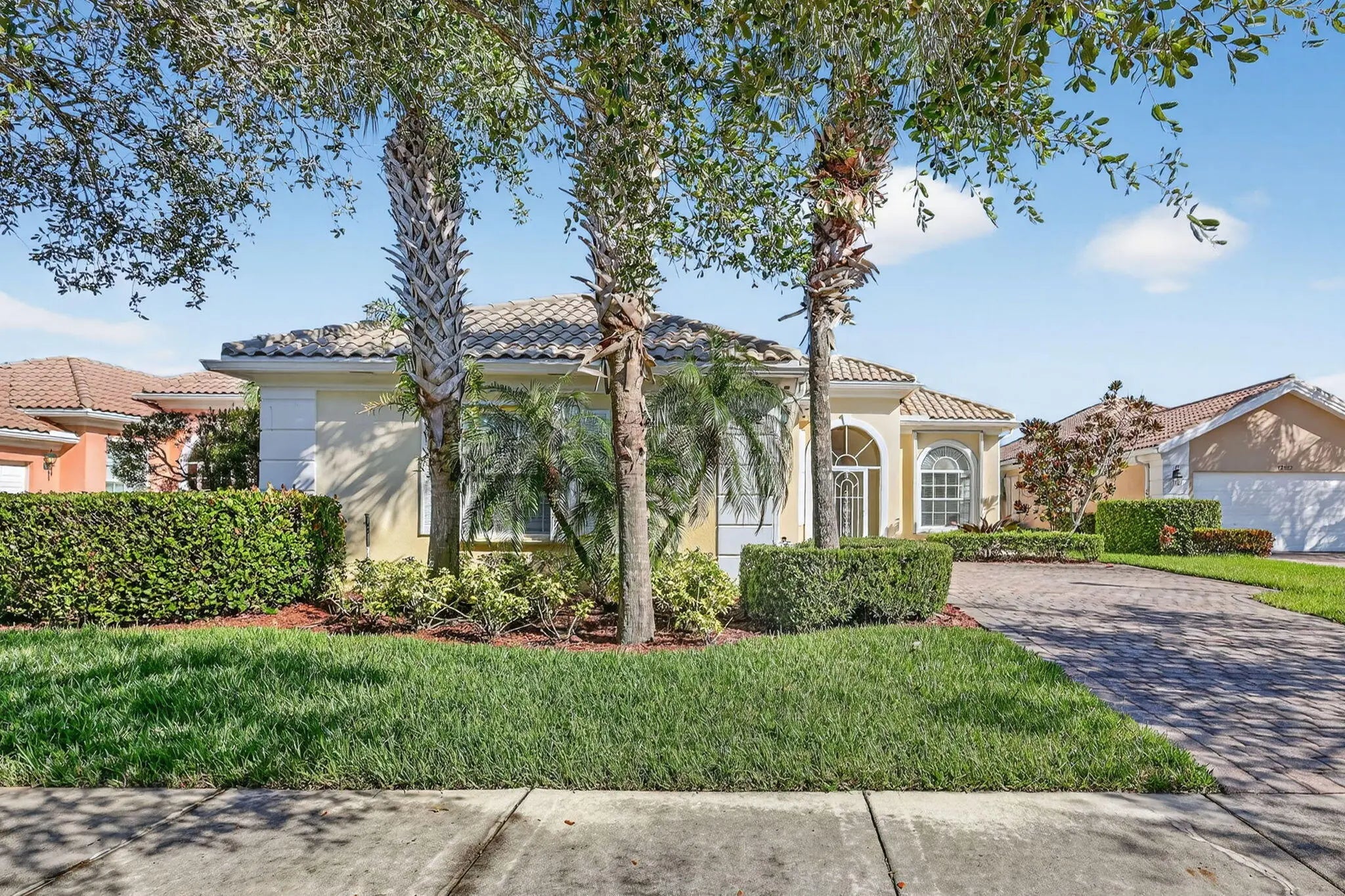 The Very Popular Oakmont Model by DiVosta Homes, with 2,000 Sq. Ft. of Living Area, on a Cul-de-Sac Lot, a Backyard with extensive Landscaping and privacy. Decorative brick paver executive designed driveway, allowing for additional auto space. Seamless gutter system, Great Room, (3) Bedrooms, Spacious Den, Master Bedroom has closets with mirrored sliding doors, (3) Baths. Living center Kitchen with Corian countertops, Spacious pantry. Paddle fans, High Volume Community Ceilings. HOA fees include basic cable, high-speed internet, monitored security alarm system, lawn maintenance. Community amenities: (24) hour manned gate. 2 geo-thermal Heated Pools, Tennis and Exercise Facilities.