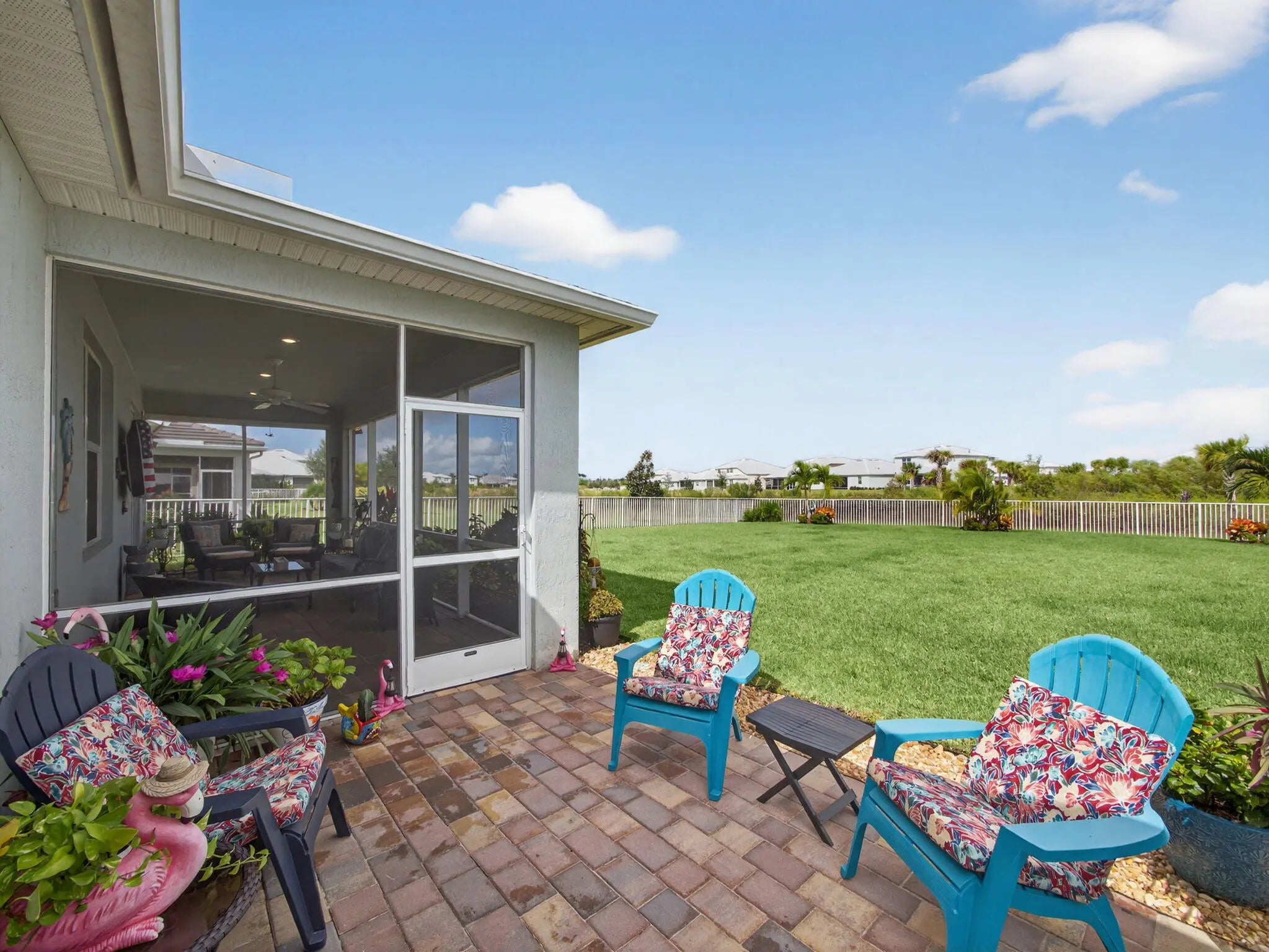 Like new and meticulously maintained, this 2020-built home blends comfort, efficiency, and modern design. Enjoy ultra-low energy costs — with an FPL bill averaging just $49/month no matter how much you run everything. Inside, you'll find an open-concept split floor plan with ceramic tile flooring, quartz countertops, and ARISTOKRAFT cabinetry featuring pull-out shelves, a lazy Susan, and dedicated recycling drawers. The custom Halo H2O Ultima whole-house water system provides clean, filtered drinking water right from the tap, complemented by a new maintenance-free water heater. The spacious den offers flexibility for a home office or guest space. The primary suite features custom closet shelving. the home is filled with natural light through impact windows and doors. Step outside to your oversized, covered, screened-in lanai with extended pavers and a mounted outdoor TV (included) perfect for entertaining. The fully fenced quarter-acre lot backs to a private preserve, offering plenty of room for a pool or play area. Additional highlights include a complete gutter system, durable ox-coated garage floor, and extra matching tiles for peace of mind. The HOA fee at Heron Preserve includes community pool, cable, high-speed internet, alarm system monitoring and landline phone