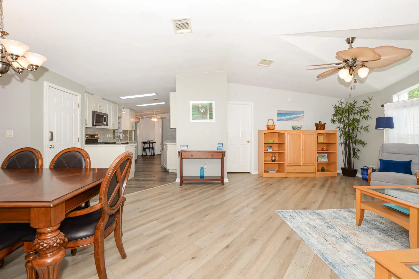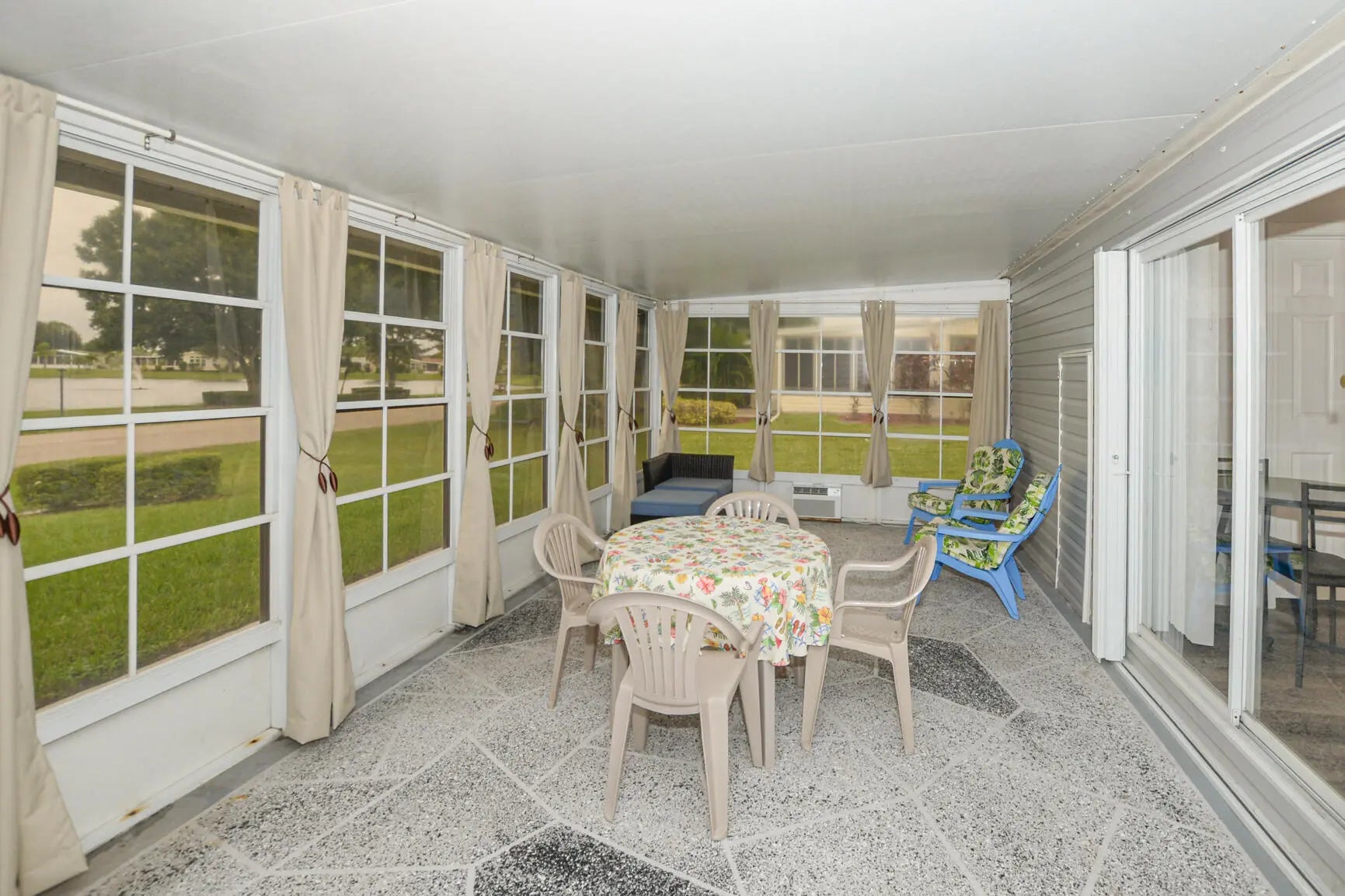 PRICE REDUCED! MOVE-IN READY! Savanna Club is a 55+ community that is close to the beaches, shopping, dining and entertainment. Tons of on-site amenities: golf course, 3 clubhouses, 3 pools, gyms, pickle ball, organized activities and much more. Fully furnished, 3 bedrooms, 2 baths + office/den, oversized shed, all on a corner lot with views of the lake. Remodeled large kitchen, new SS appliances, newer flooring, new accordion shutters, newer roof, AC & HWH plus a 4-season Florida room. Boat & RV storage available onsite for a nominal fee. Don't miss this one!!!