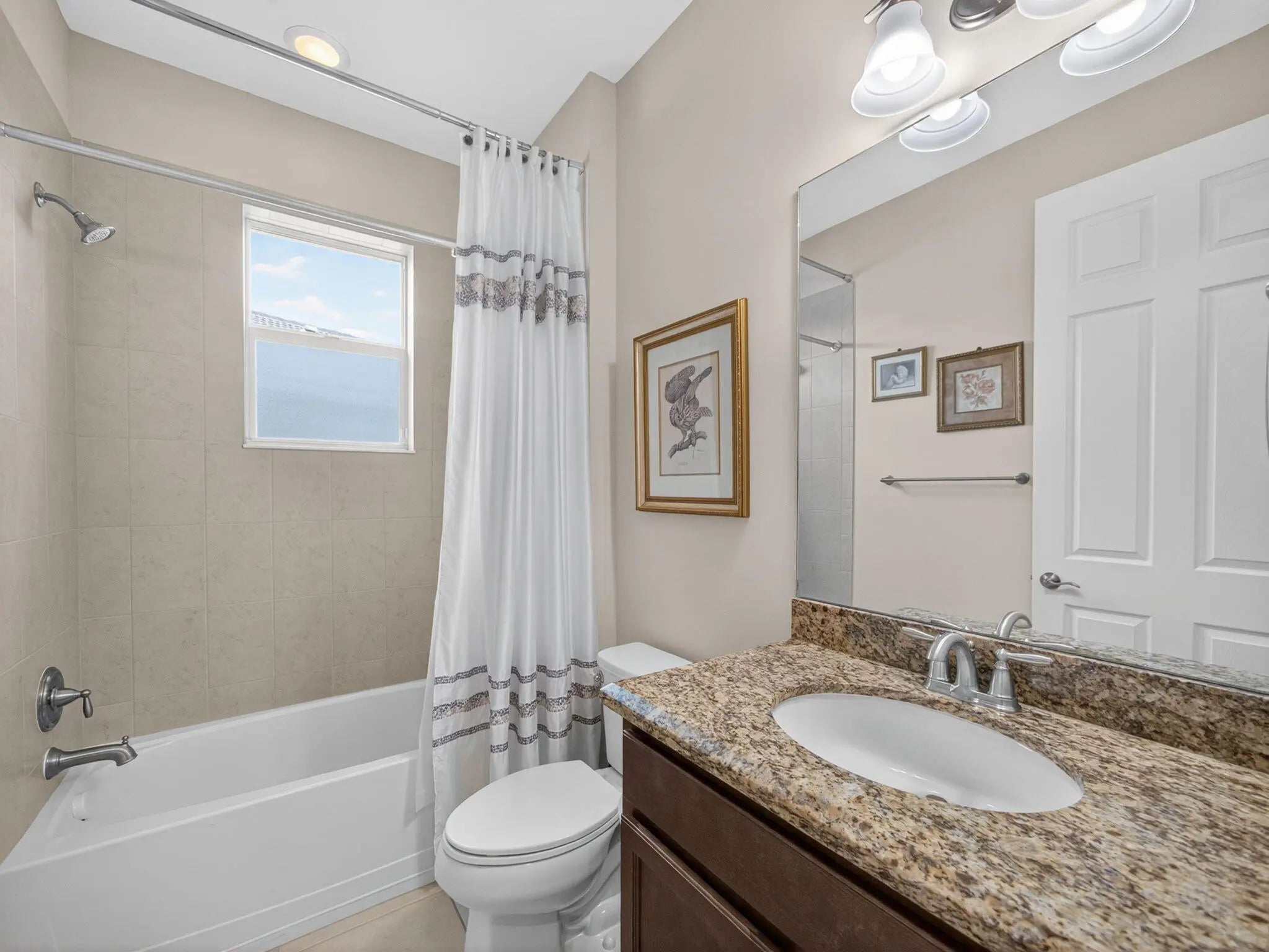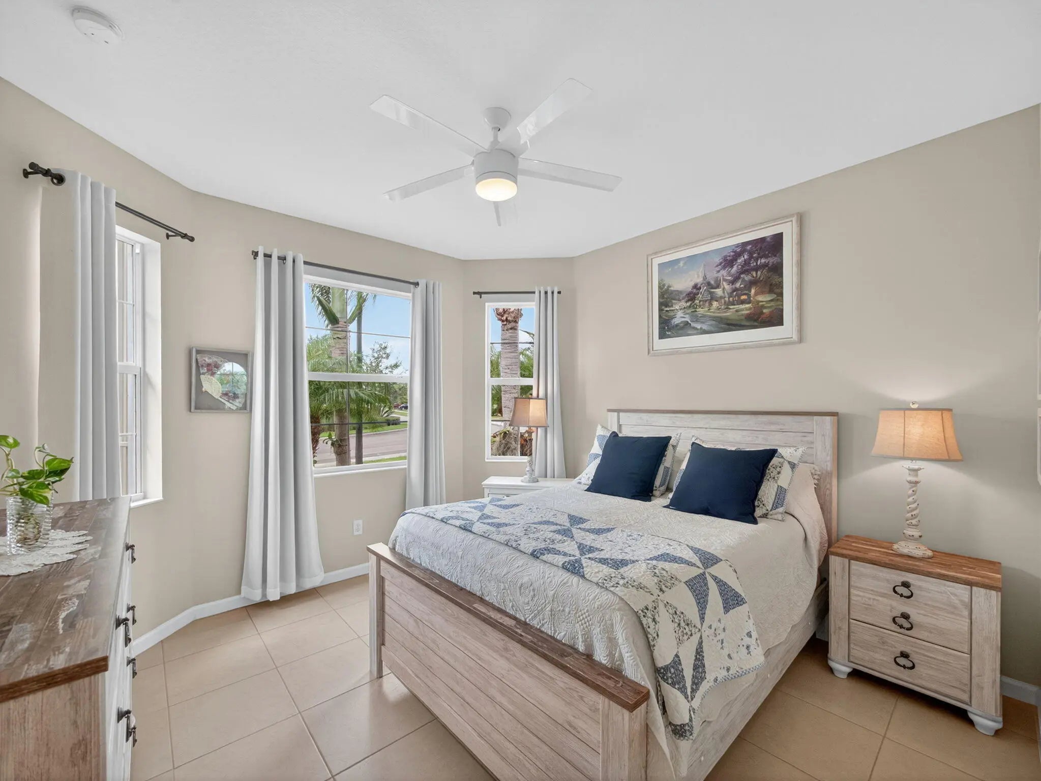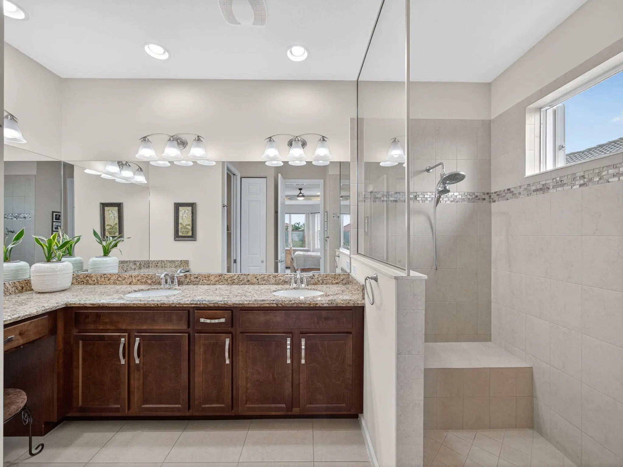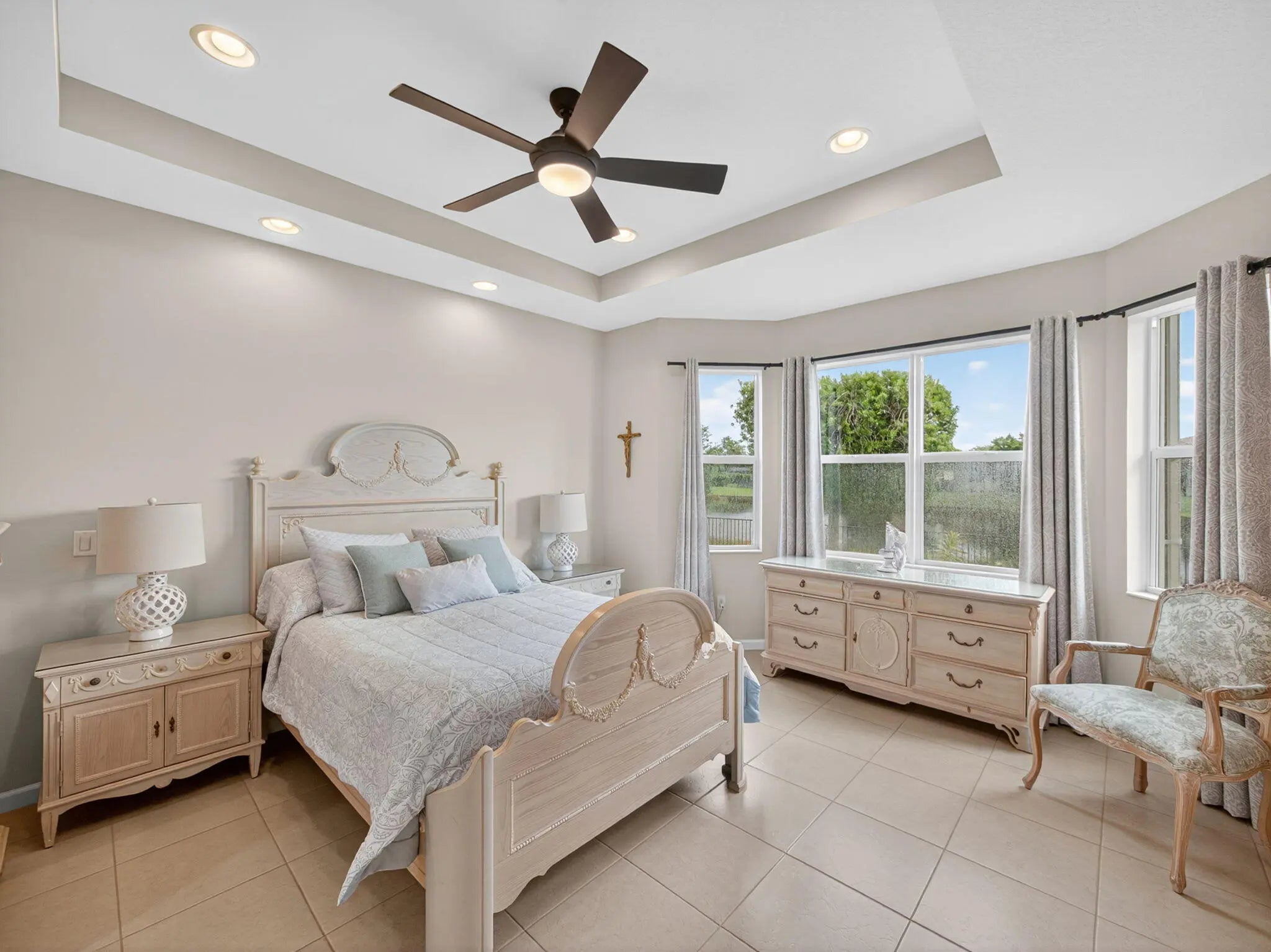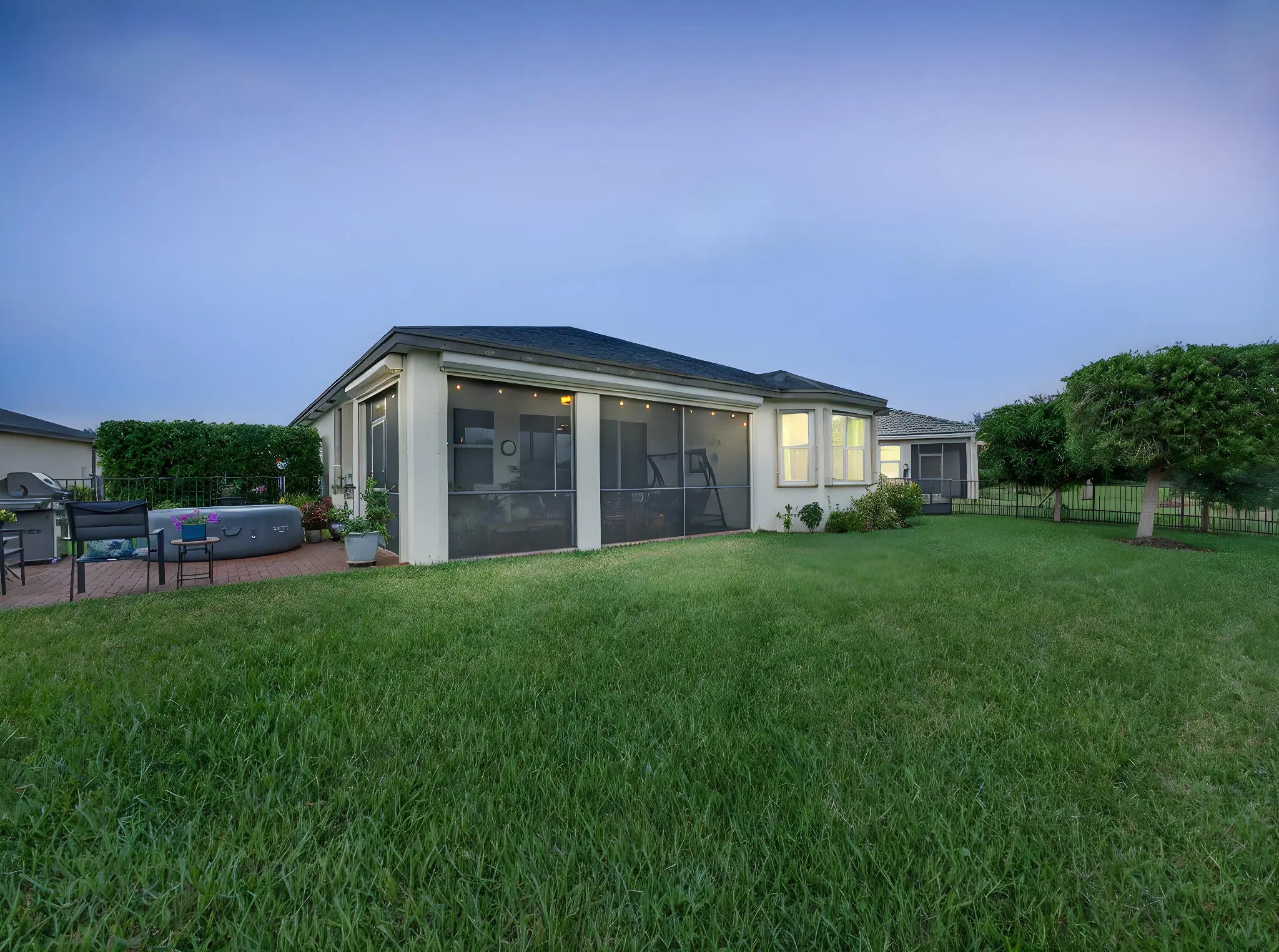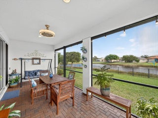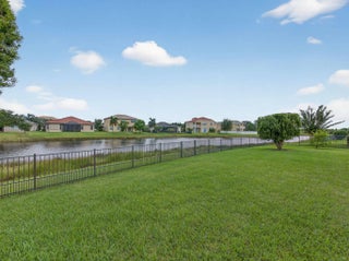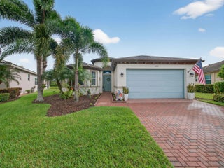 Welcome to this beautifully maintained Gulfstream model located in the desirable 55+ community of Lake Park at Tradition. This 2 bedroom + den, 2 bathroom home sits on one of the most preferable waterfront pie-shaped lots, offering both privacy and peaceful views. The fully fenced yard provides plenty of space for pets, play, or adding your dream pool. Enjoy the oversized, covered, and screened-in patio with extended pavers—perfect for relaxing or entertaining. The impact-rated hurricane screen enclosure allows for daily use, providing shade and rain protection. Additional features include a newly installed A/C (Oct 2025), impact-rated garage door, and accordion hurricane shutters throughout for ultimate peace of mind. Inside, the open-concept layout and split floor plan create a bright, airy feel with abundant natural light. The home also showcases mature fruit trees including mango, olive, Myers lemon, and sugar apple. Residents of Lake Park enjoy an all-inclusive HOA covering lawn care, mulching, full irrigation system use and maintenance, house phone, alarm system, high-speed internet, and cable TVmaking this the perfect low-maintenance Florida lifestyle!