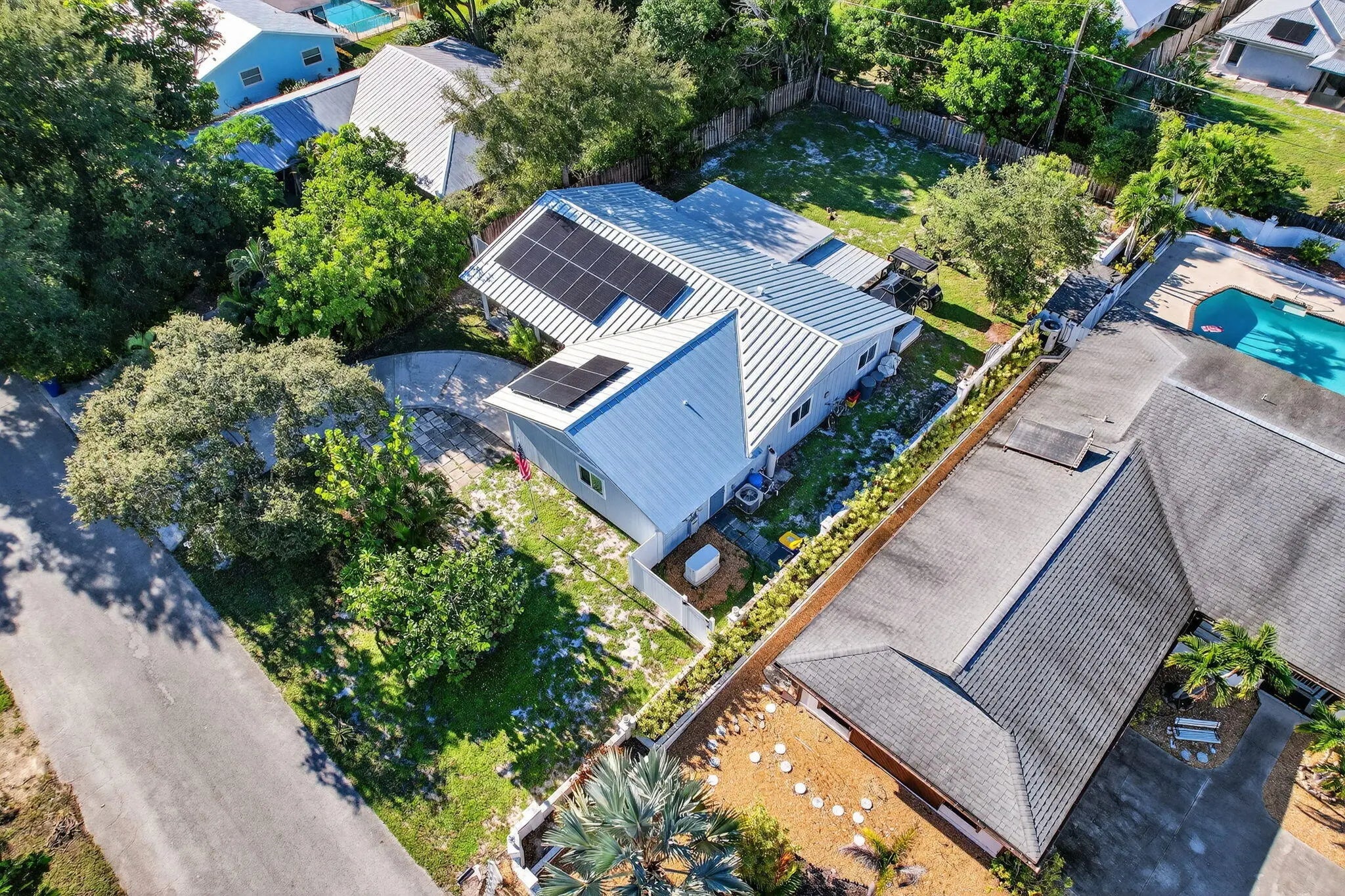 Beautiful 3 bedrooms / 3 full bathrooms w/1 car garage on this 1/4 acre fully fenced in yard featuring BRAND NEW 2025 Metal Roof, 2022 Hurricane Impact Windows & Doors, 2022 Generac Whole House Generator & Propane Tank, 2022 Solar Panels & Newer A/C!!! Wood Flooring Throughout. Nice Galley Kitchen w/stainless appliances, oak cabinets w/soft close doors & pull outs, Double Stainless Sink & Breakfast Nook. Open Floor Plan Great Room w/French Doors & Crown Moldings. Main Bedroom has walk-in closet. Updated Bathrooms. Dining Area and Enclosed Florida Room w/ lots of windows looking out into the large backyard. Enjoy the Florida weather under the two Gazebos and Fire Pit. New Double Side Entry Gate. Plenty of room for you Boat/RV. Bring your toys! NO HOA!!! A MUST SEE!!!