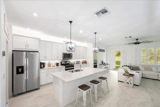 PRICE IMPROVEMENT! Perfect location! Walking distance to the Heart at Tradition and many restaurants and shops. Step into this modern villa, where you will find a spacious and flexible layout This 2-bedroom, 2.5-bathroom residence features a versatile flex room that can serve as a home office, den, or guest space. The entire home is adorned with beautiful tile flooring, offering both a clean and contemporary feel. Rest easy with the complete peace of mind offered by impact-resistant glass on all windows and doors and a home security system. The primary bedroom boasts a generous walk-in closet for ample storage and a large master bathroom. Outside you can enjoy private peaceful evenings on your covered porch that backs a beautiful grass berm and hedge for additional privacy.