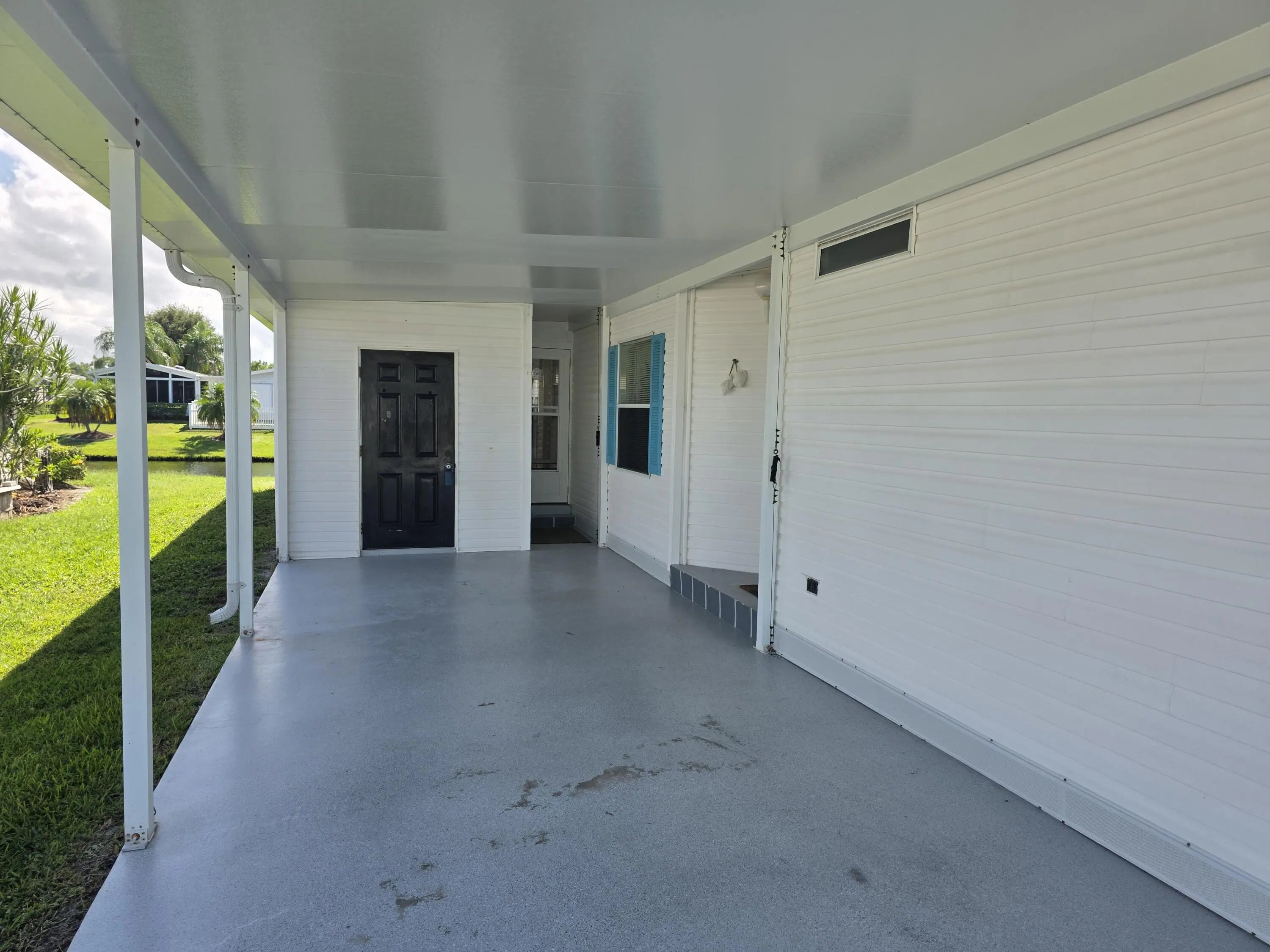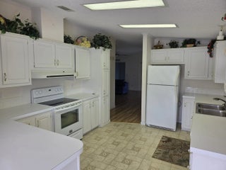 Land Owned! The perfect retirement home. Make an offer, all reasonable offers will be considered. Three bedrooms, two baths located right on a lake. Peaceful views. Large lanai with windows, screens with attached outdoor concrete patio. Great for a Bar-B-Q's or just lounging. Good size kitchen with plenty of counter space and lots of cabinets. Cute breakfast nook with a view of the lake. Entertainment size living room with attached dining area, both with laminate floors. King size master suite, bath has a large dual sink vanity, tub/shower combo. Two guest bedrooms another full bath. One bedroom could be used as a den or office. Large storage shed at end of carport and two car driveway. Located in Fabulous Savanna Club. Resort style 55+ community. Home is being offered AS- IS.