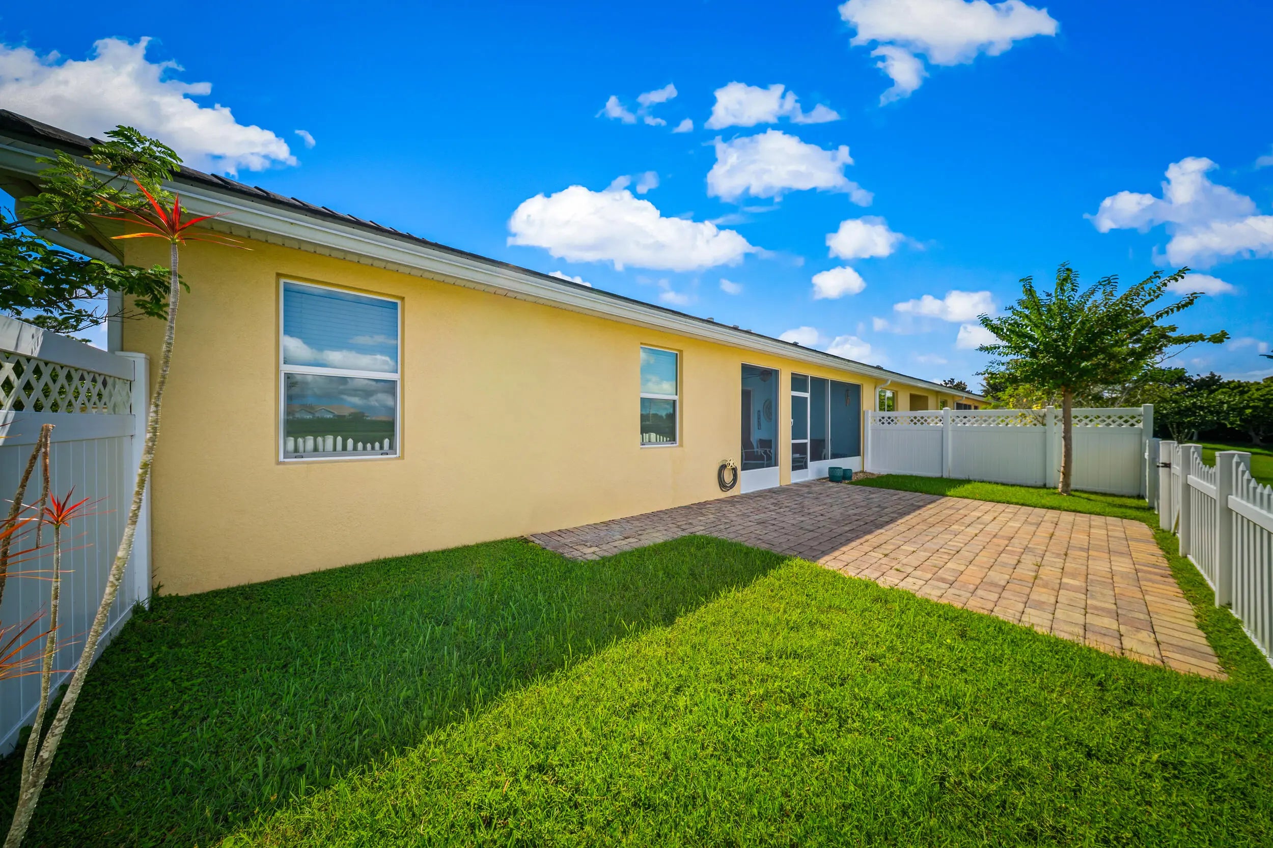 Enjoy low-maintenance living and more affordable homeowners insurance in this 2018 CBS-built 3-bedroom, 2-bath home. This 1,920 sq ft property features an open-concept layout with tile flooring, a modern kitchen with quartz countertops and stainless steel appliances, gas range, and a screened patio overlooking a peaceful pond. The primary suite offers dual walk-in closets, double vanities, and a tiled shower. Additional features include a concrete tile roof, fenced yard, two-car garage, and energy-efficient systems in a gated community minutes from I-95 and St. Lucie West.